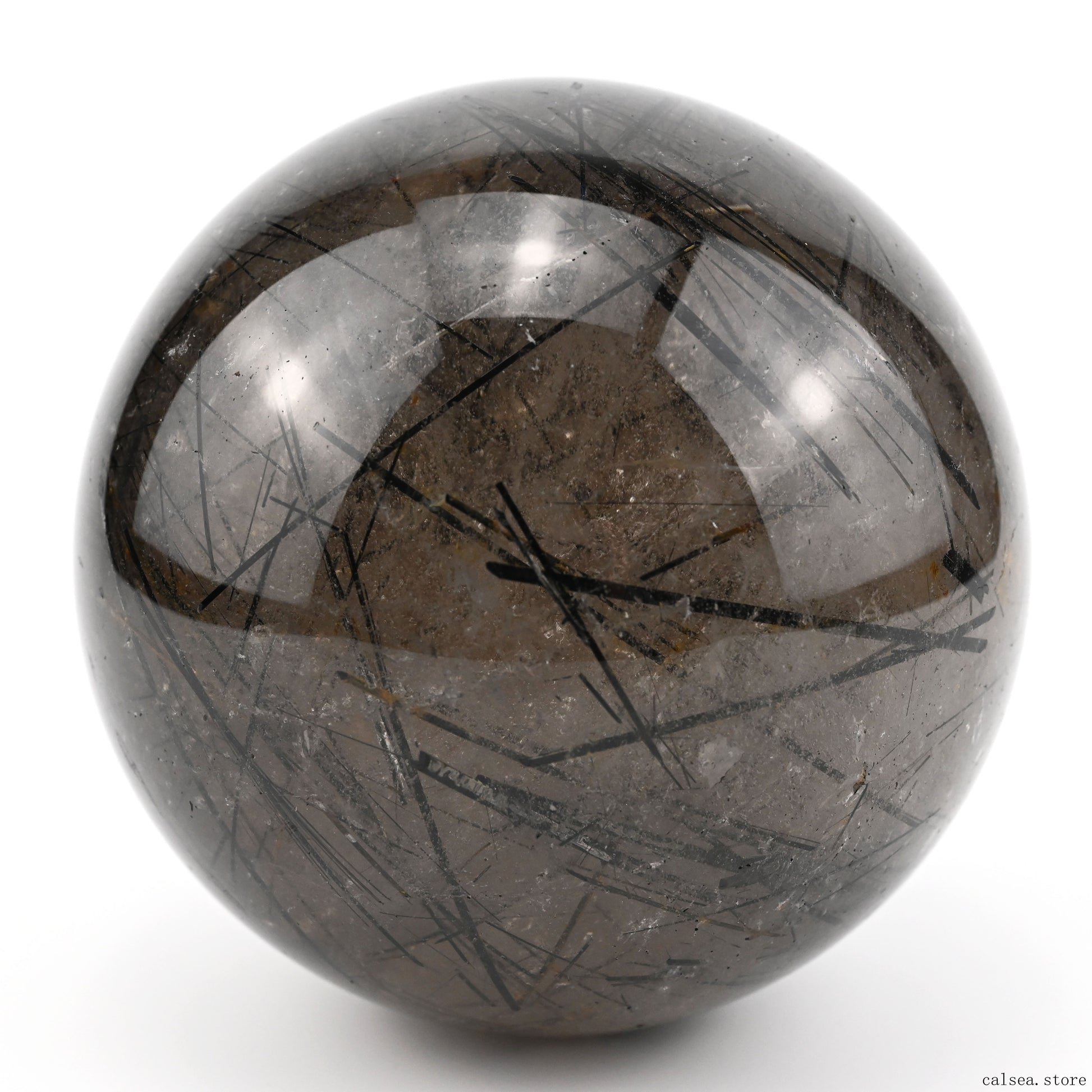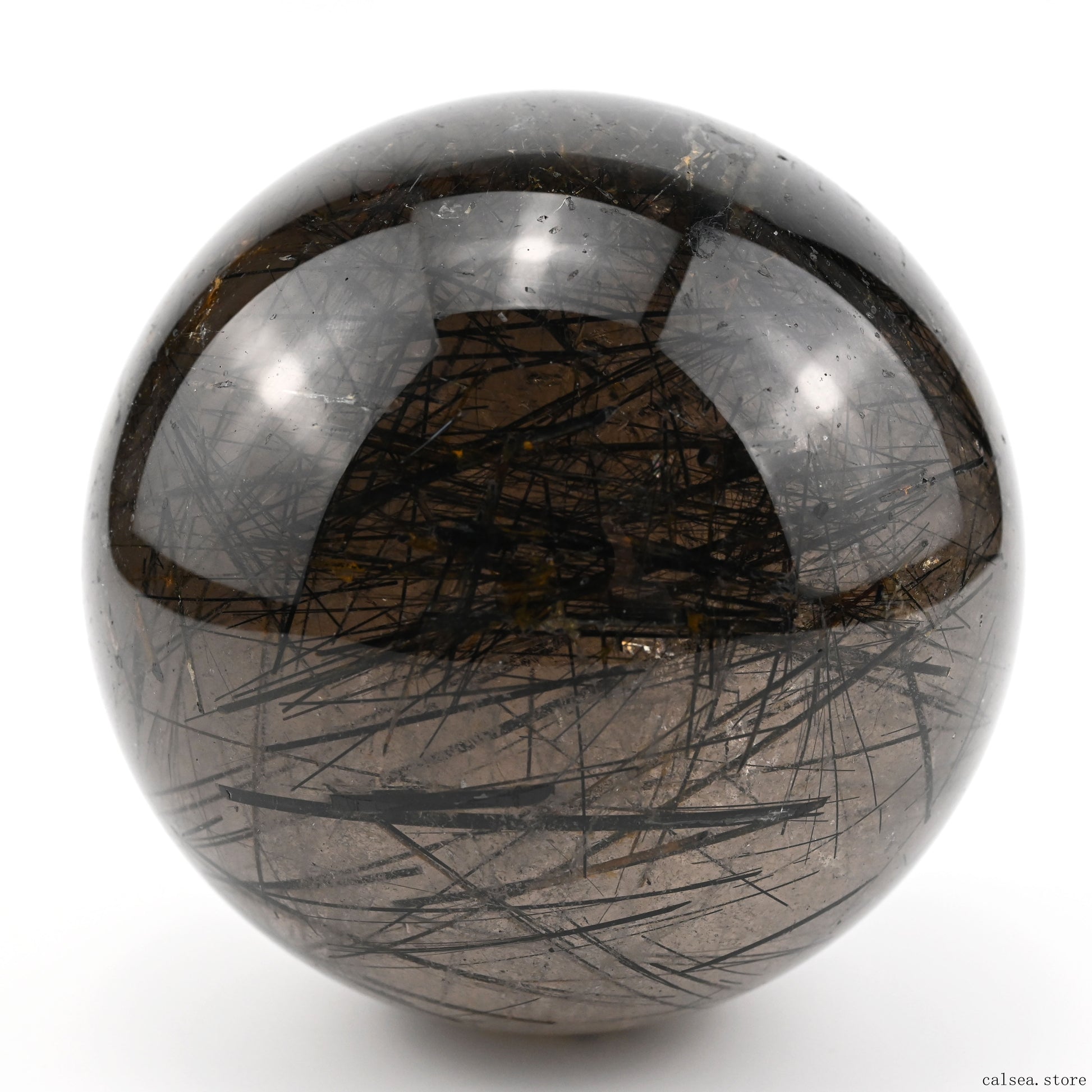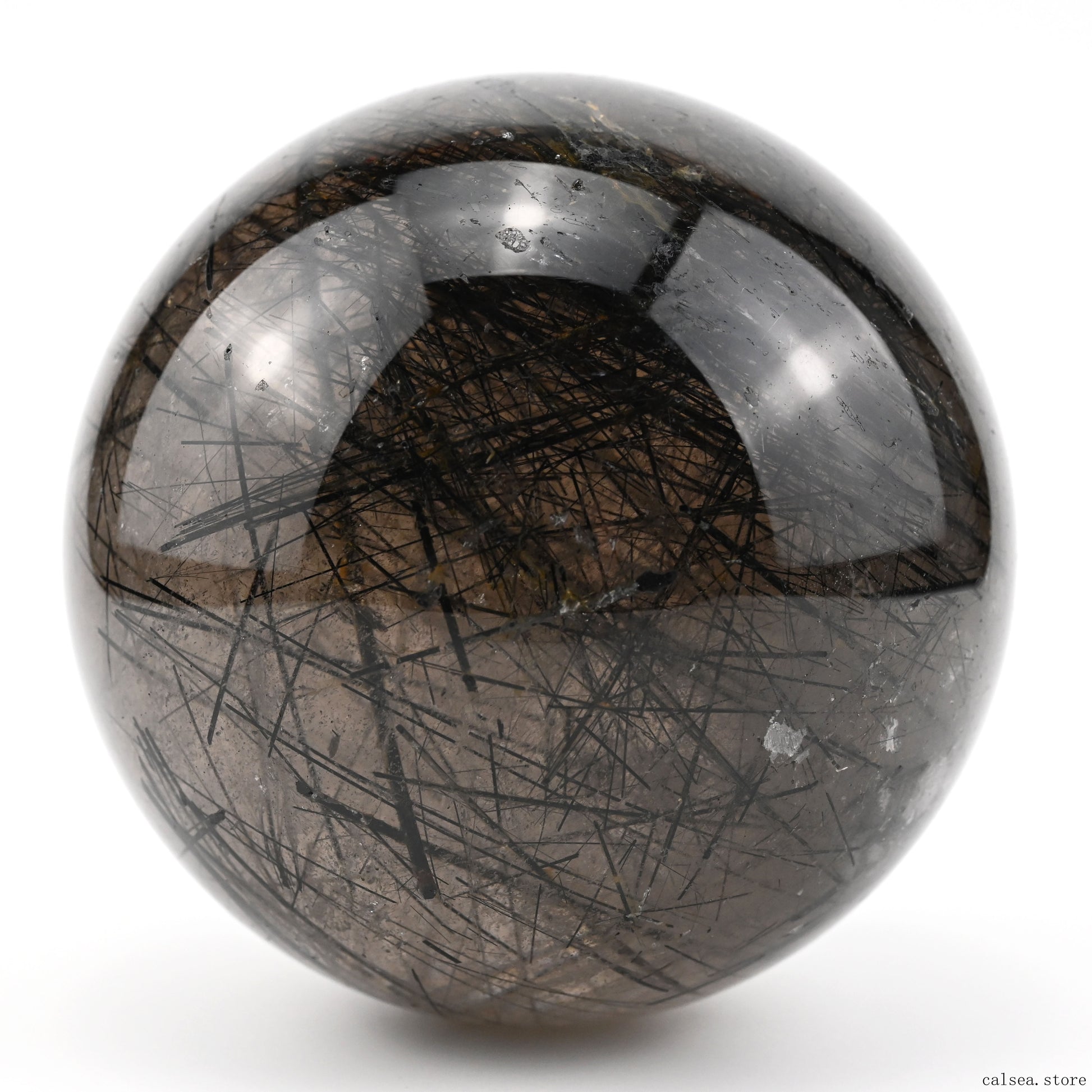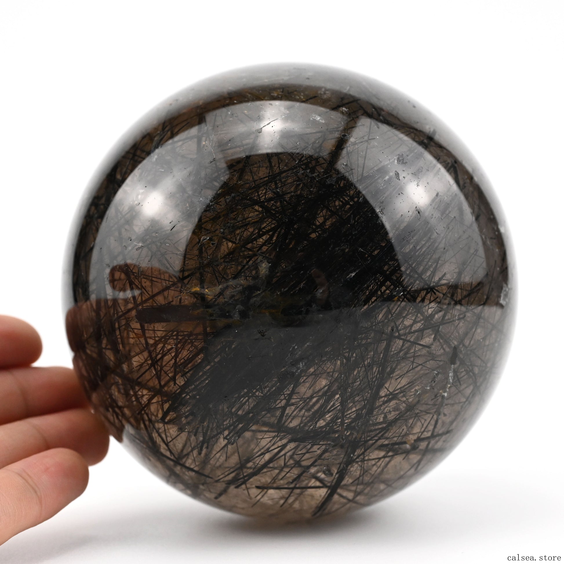4.33'' Black Rutile,Tourmaline Quartz Sphere Crystal Healing Hand Carved Crystal Ball
