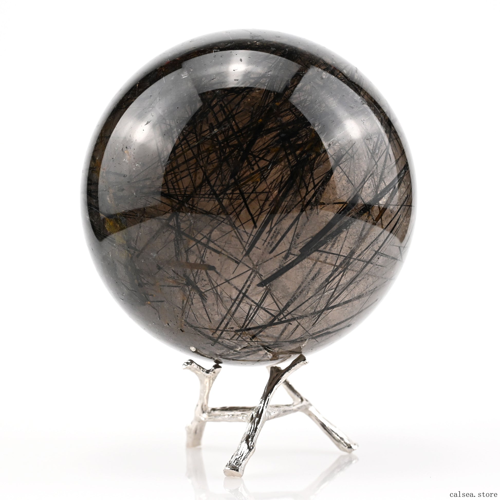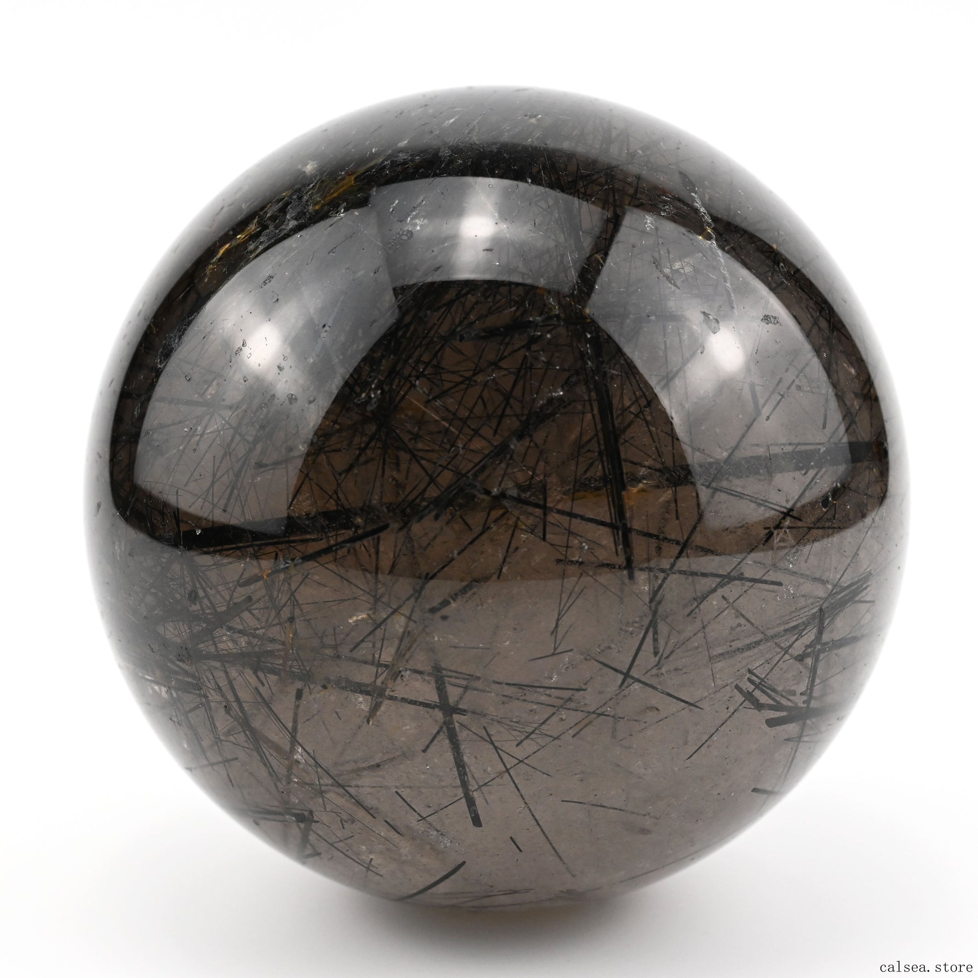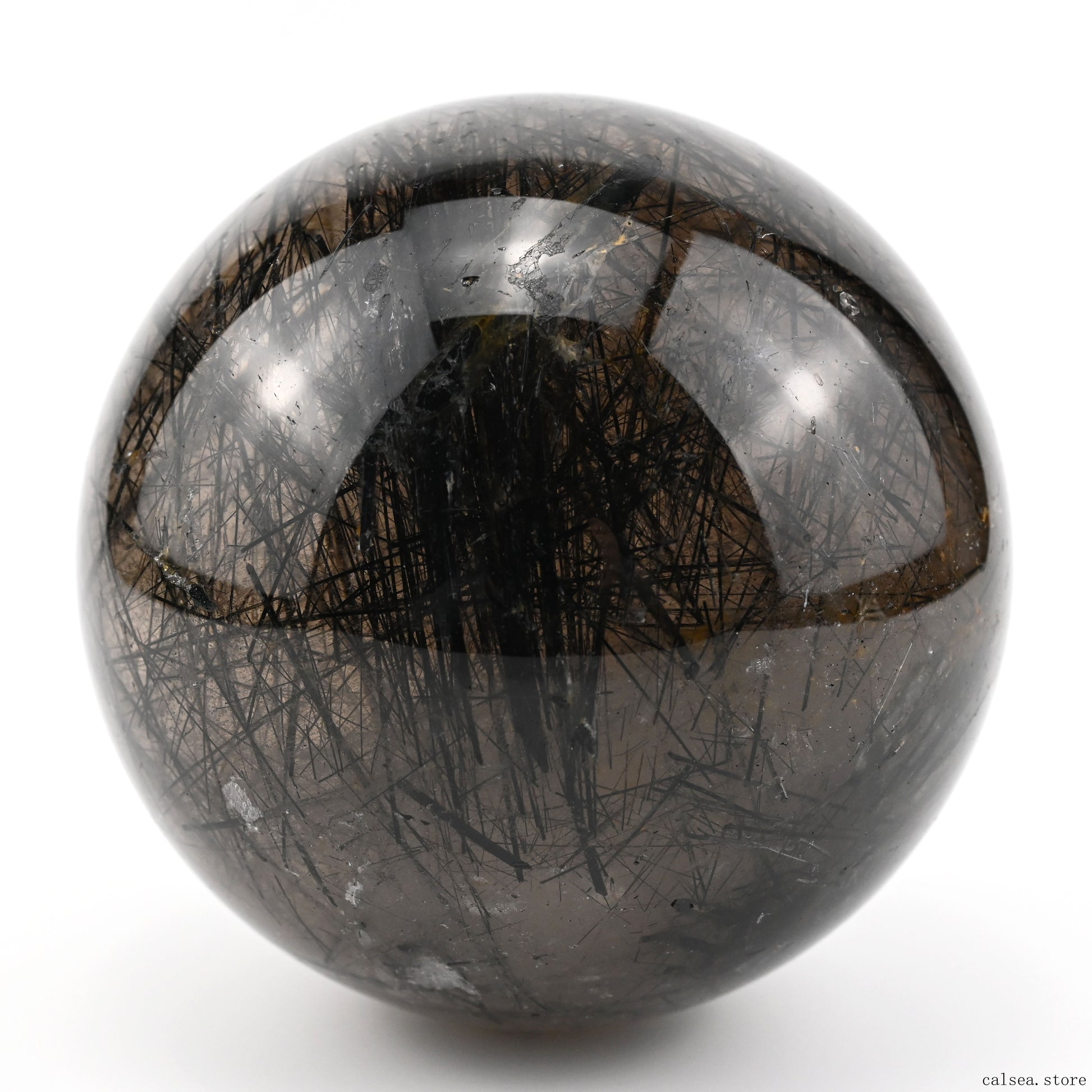 4.33'' Black Rutile,Tourmaline Quartz Sphere Crystal Healing Hand Carved Crystal Ball