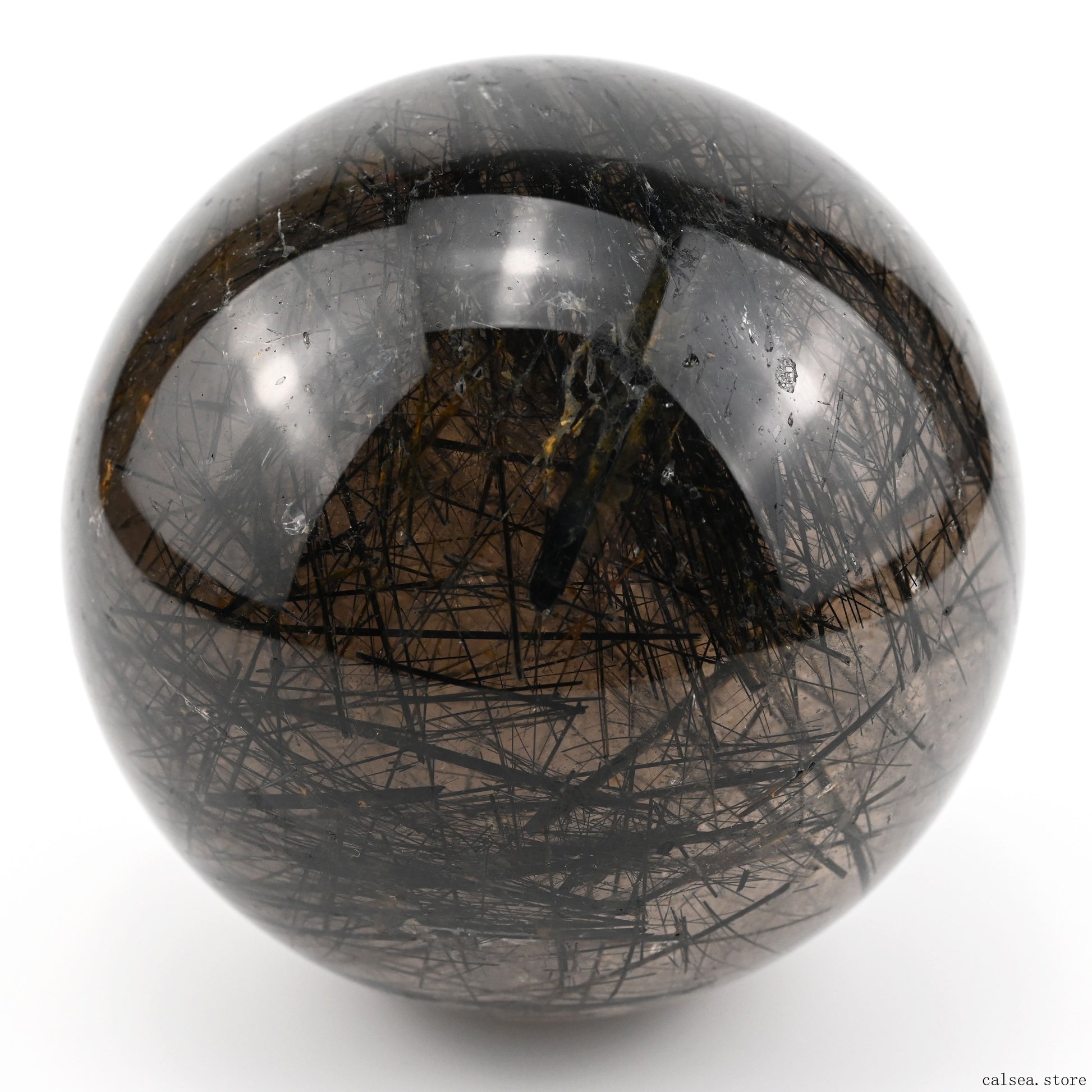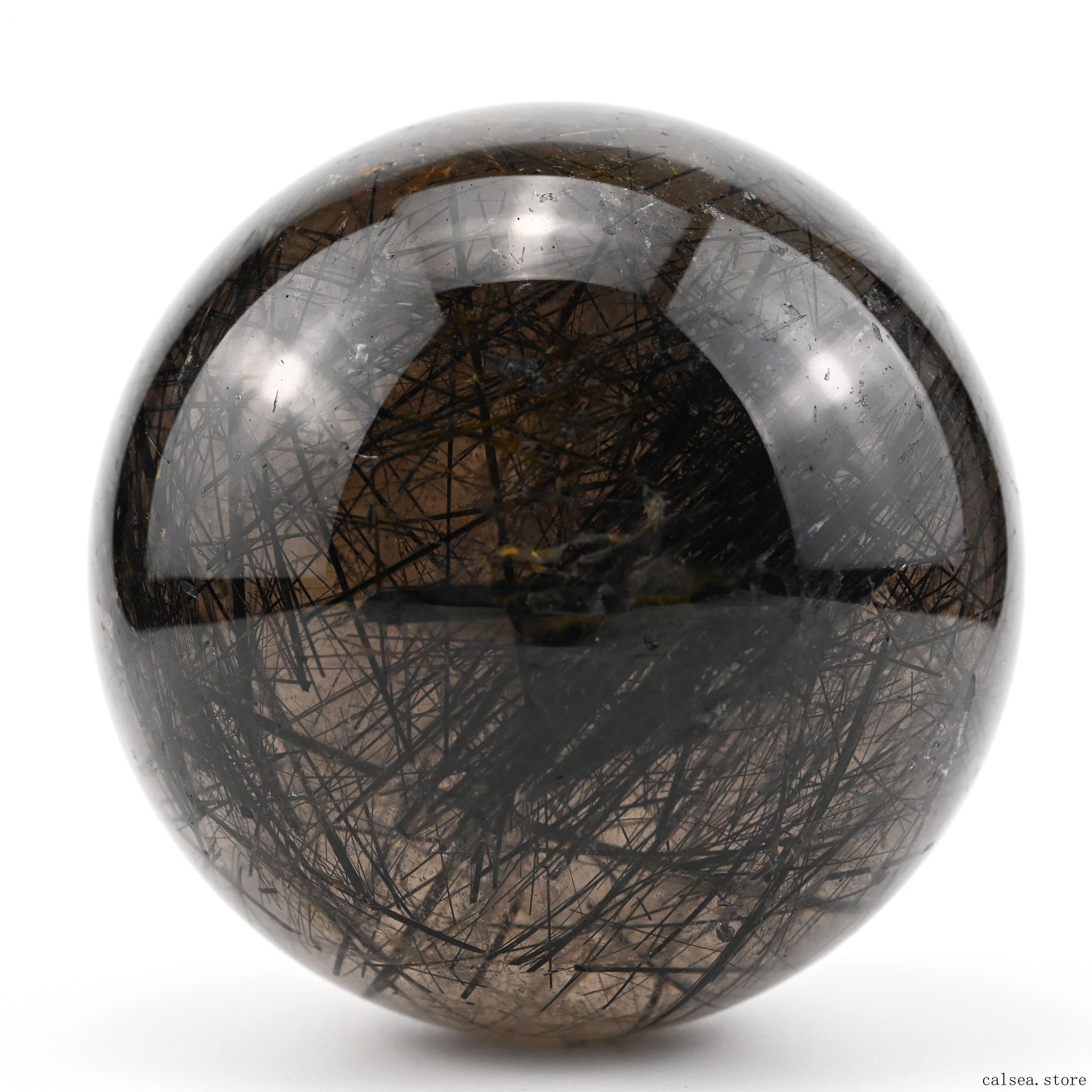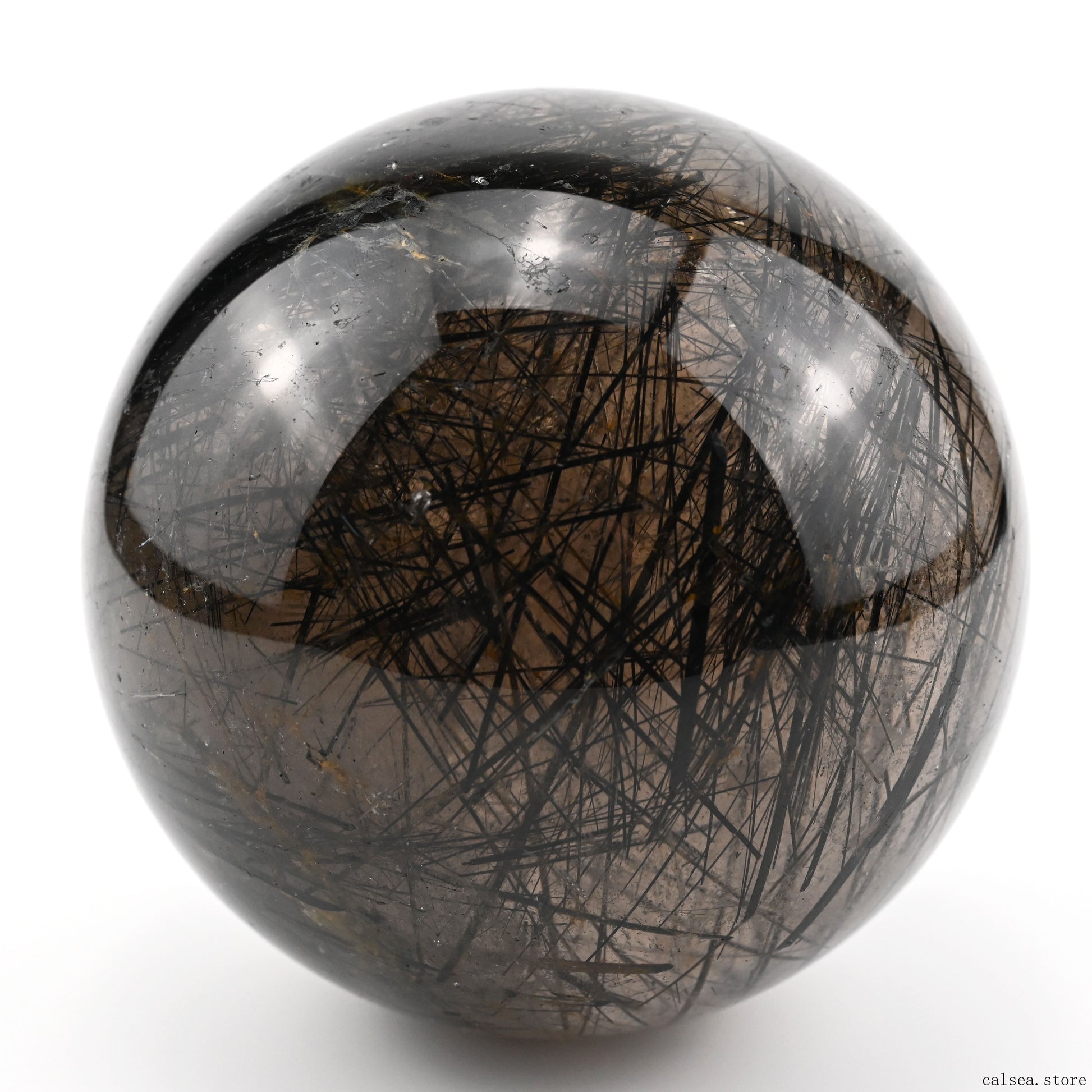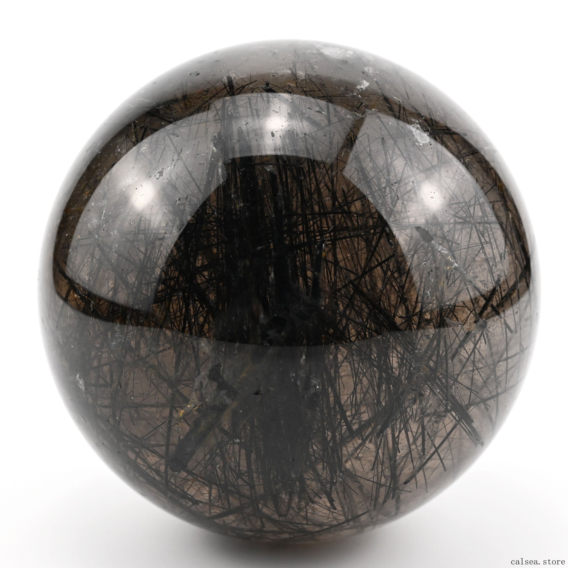 4.33'' Black Rutile,Tourmaline Quartz Sphere Crystal Healing Hand Carved Crystal Ball