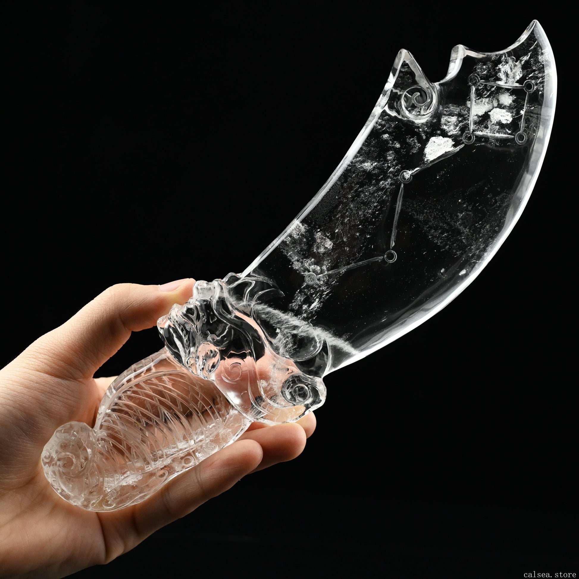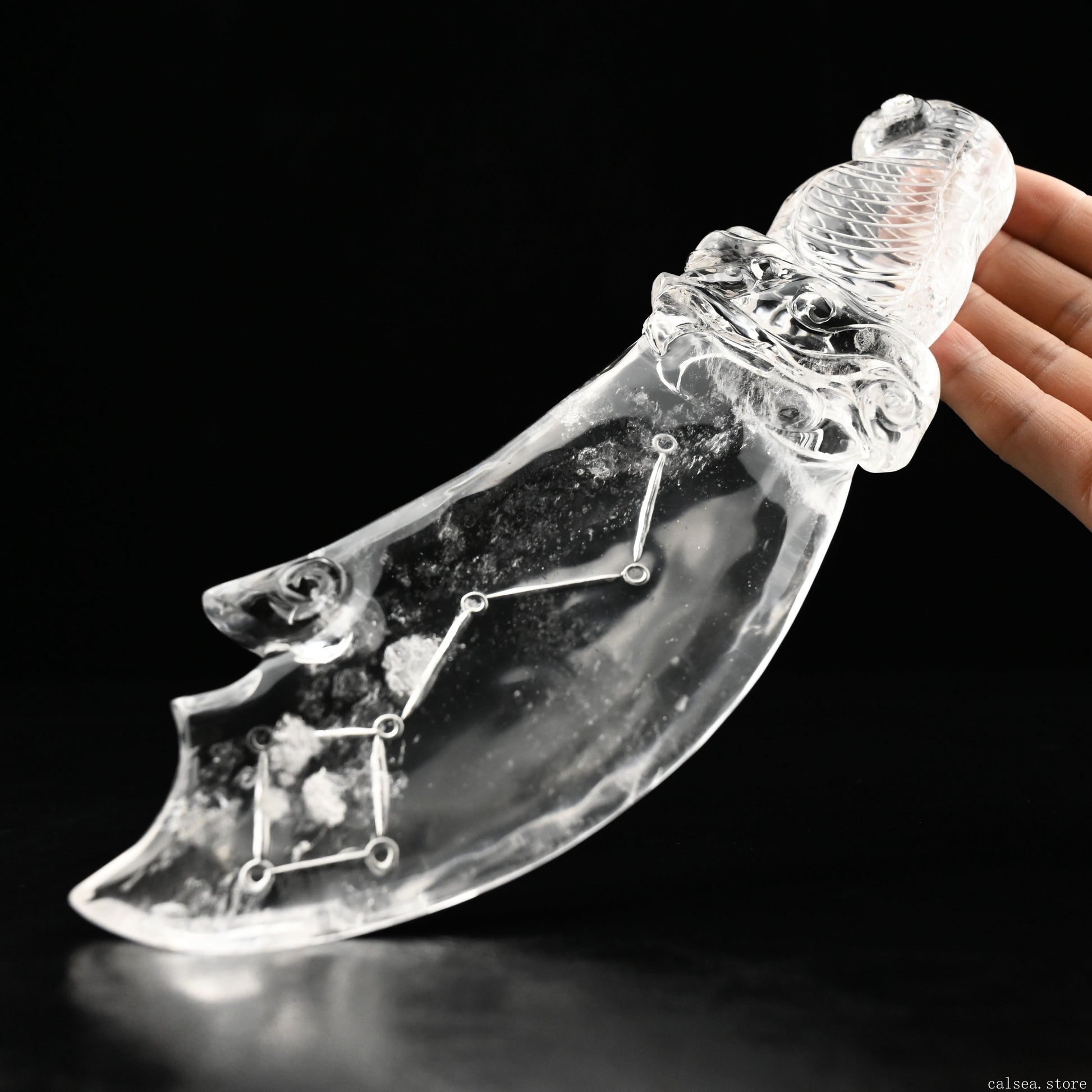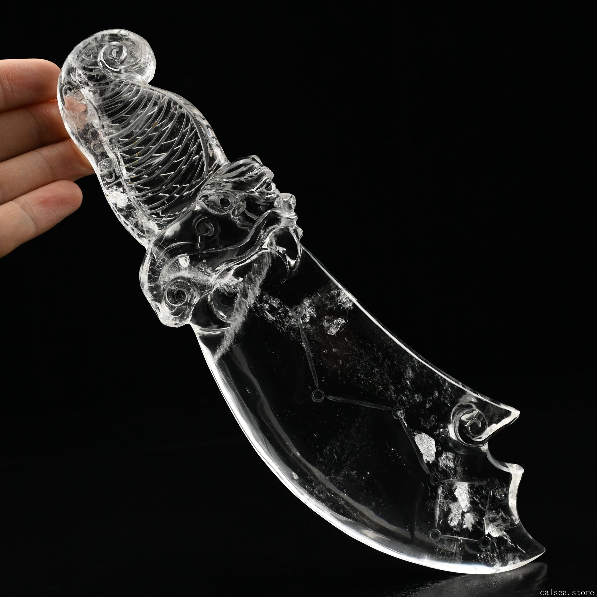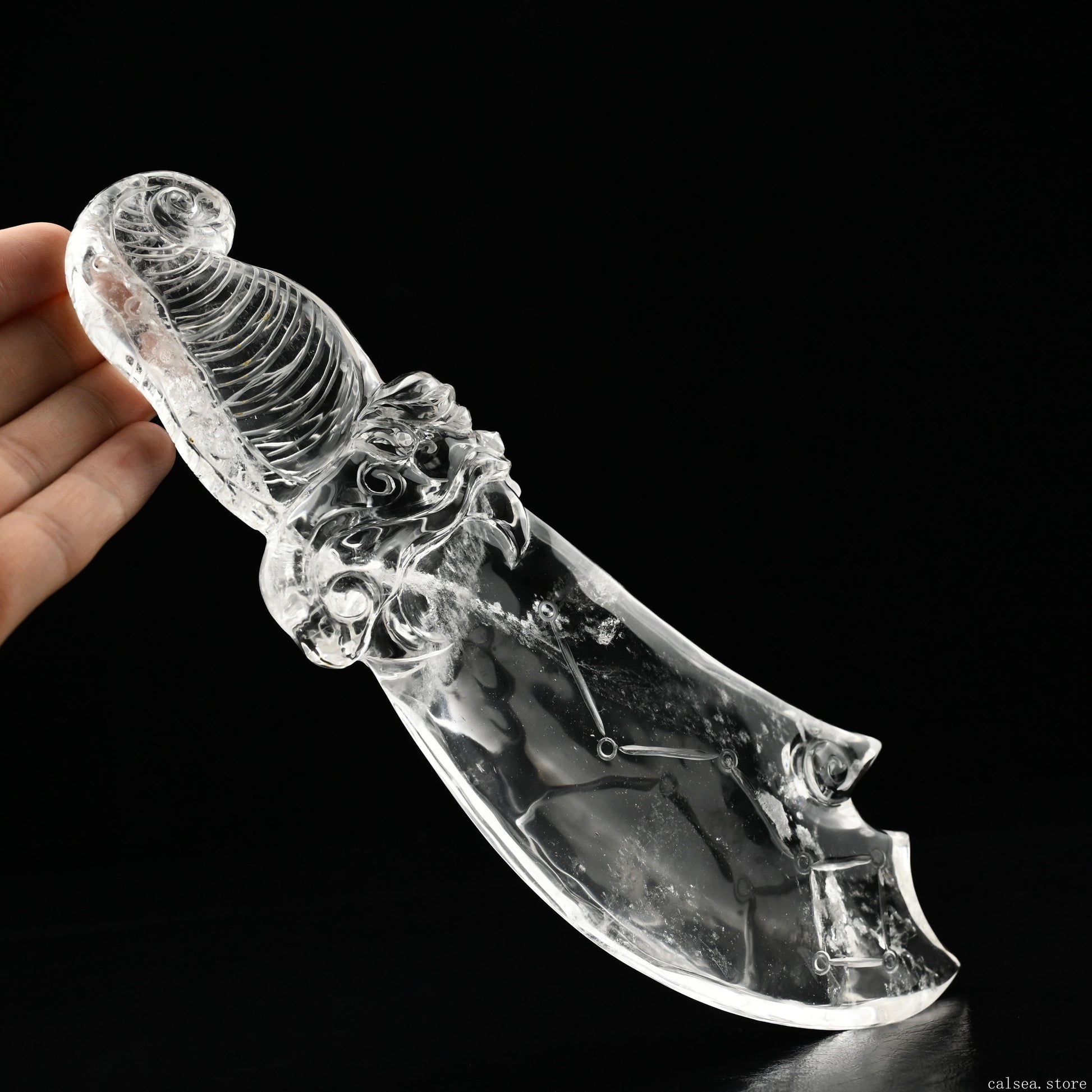 Awesome Clearquartz Dragon Knife Sculpture Crystal Healing Hand Carved