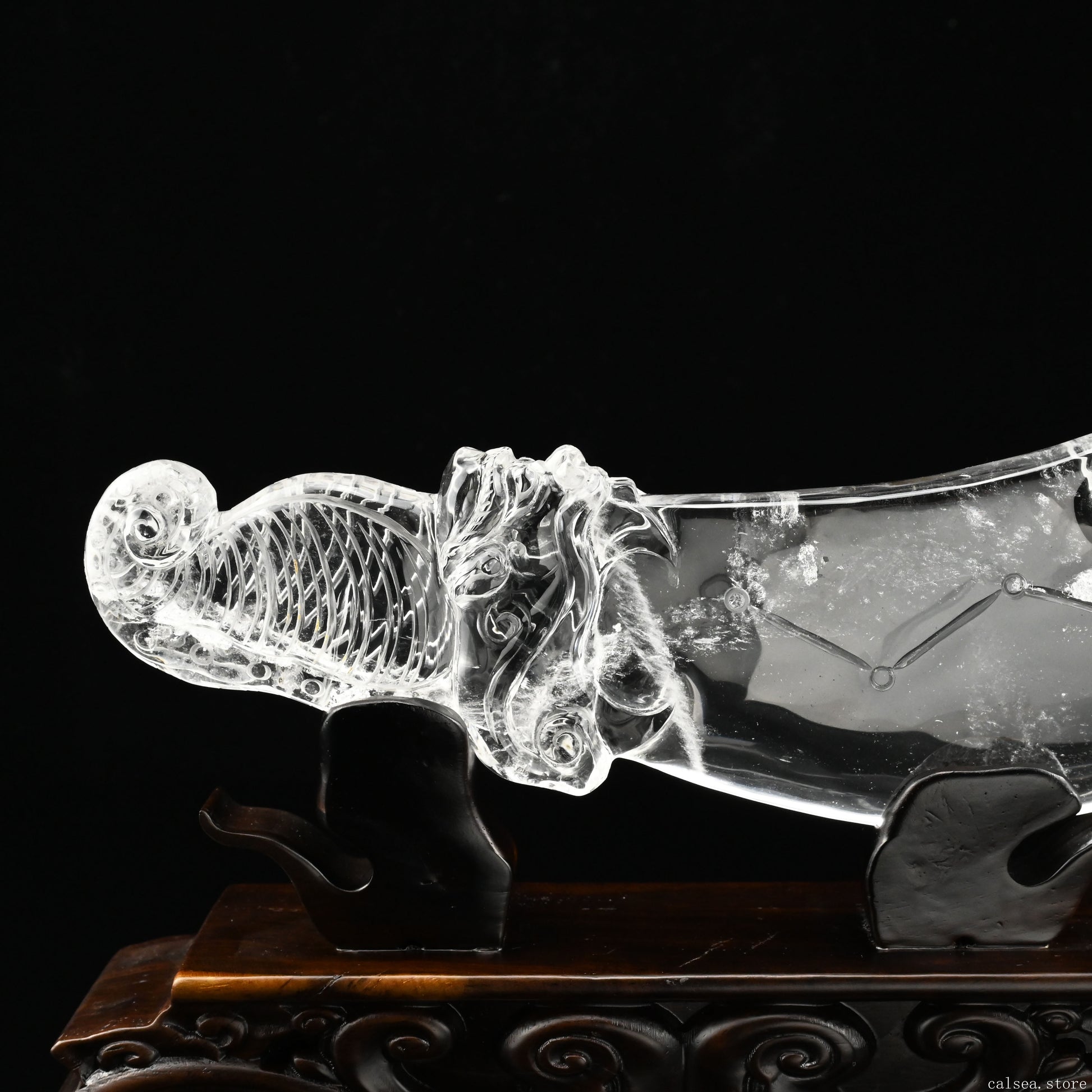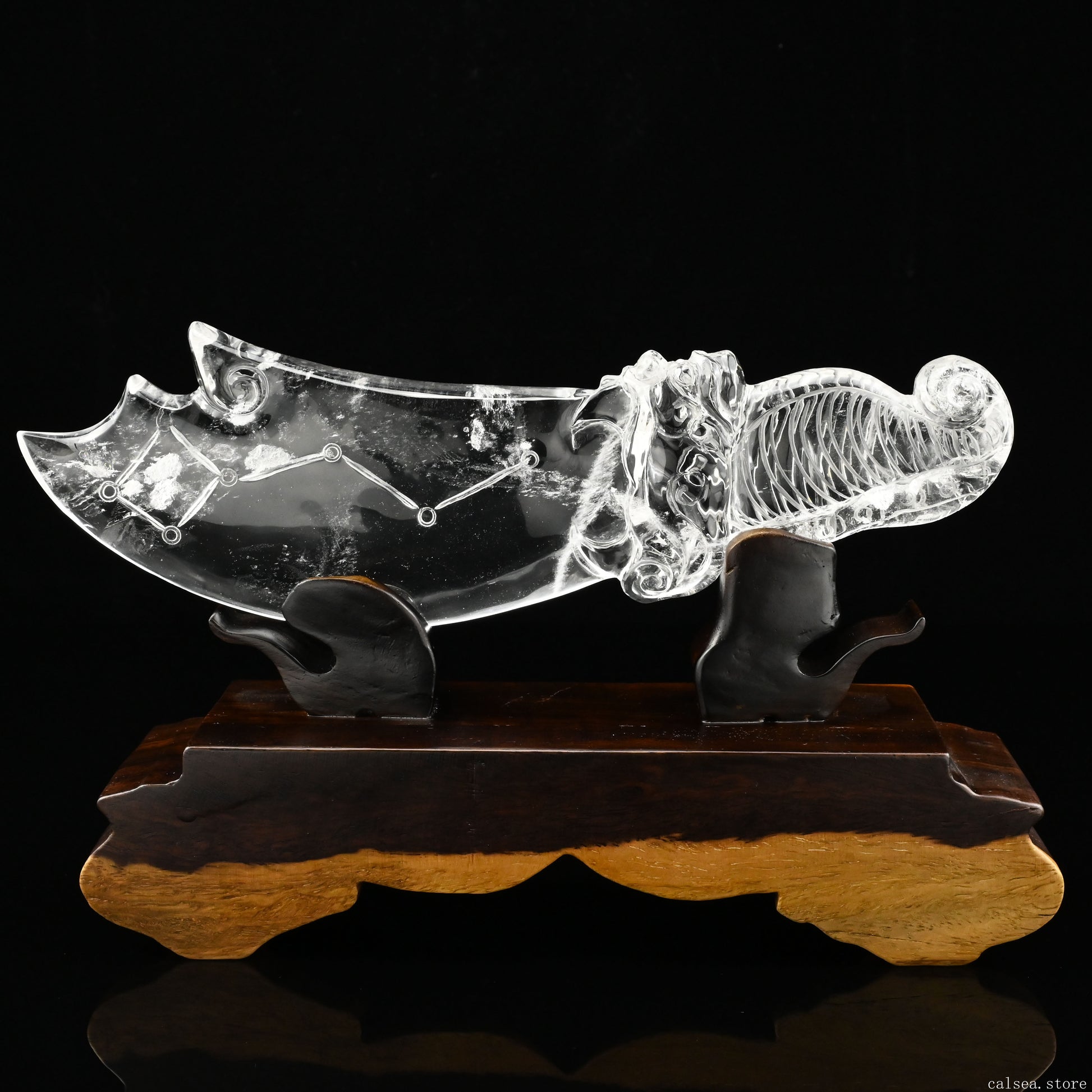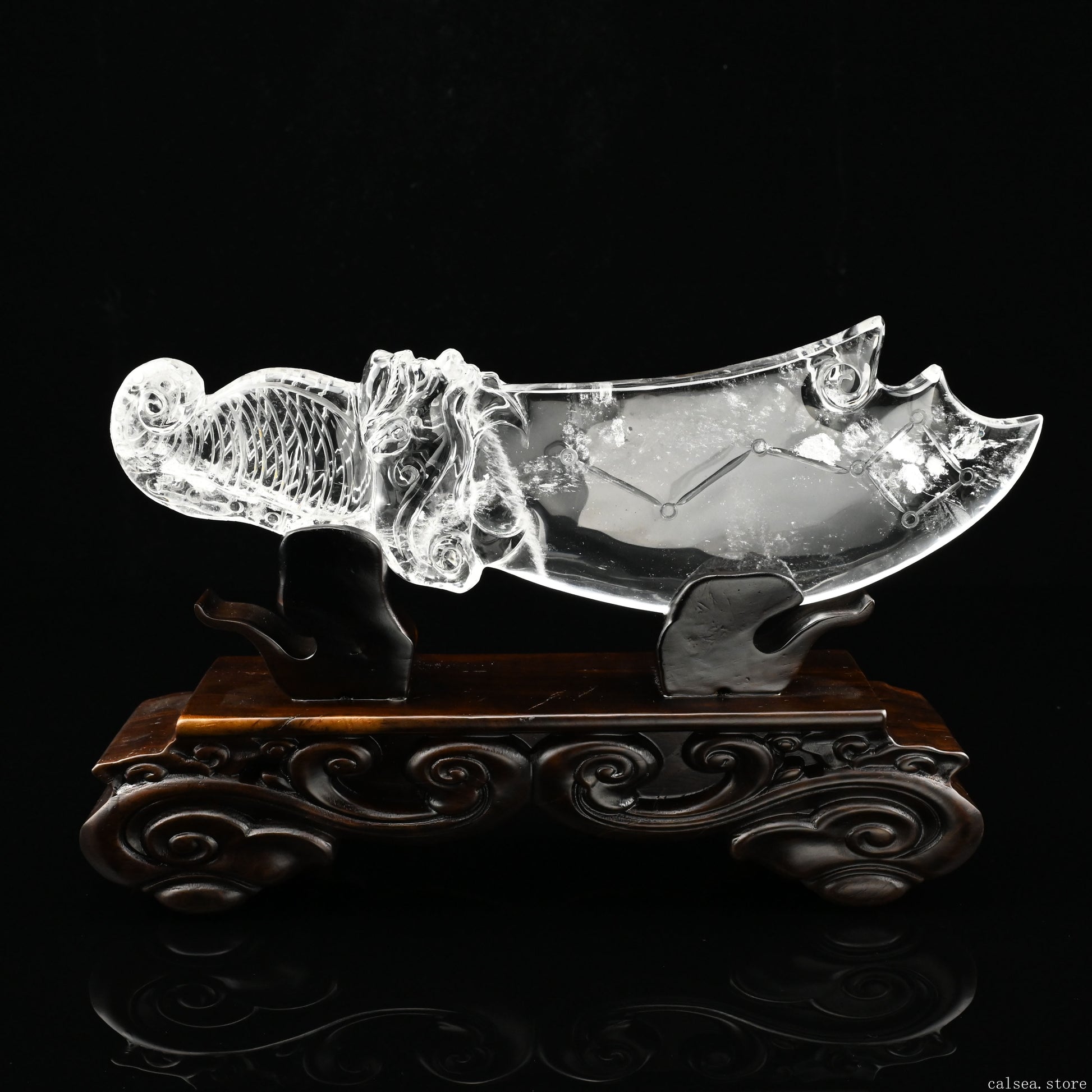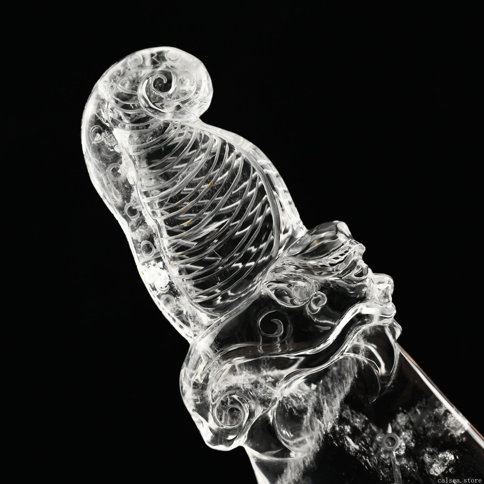 Awesome Clearquartz Dragon Knife Sculpture Crystal Healing Hand Carved