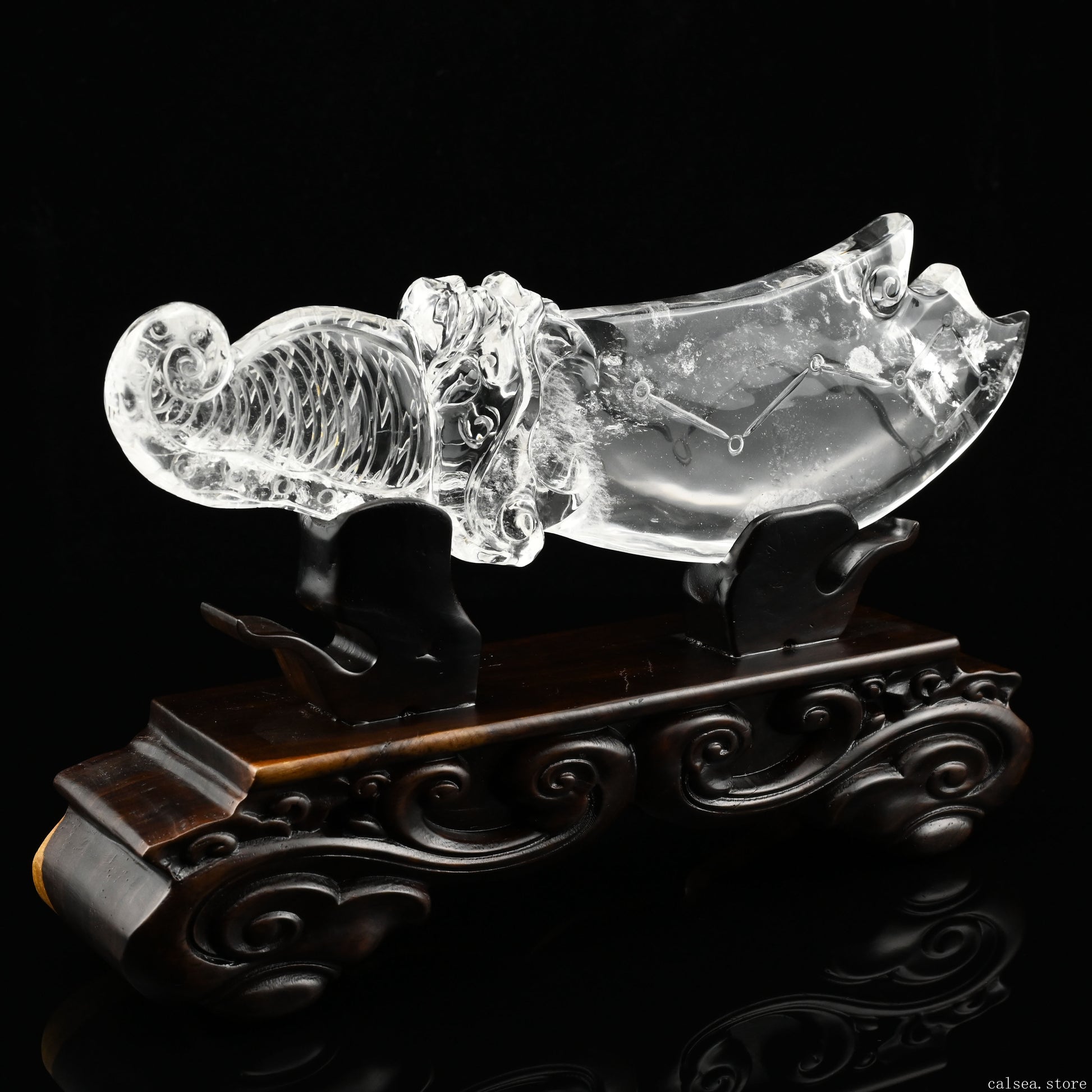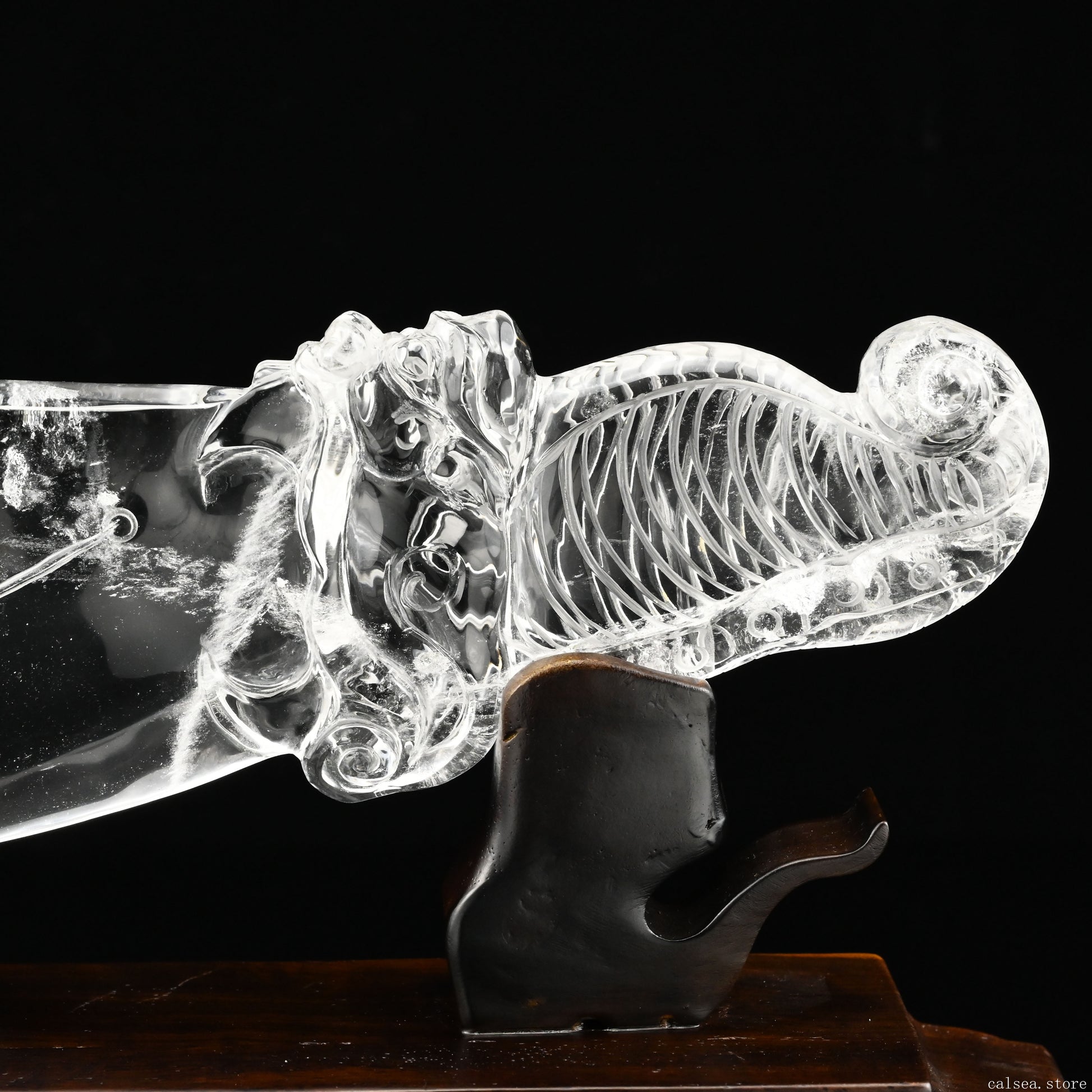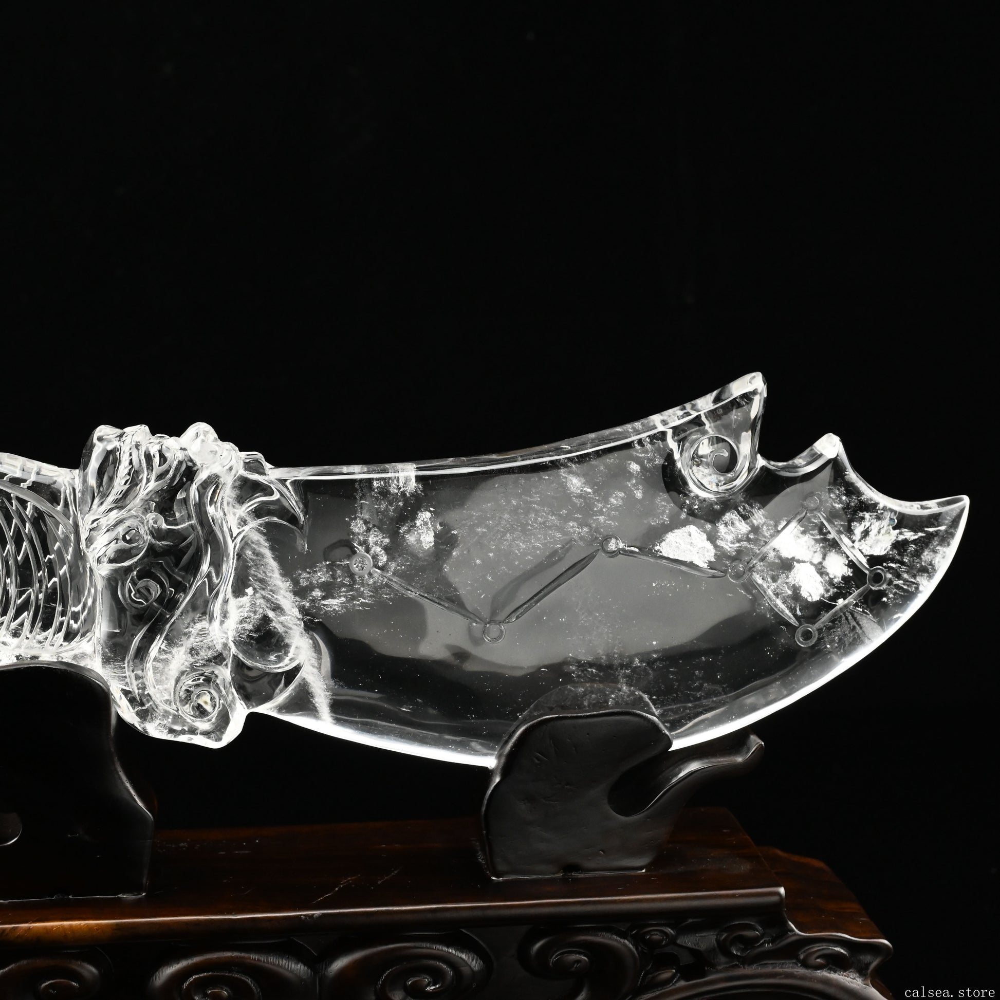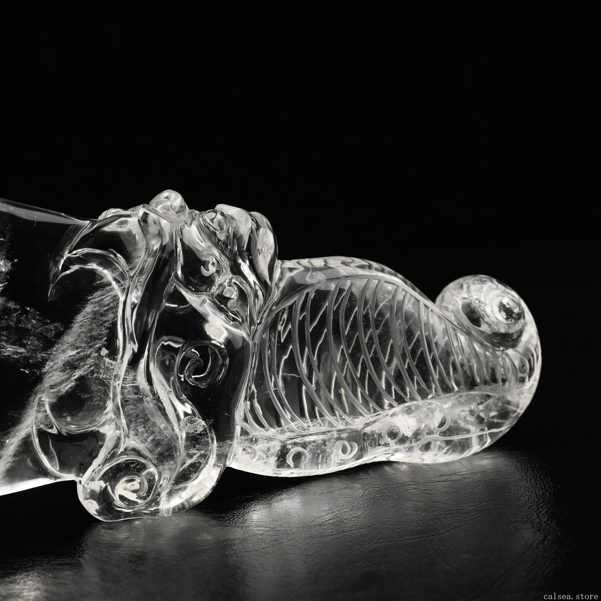 Awesome Clearquartz Dragon Knife Sculpture Crystal Healing Hand Carved