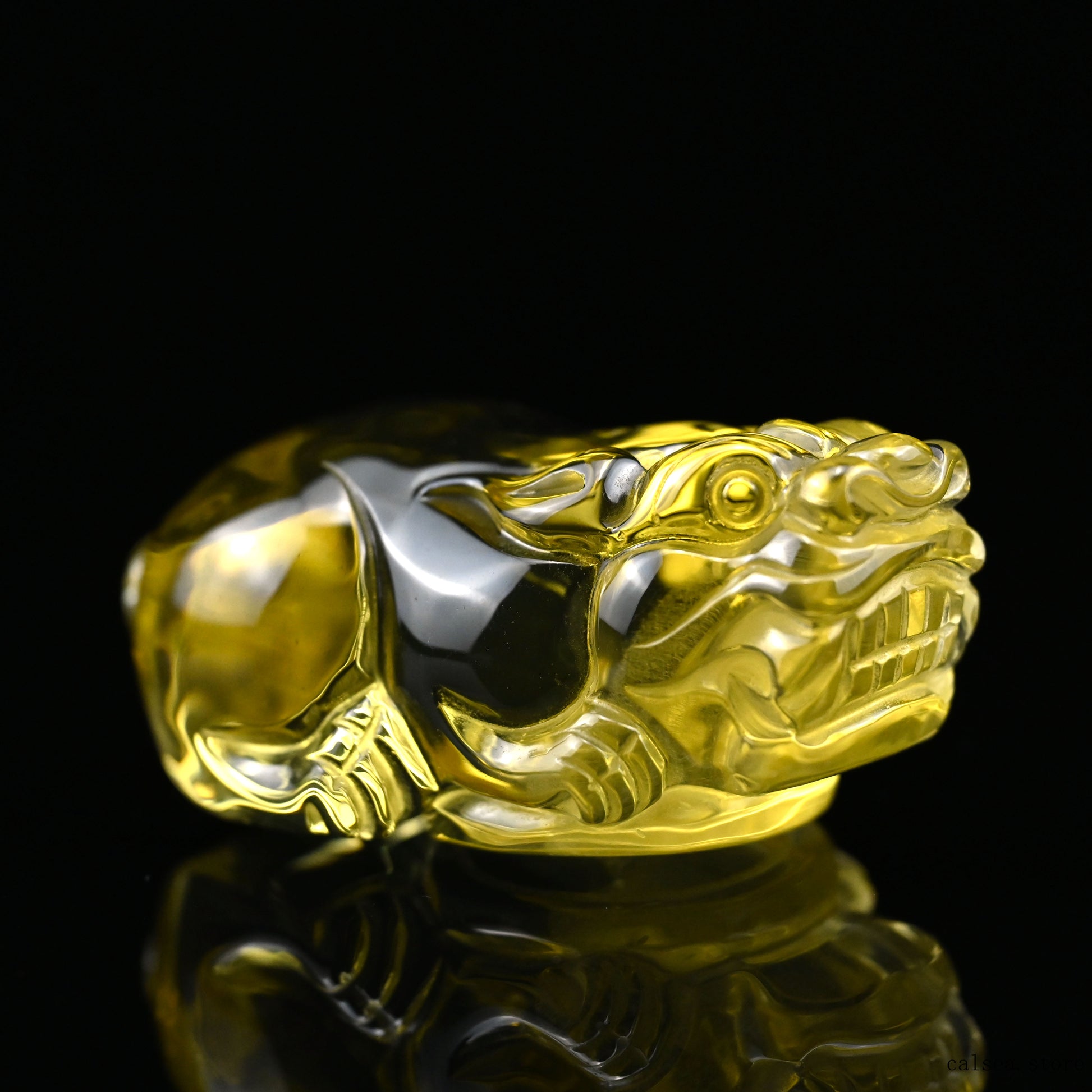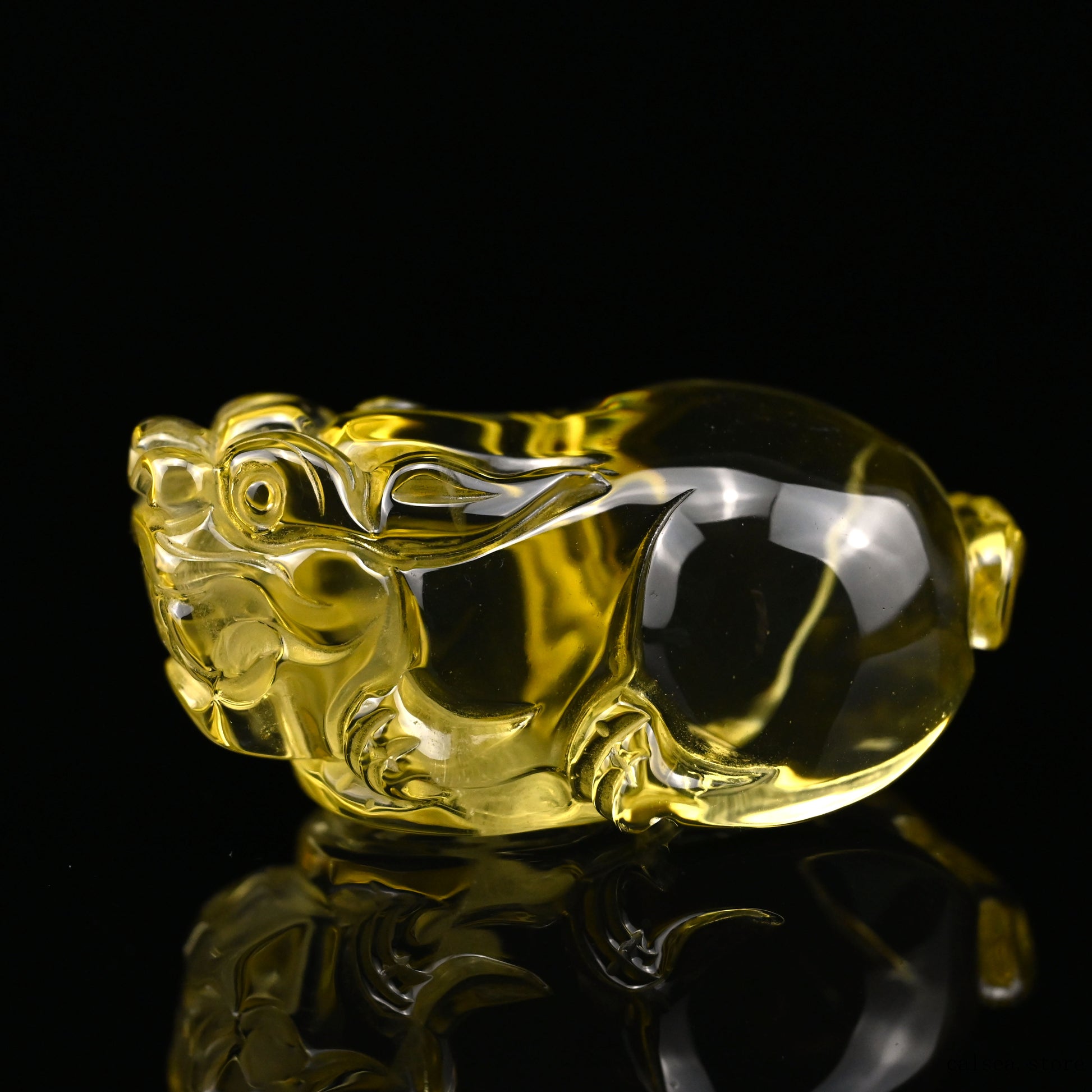 Brazil Citrine Pixiu Sculpture Crystal Healing Hand Carved