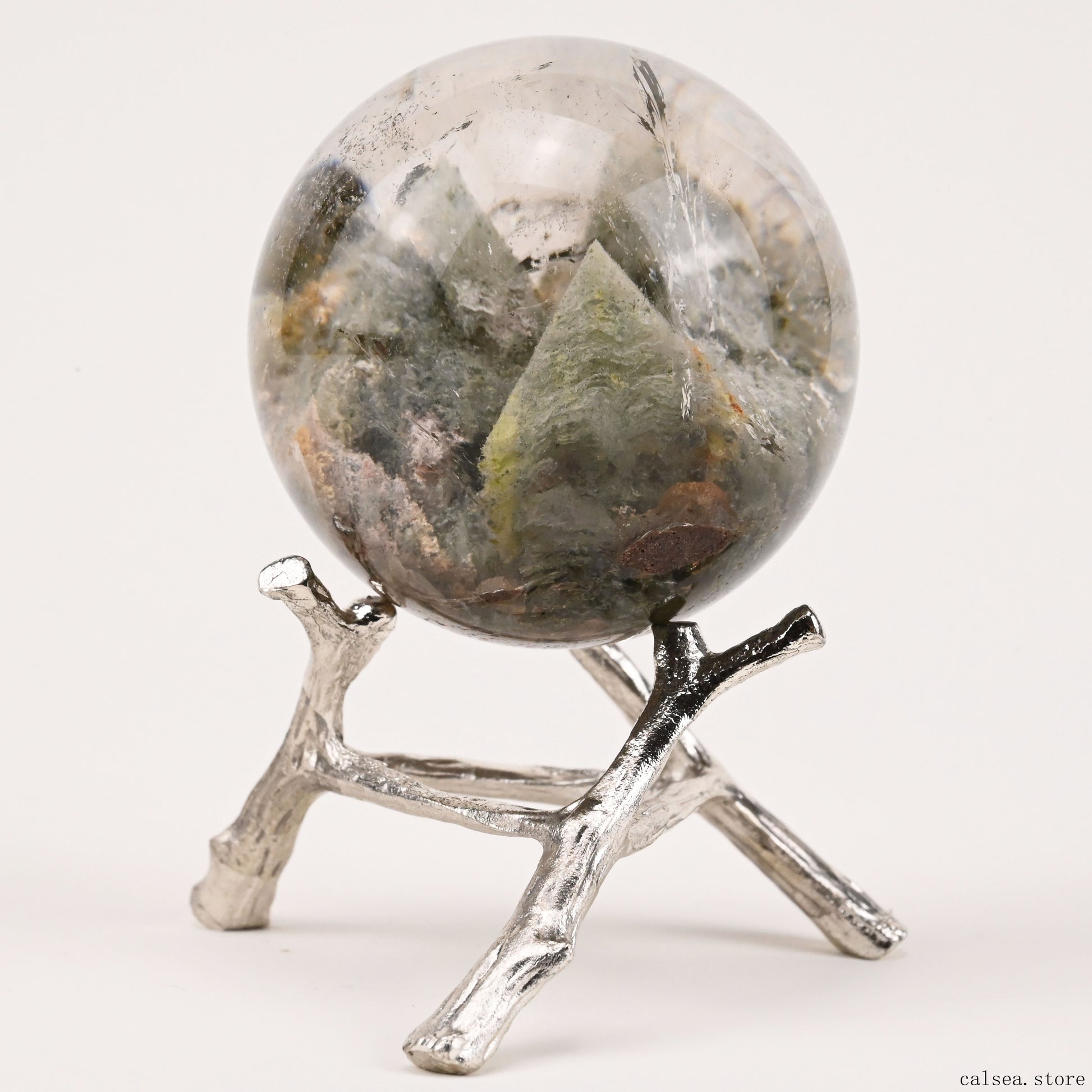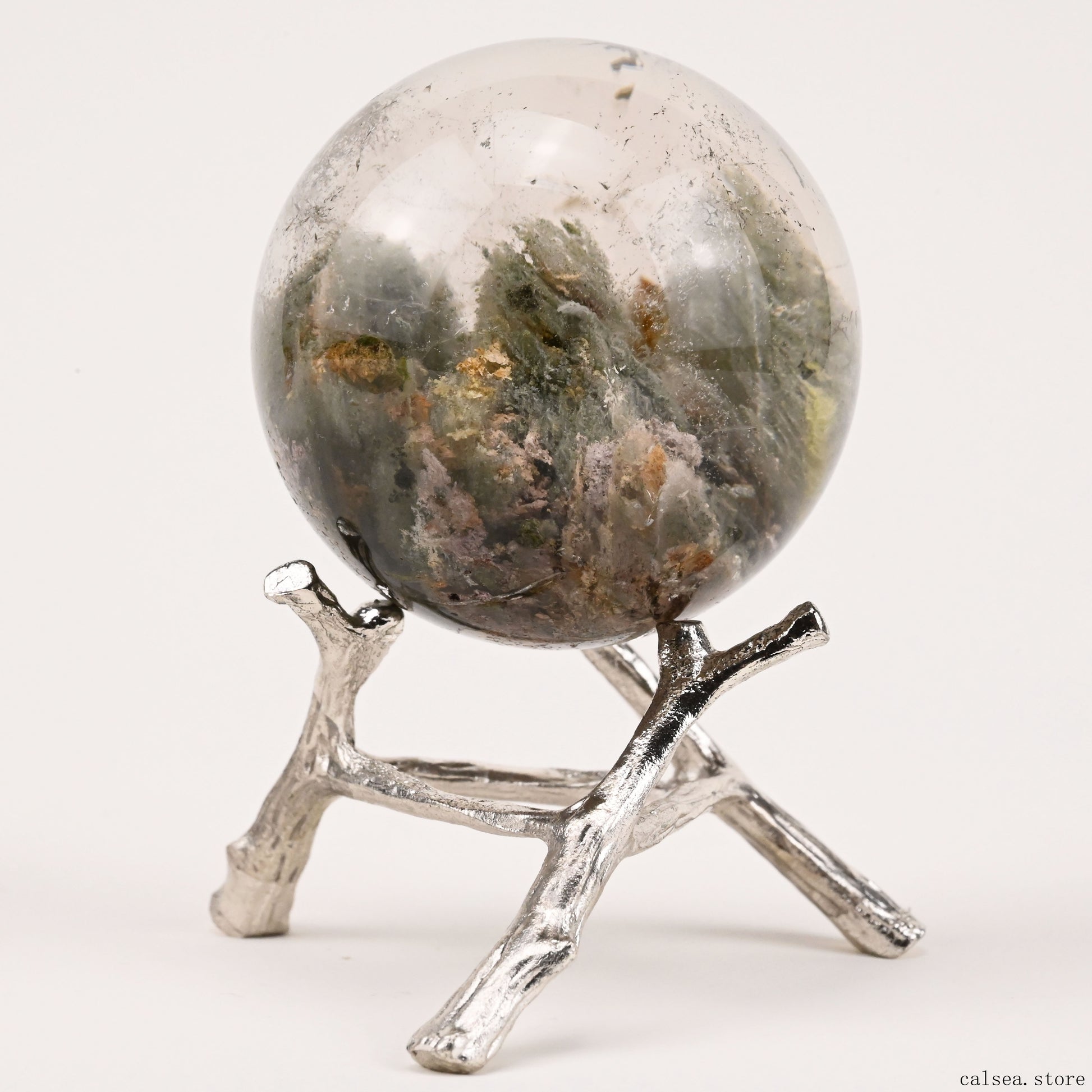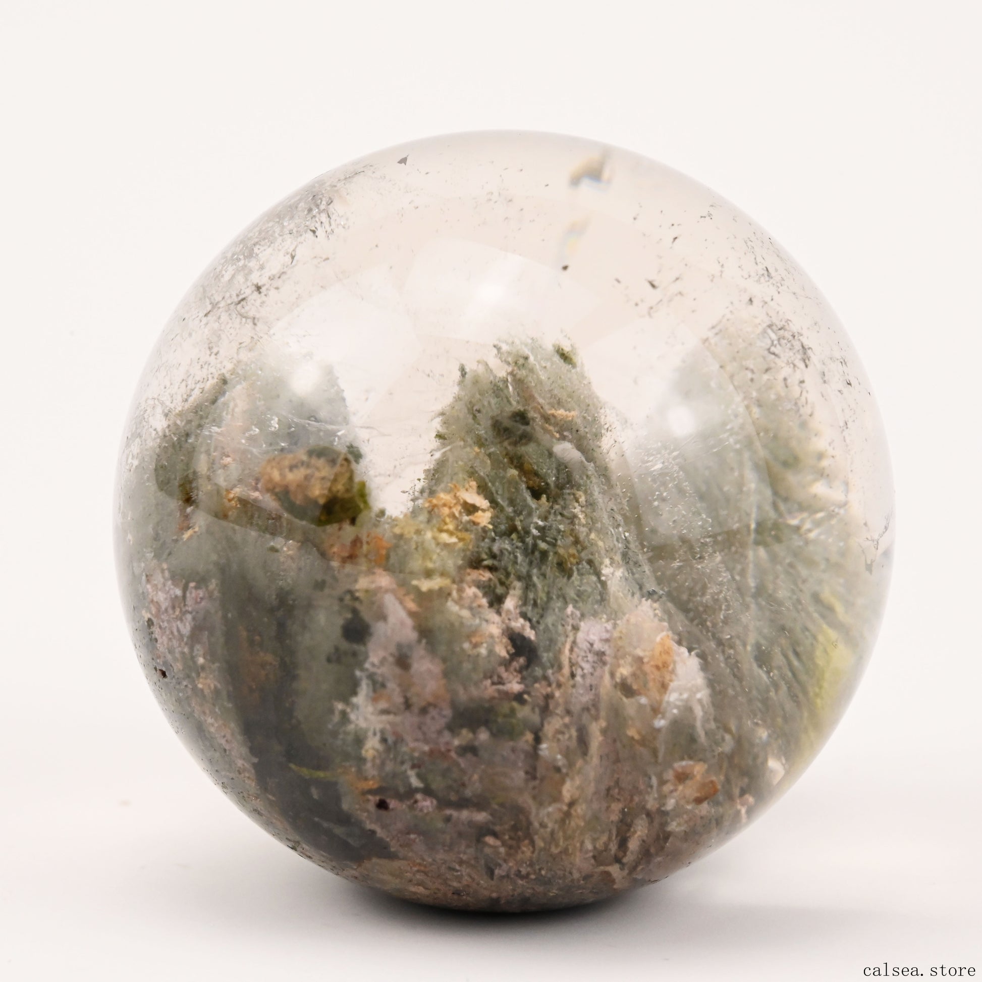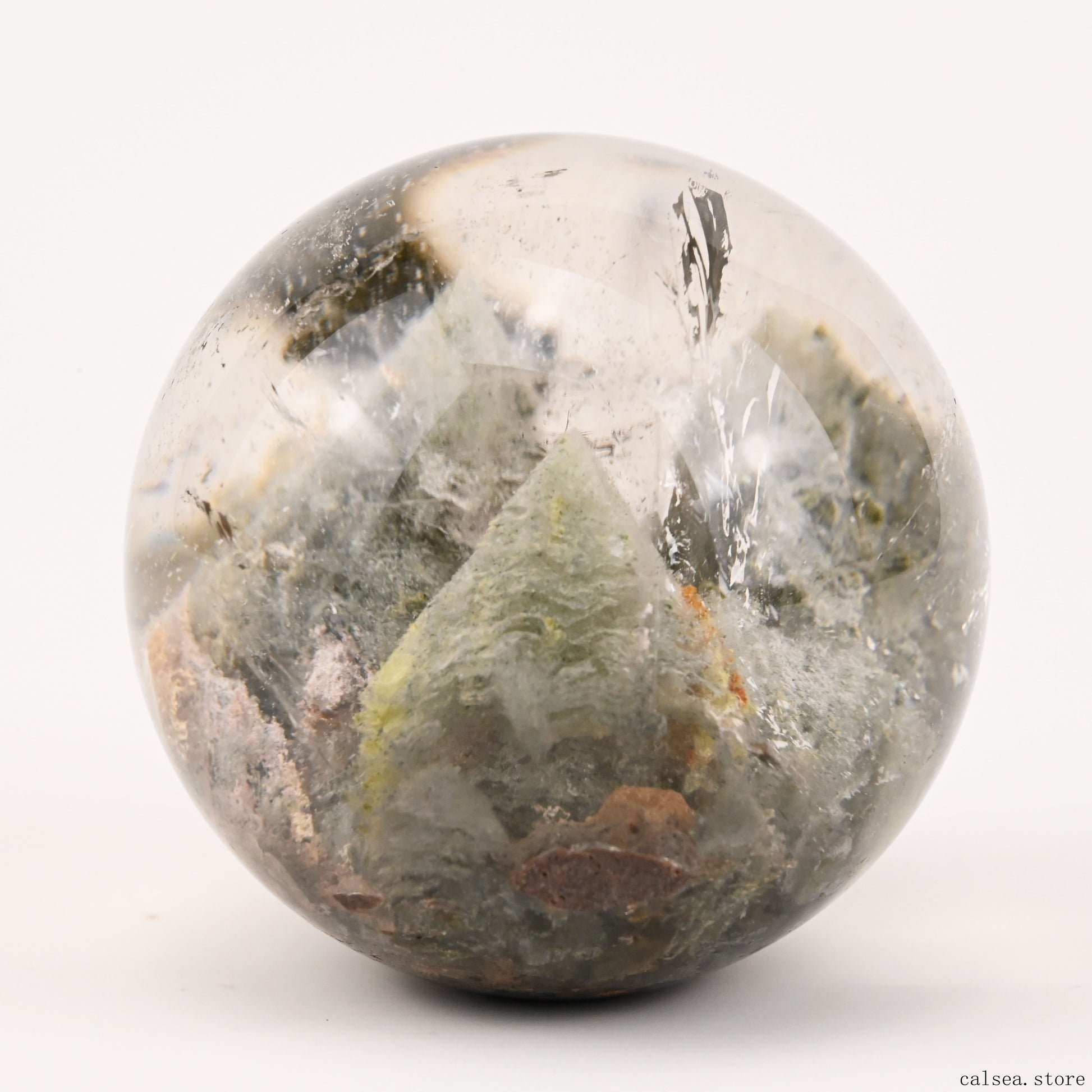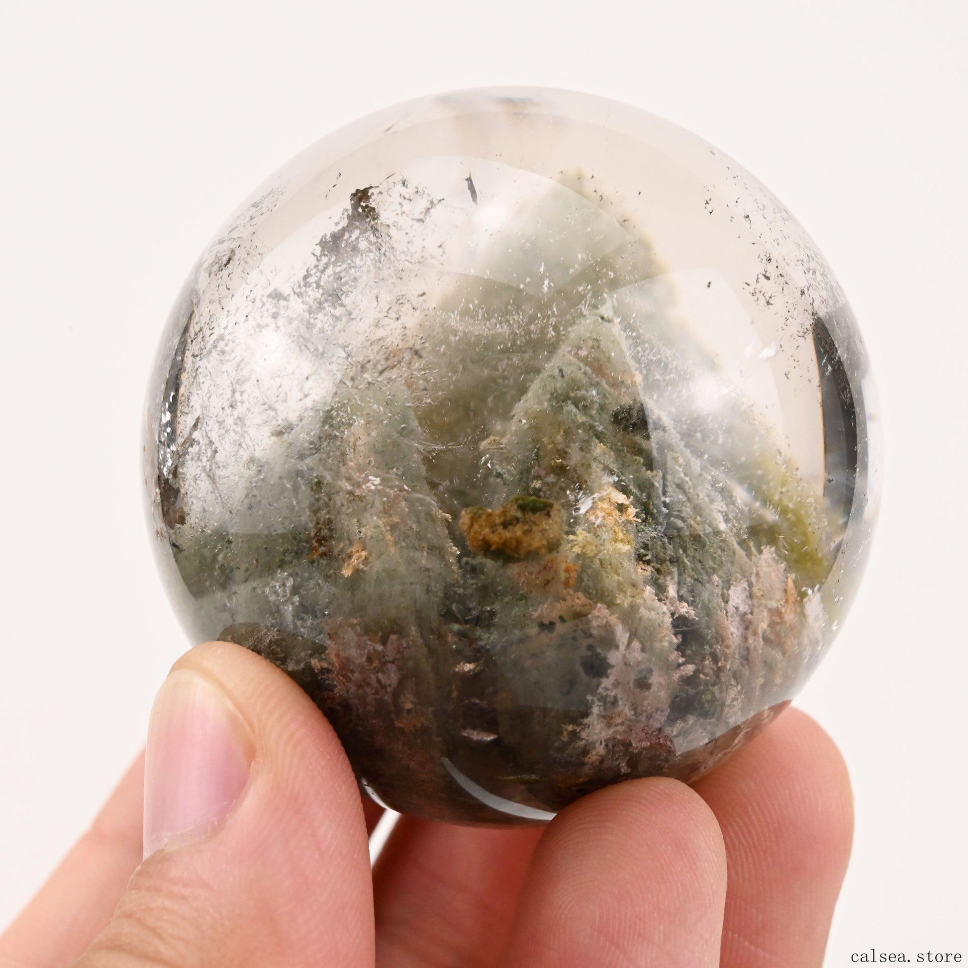 Three Green Mountain Gardenquartz,Lodalite Quartz Sphere Crystal Healing Hand Carved