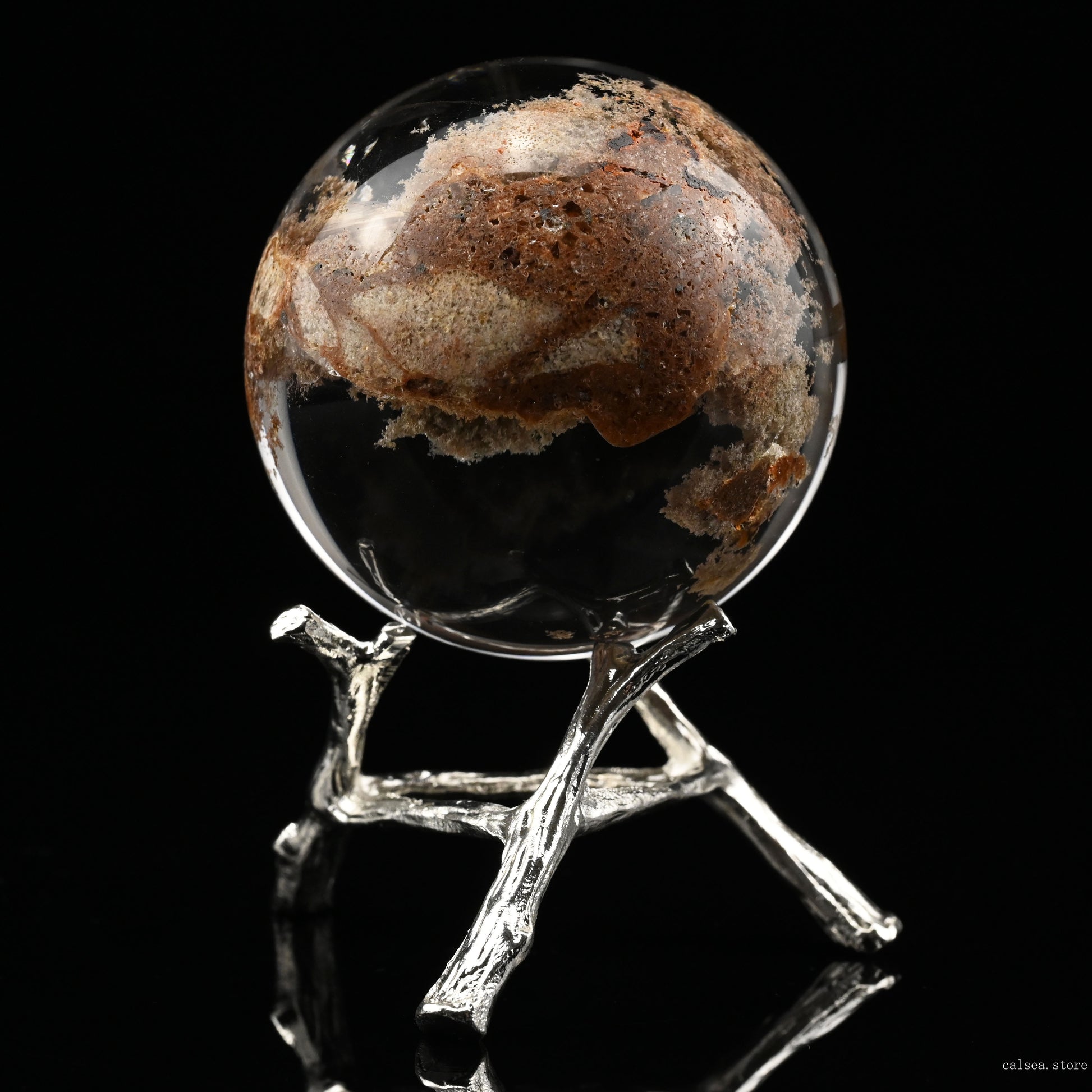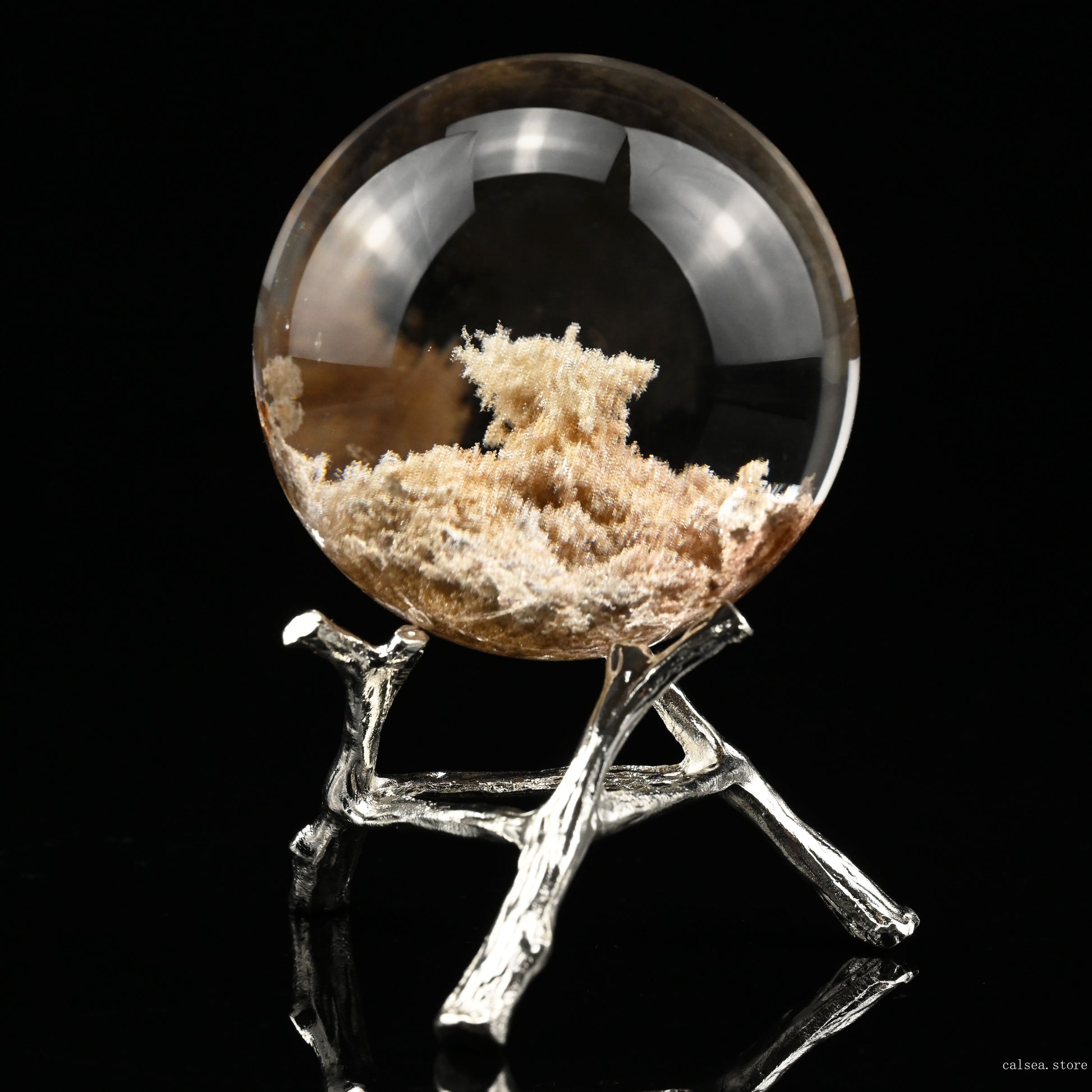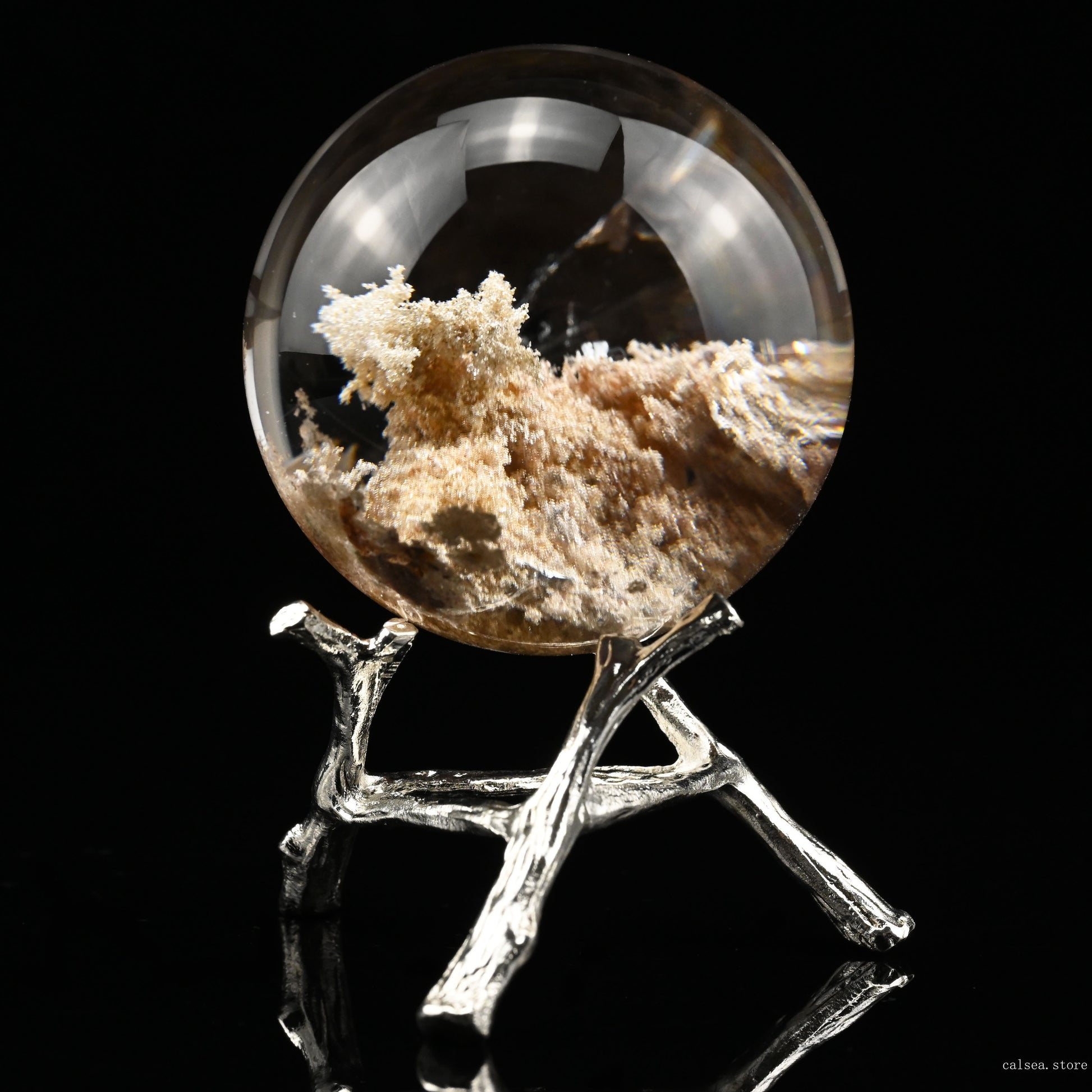 2.11'' Pink Golden Gardenquartz Sphere Lodalite Quartz Crystal Healing Hand Carved Sphere/Ball