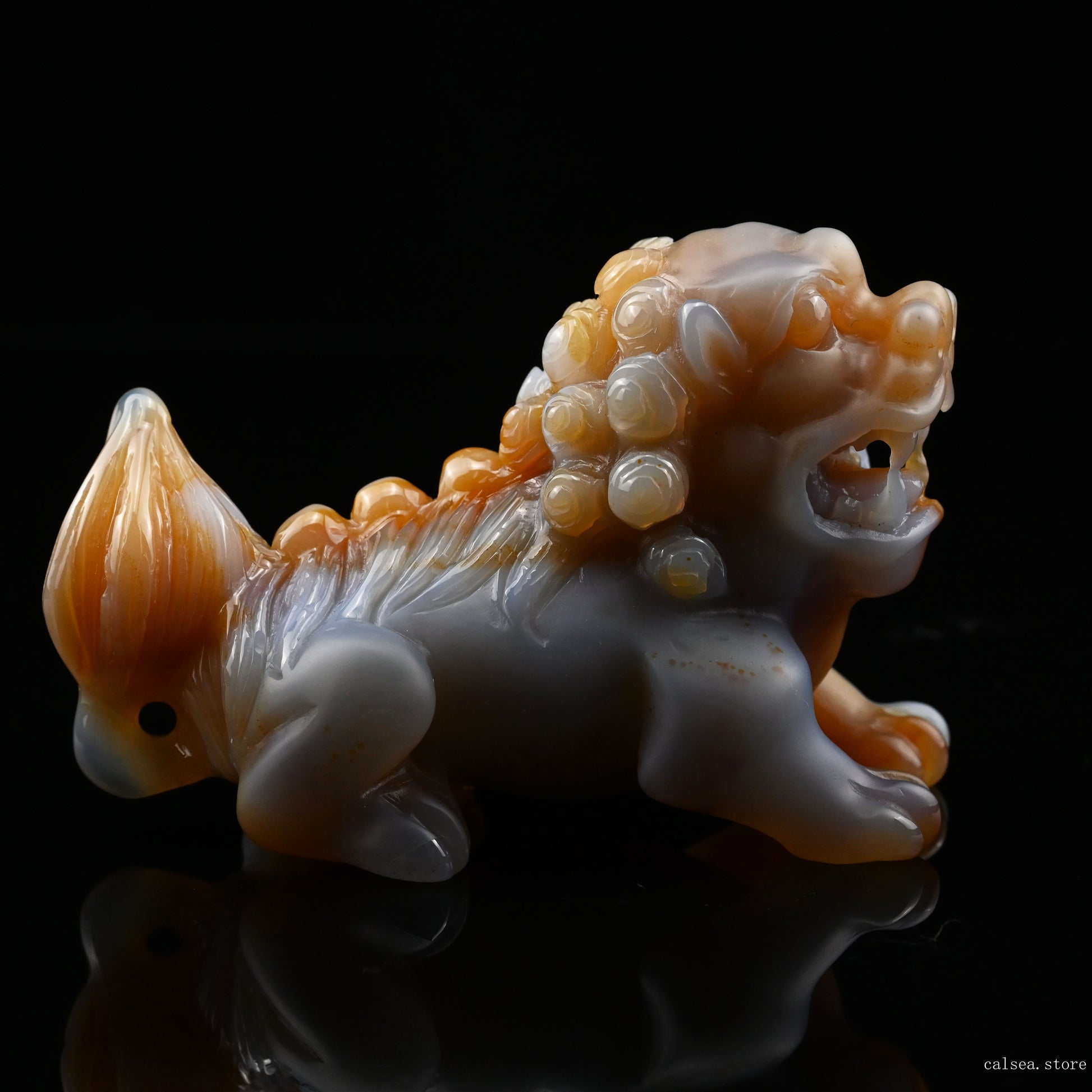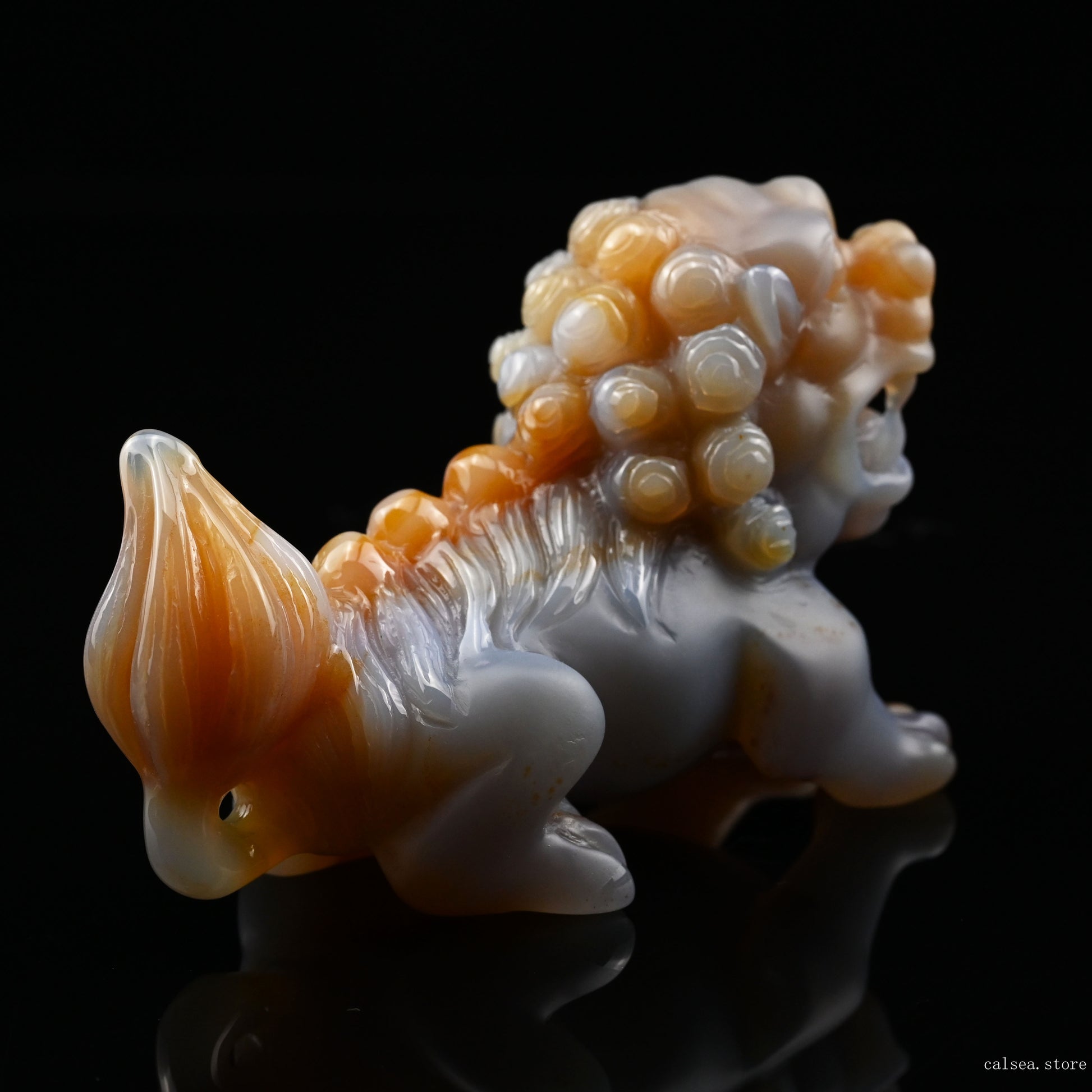 3.46'' Agate Pixiu Sculpture Crystal Healing Hand Carved