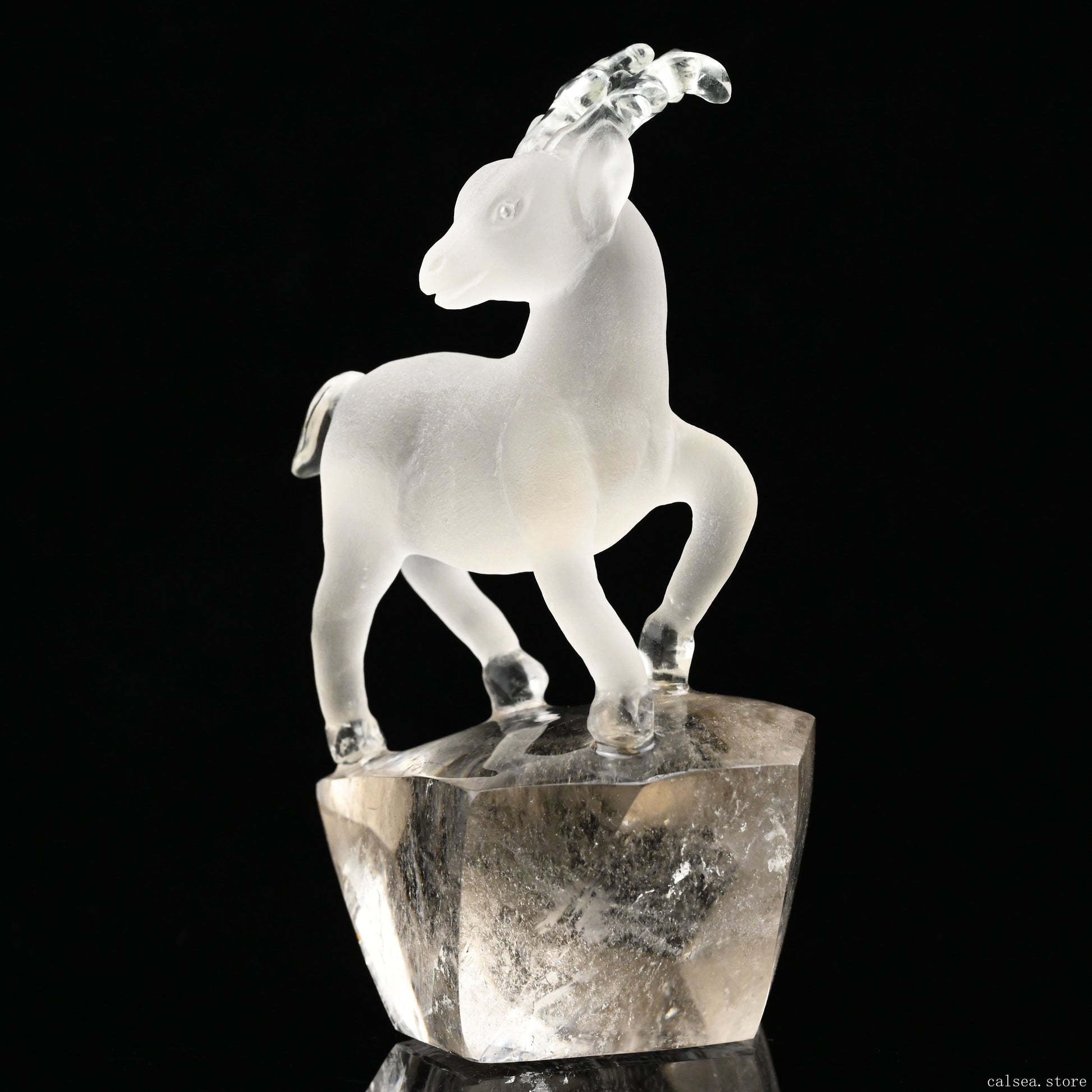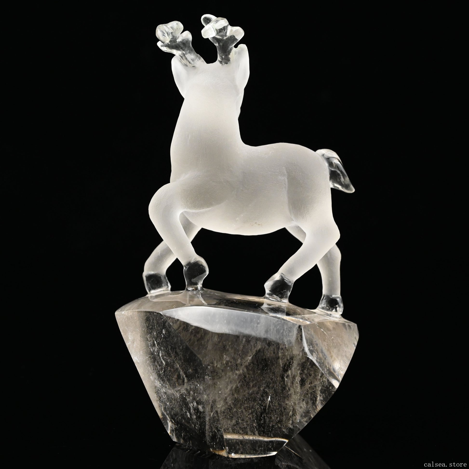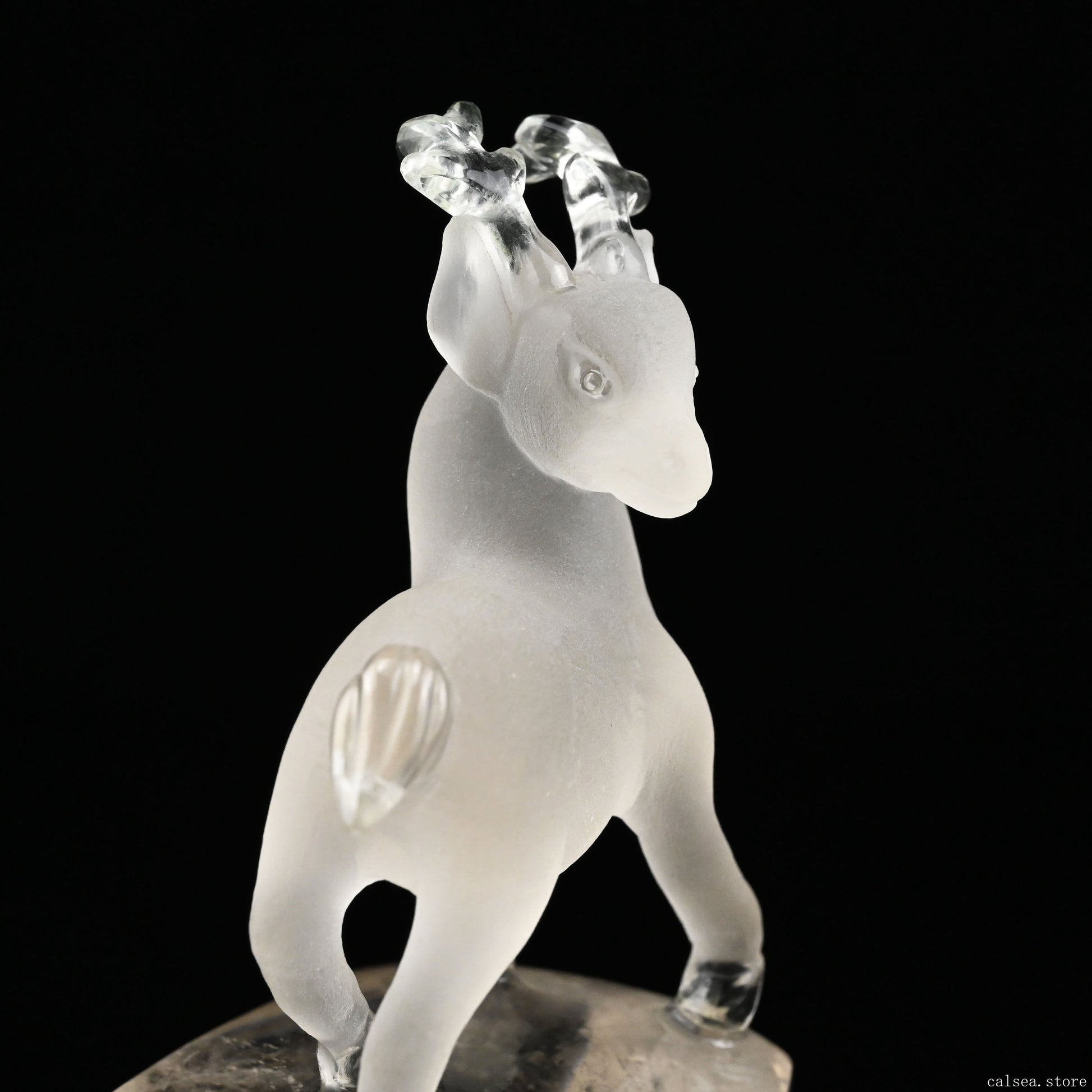 4.35'' Smokeyquartz Deer Sculpture Hand Carved Super Realistic Carving