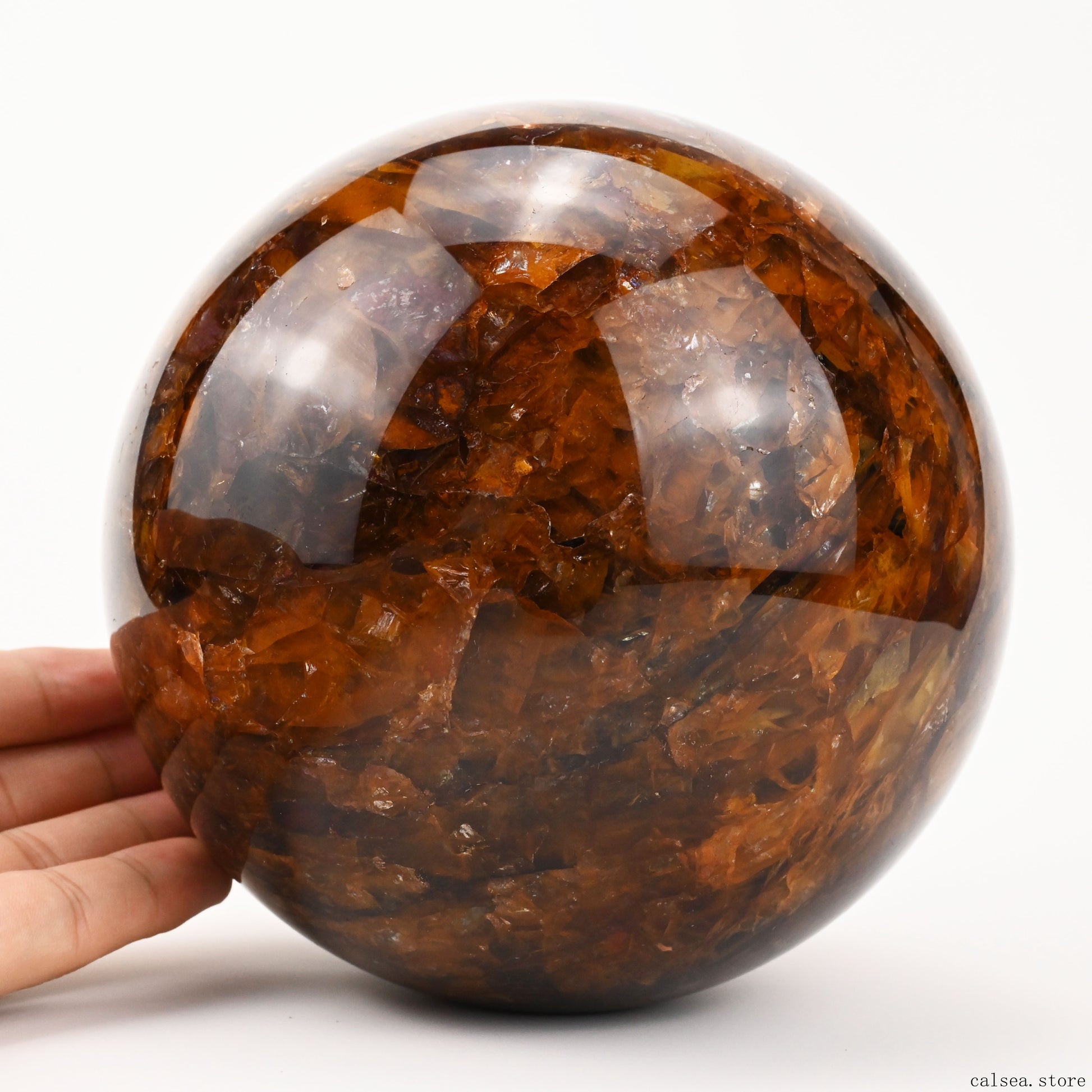 5.47'' Dark Goldenhealer Sphere Crystal Healing Hand Carved Sphere/Ball