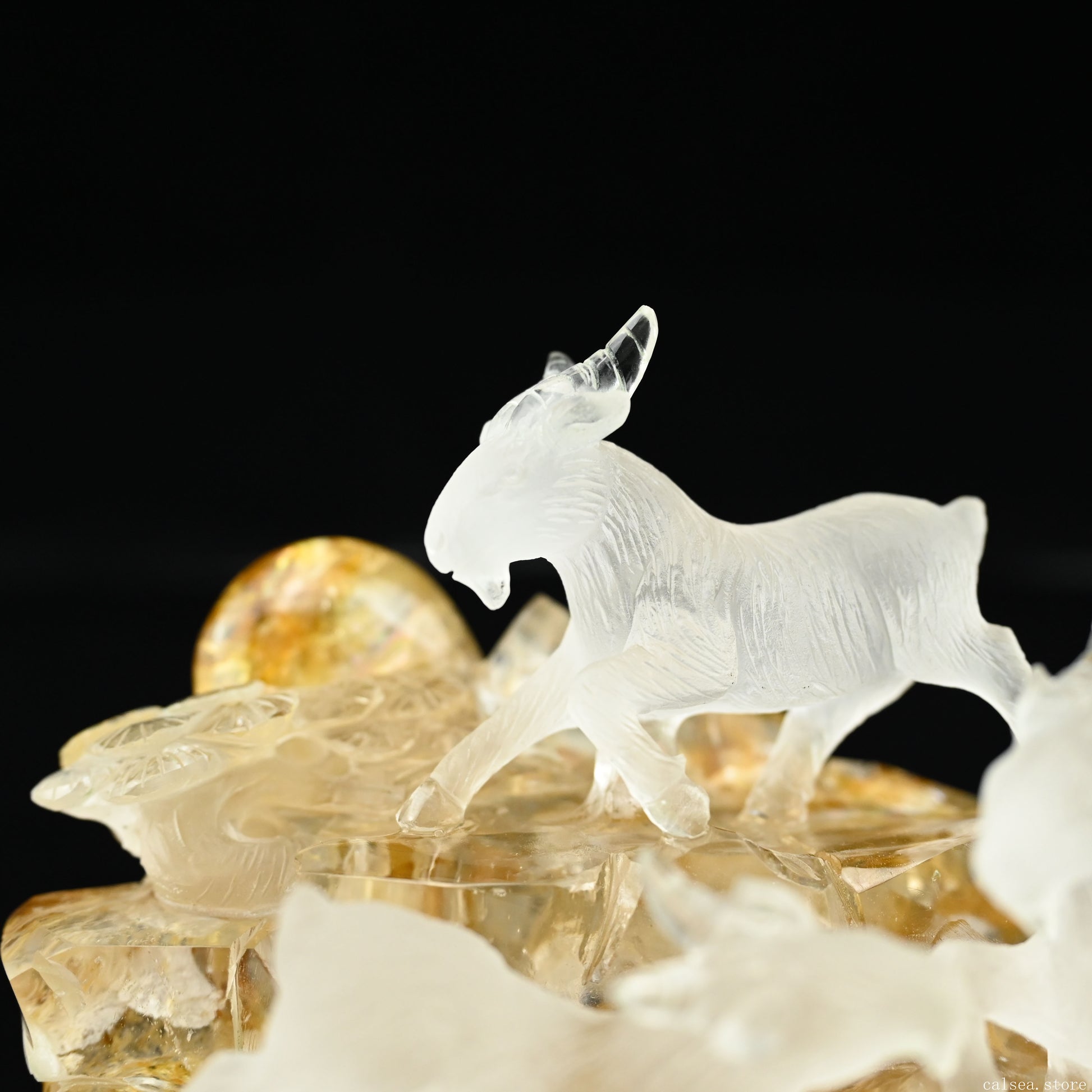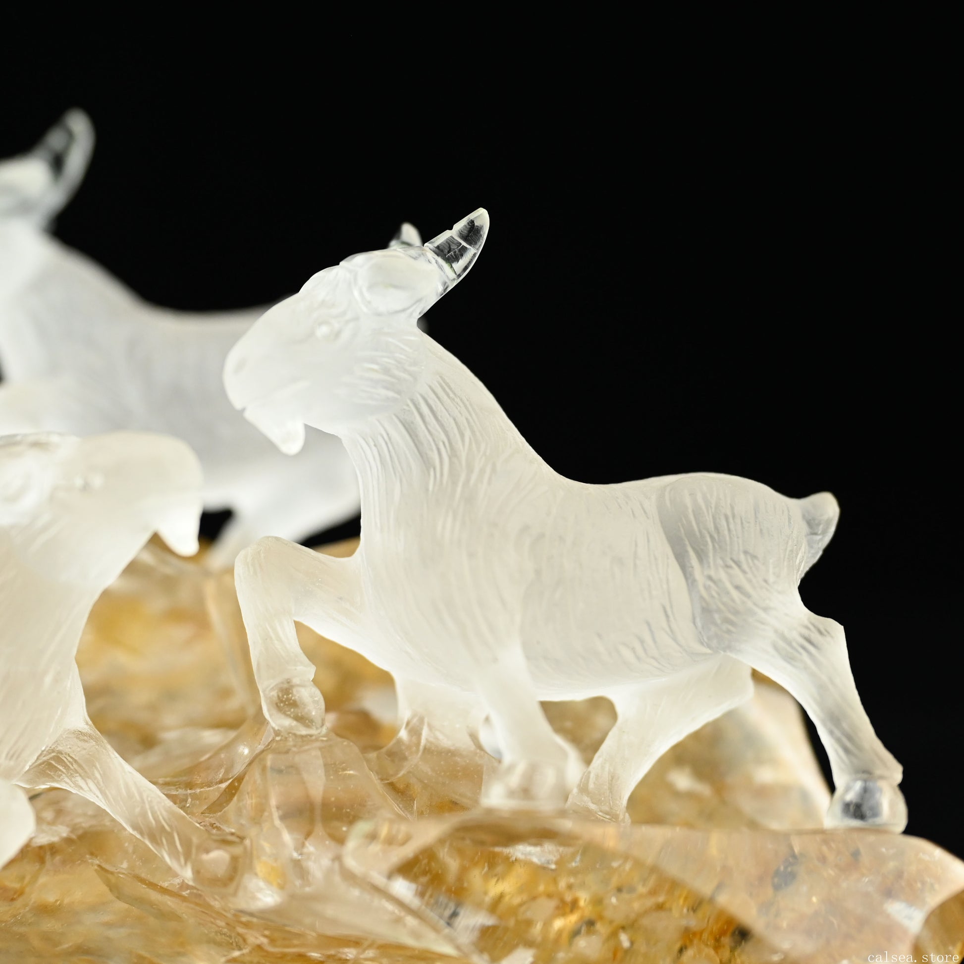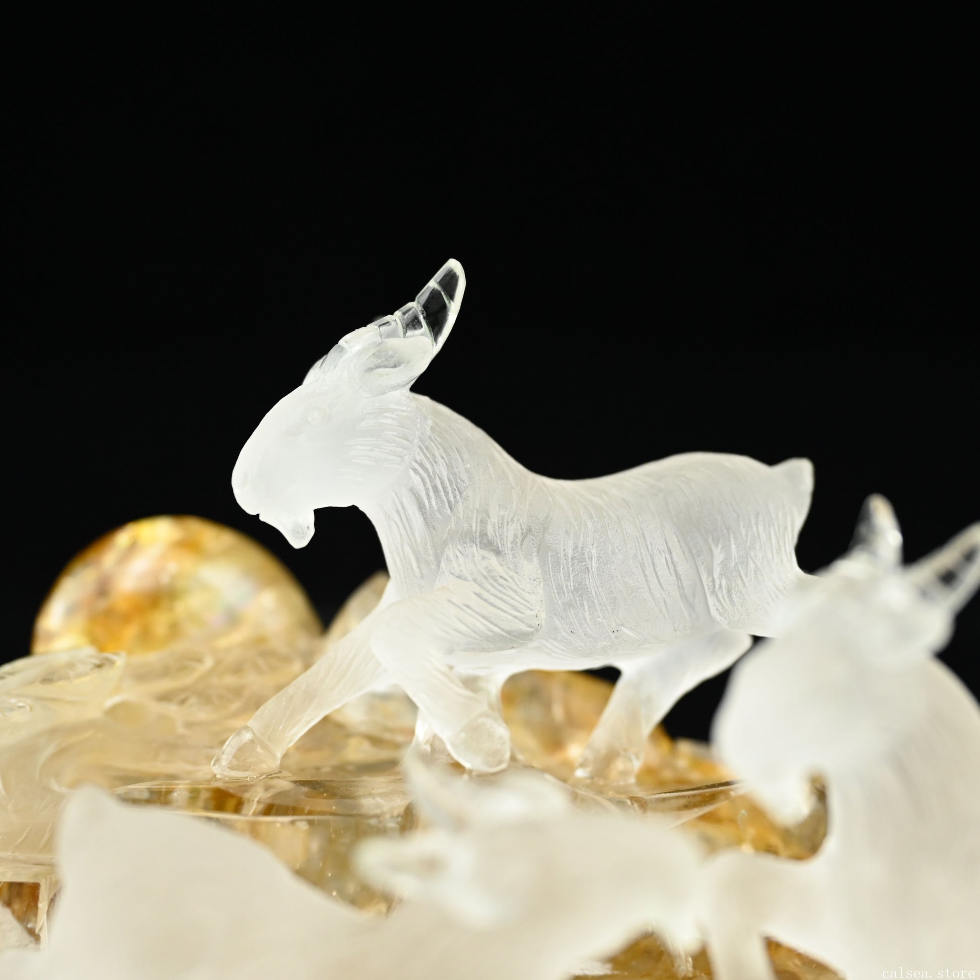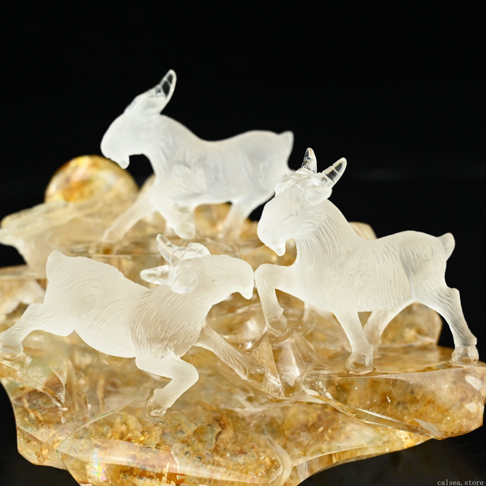 6.88" GoldenHealer Three Goats Sculpture Sanyang Kaitai Carving Hand Carved Super Realistic