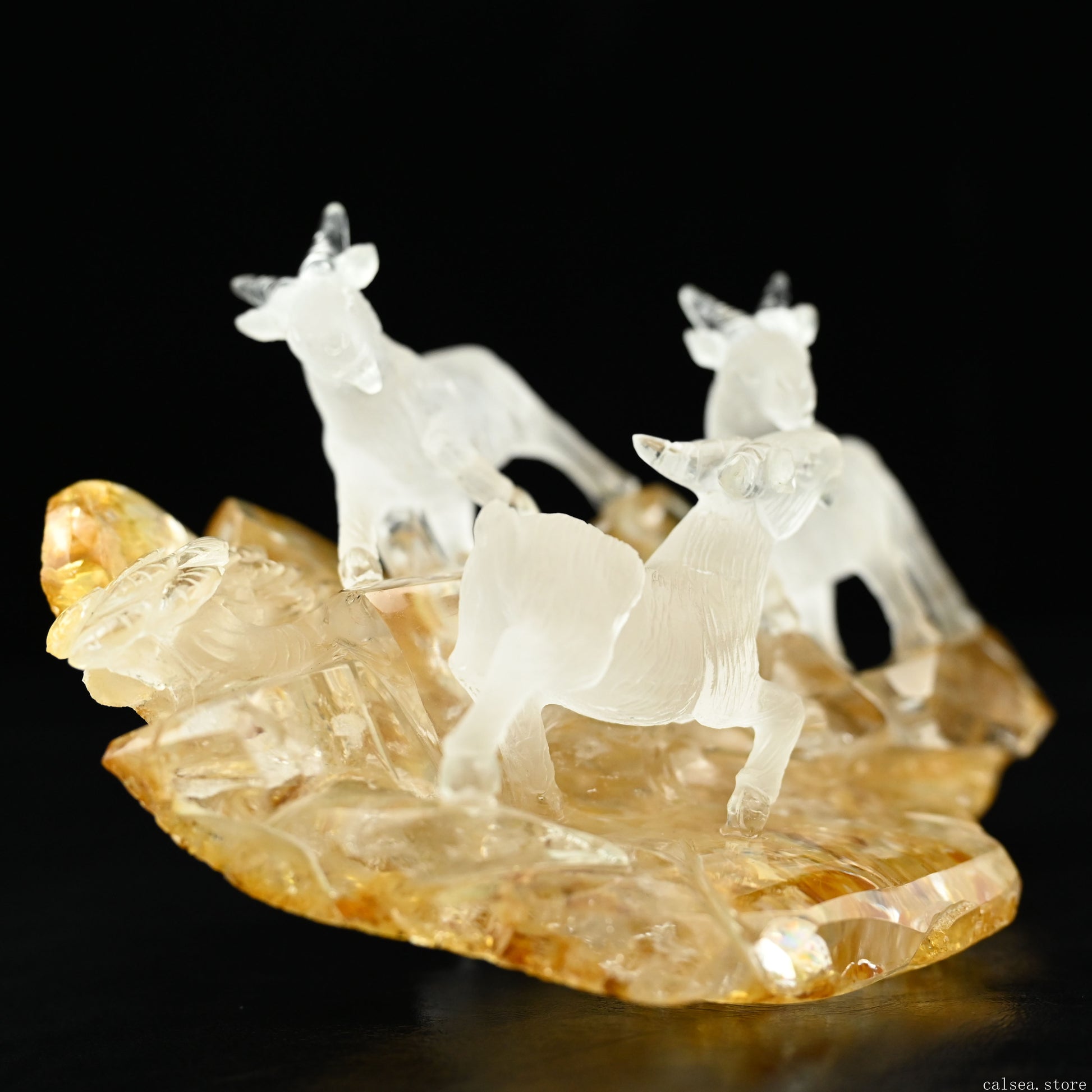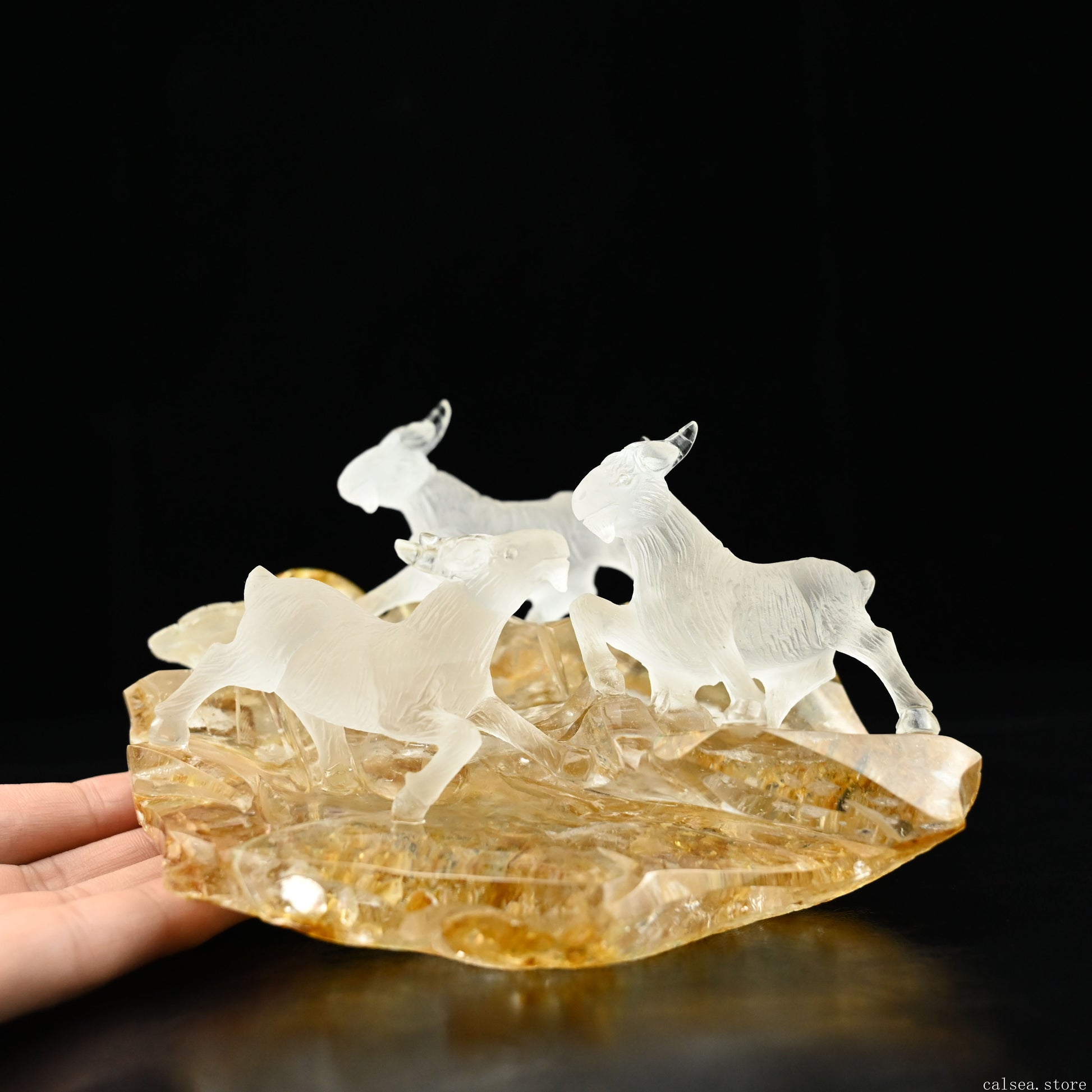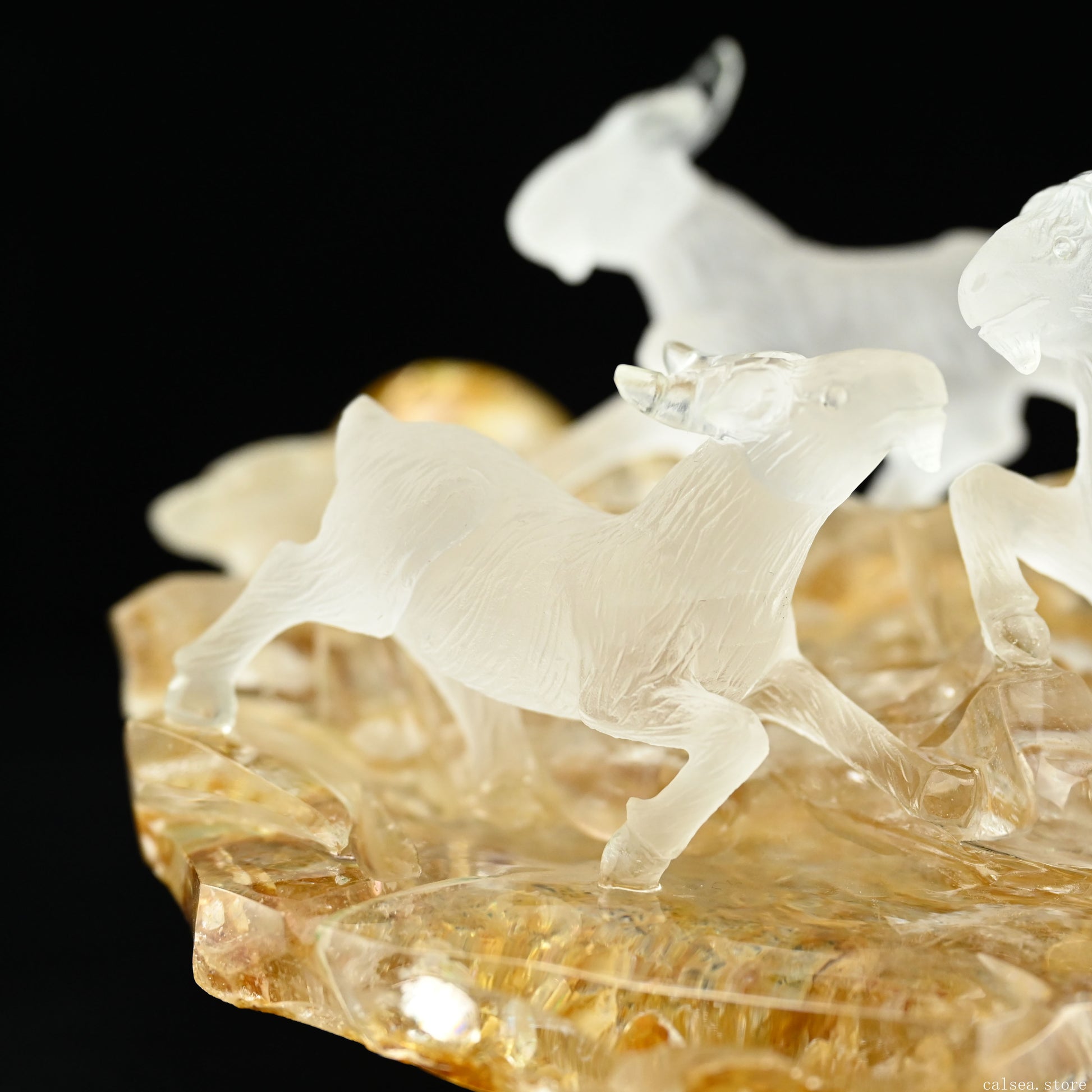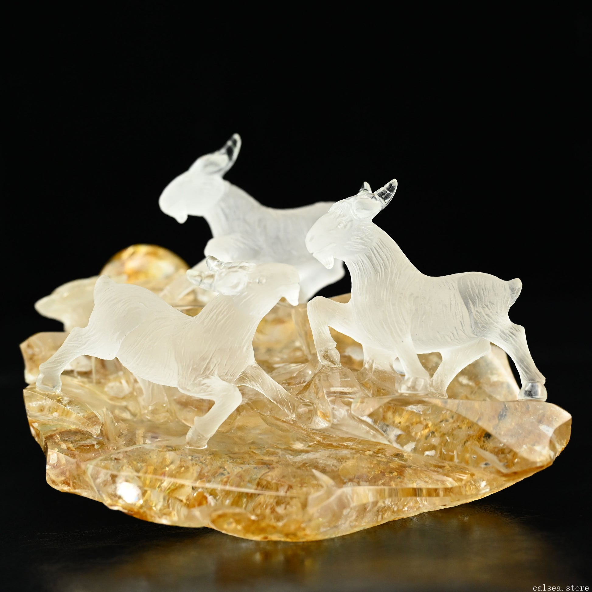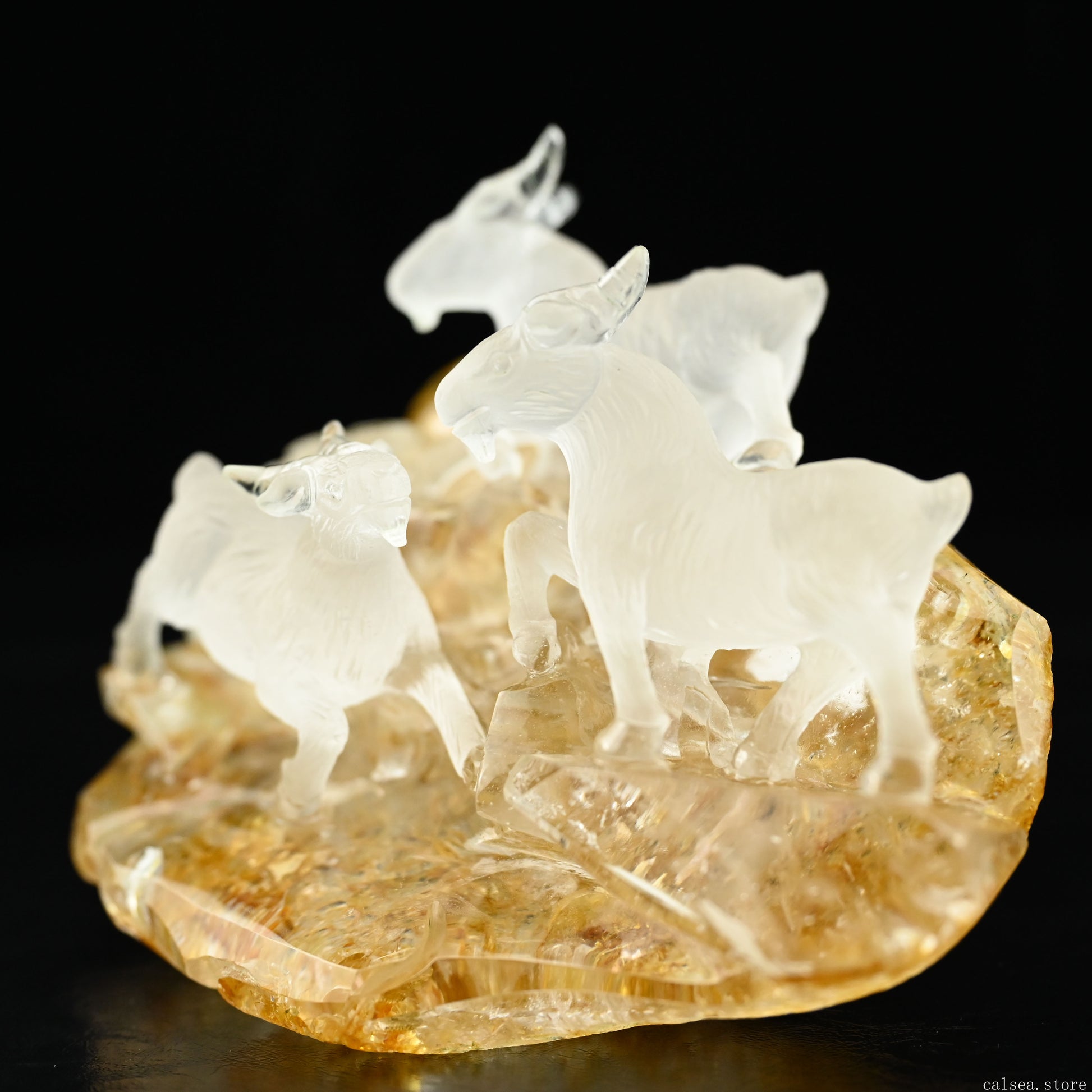 6.88" GoldenHealer Three Goats Sculpture Sanyang Kaitai Carving Hand Carved Super Realistic