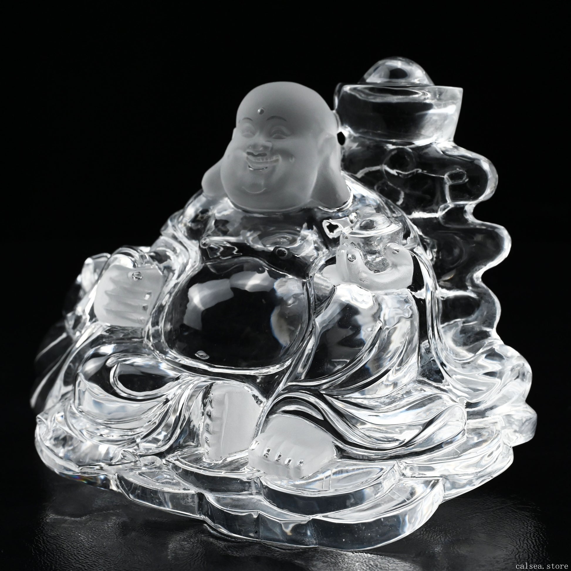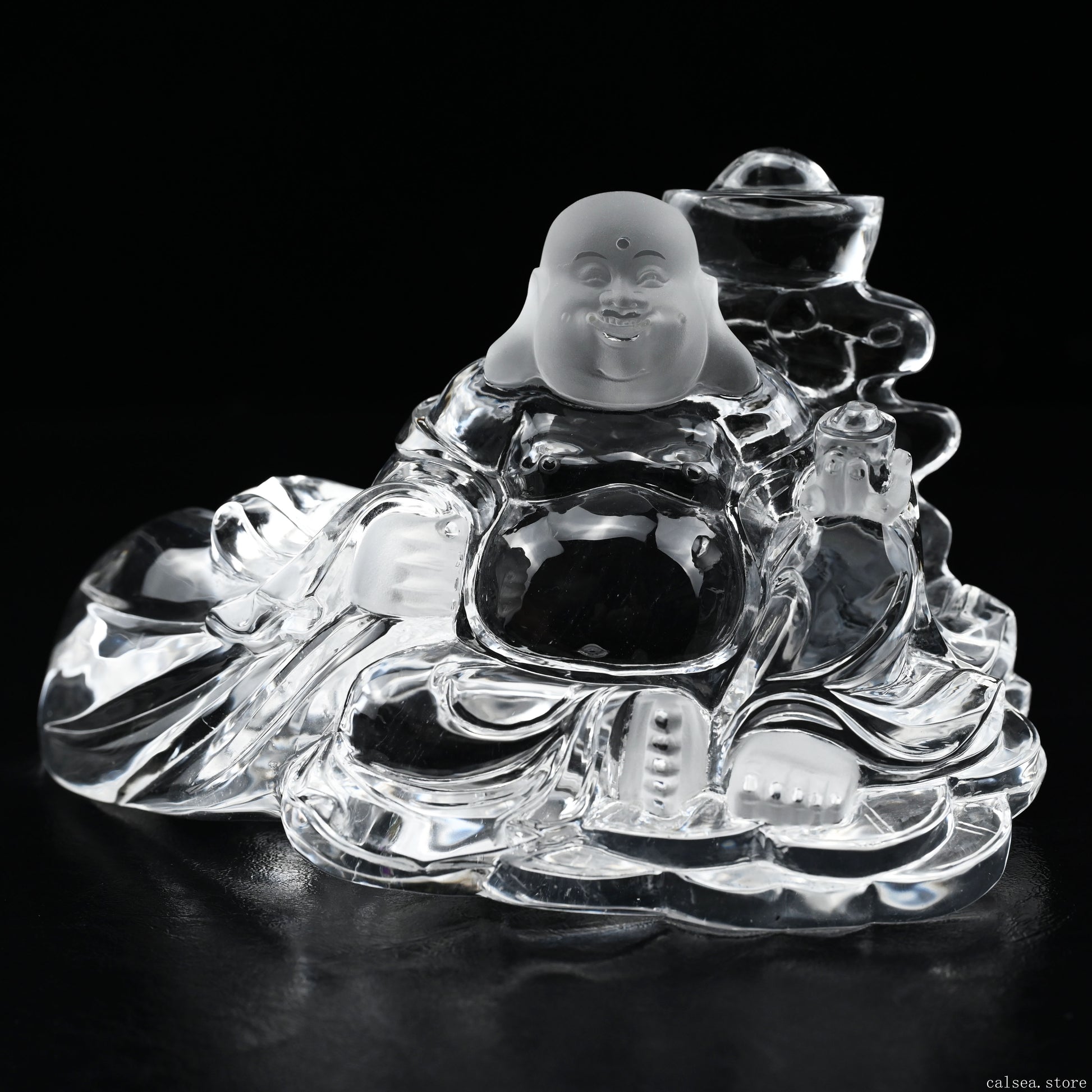 6.92'' Clearquartz Buddha Sculpture Super Clear Crystal Healing Hand Carved