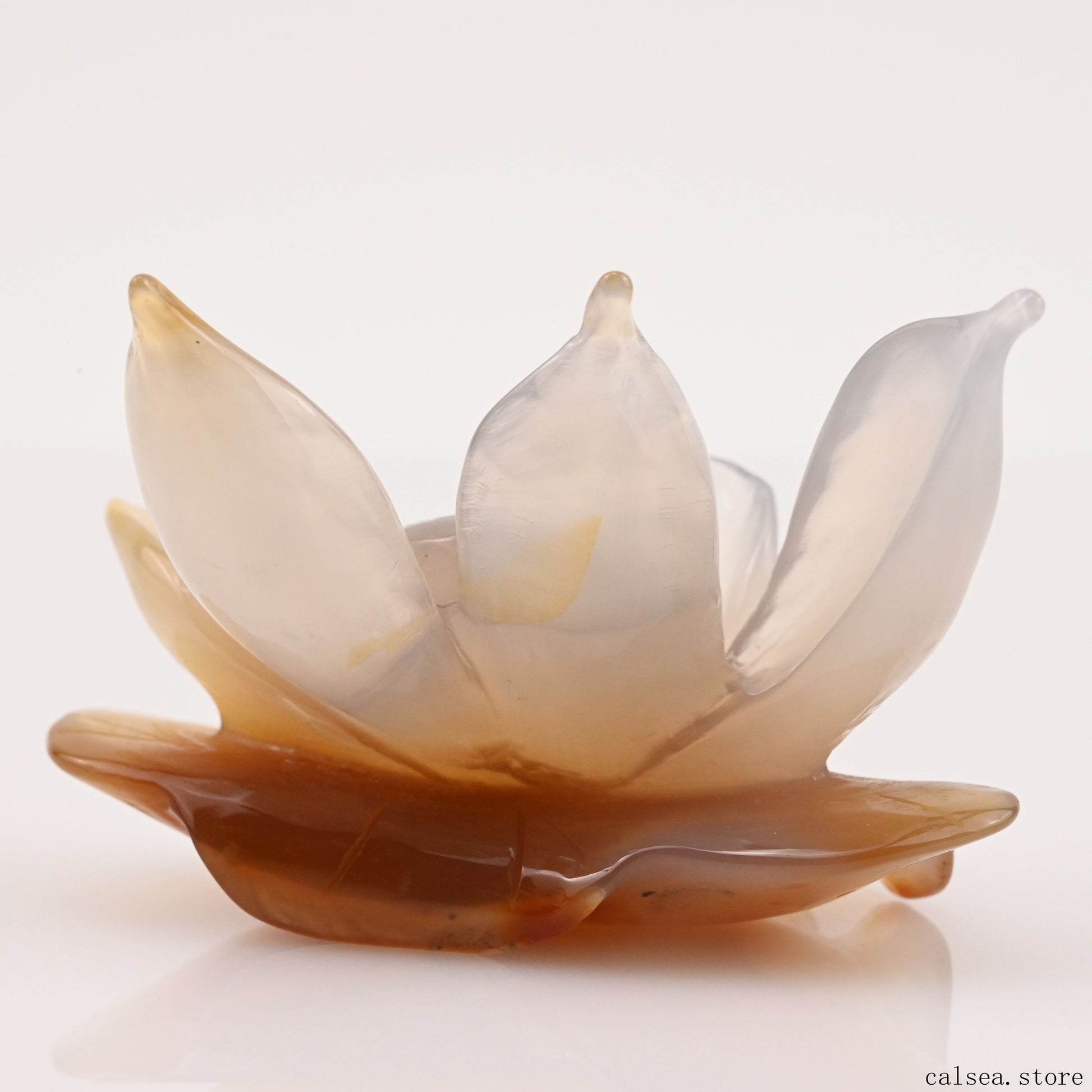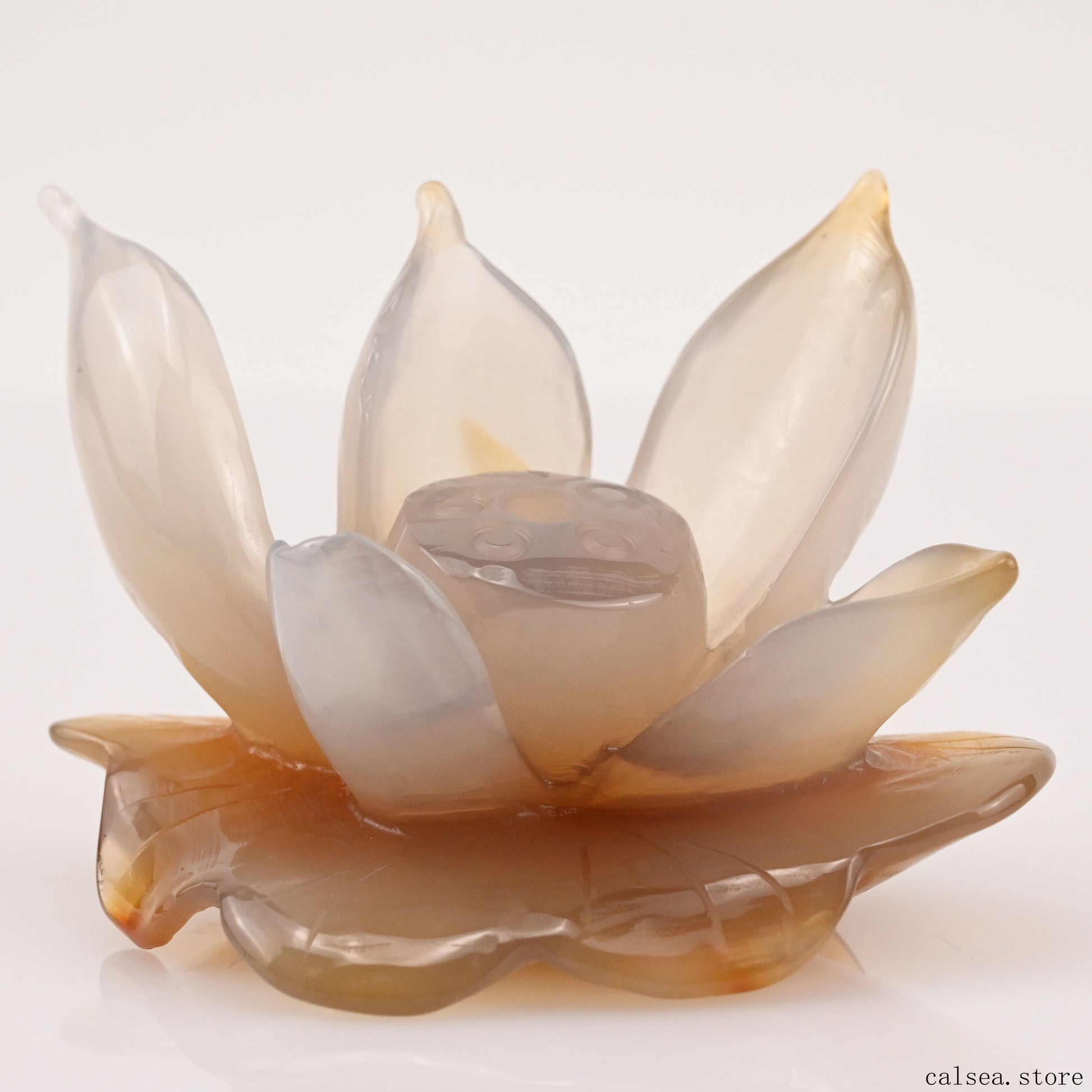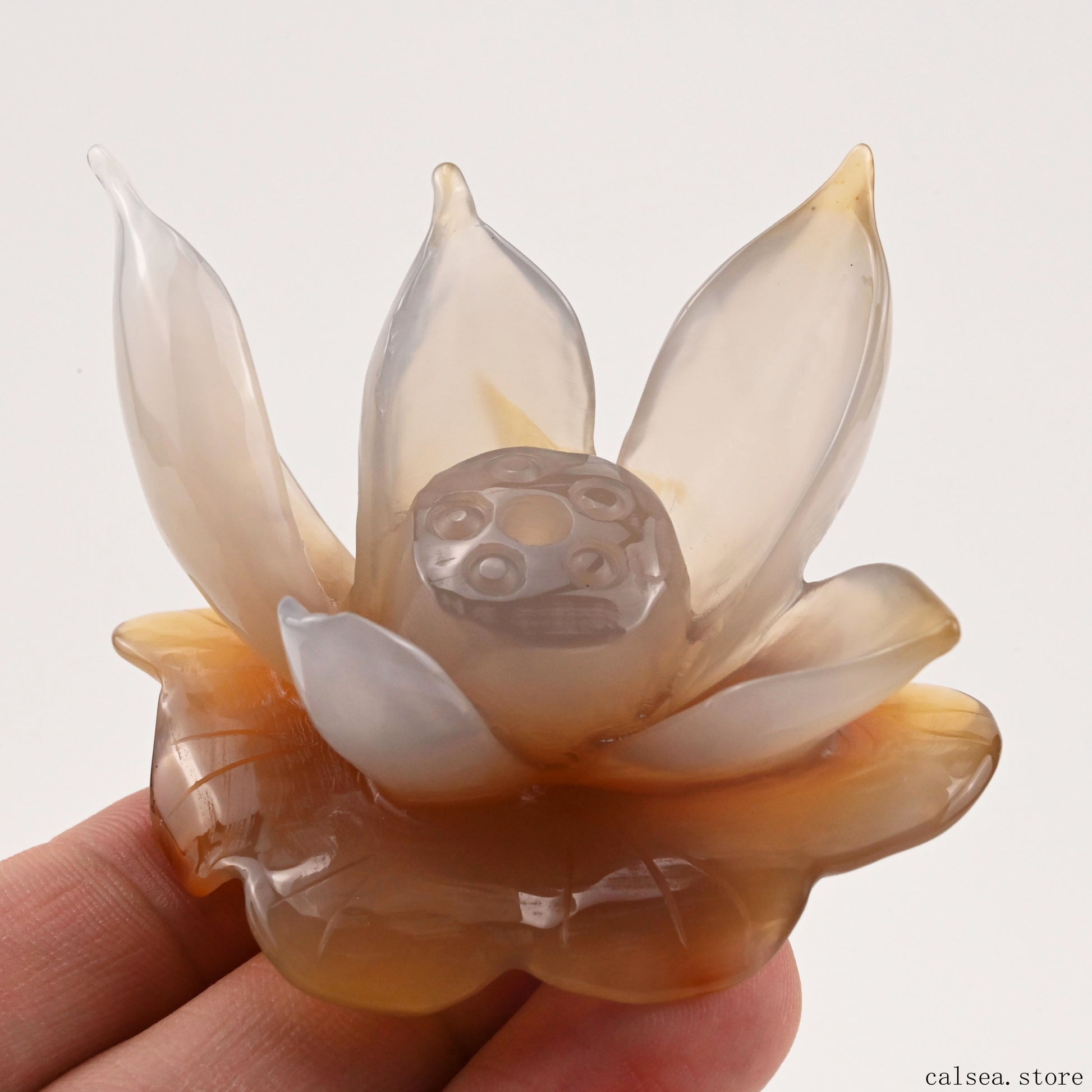 Agate Lotus Flower Sculpture Crystal Healing Hand Carved Ornaments