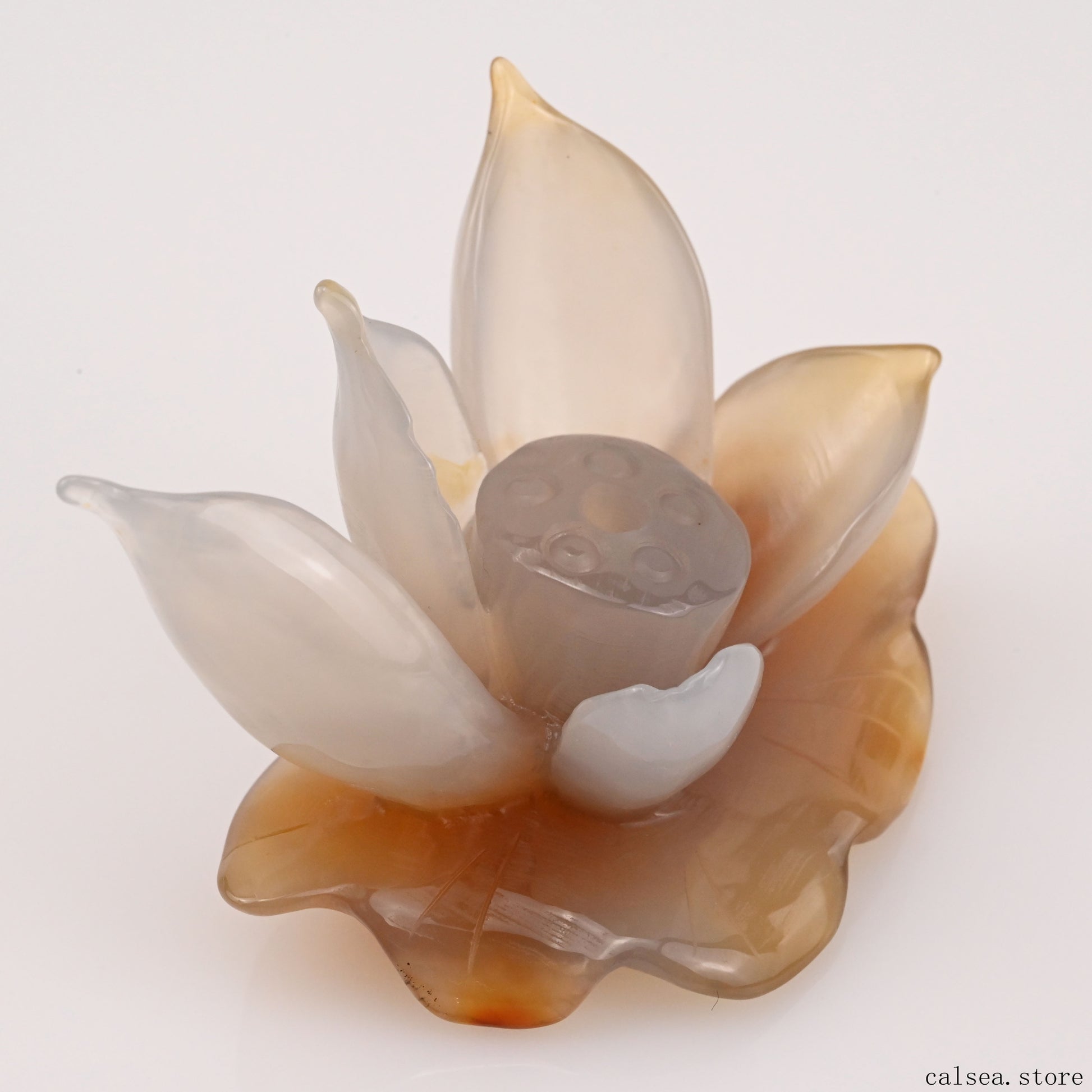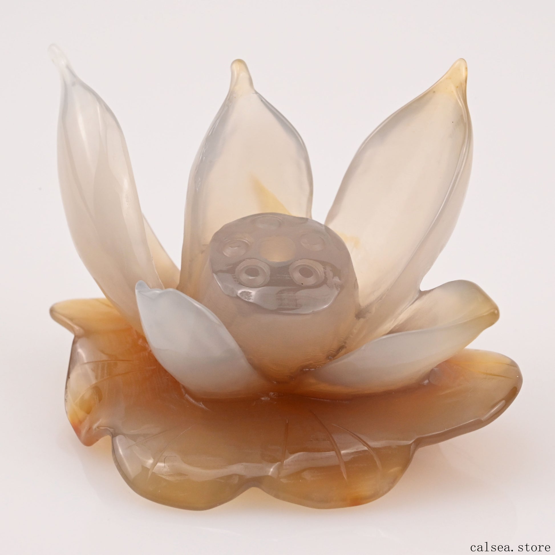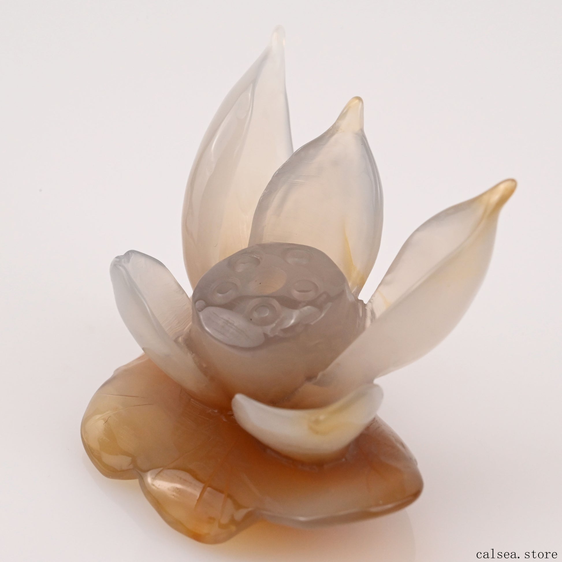 Agate Lotus Flower Sculpture Crystal Healing Hand Carved Ornaments