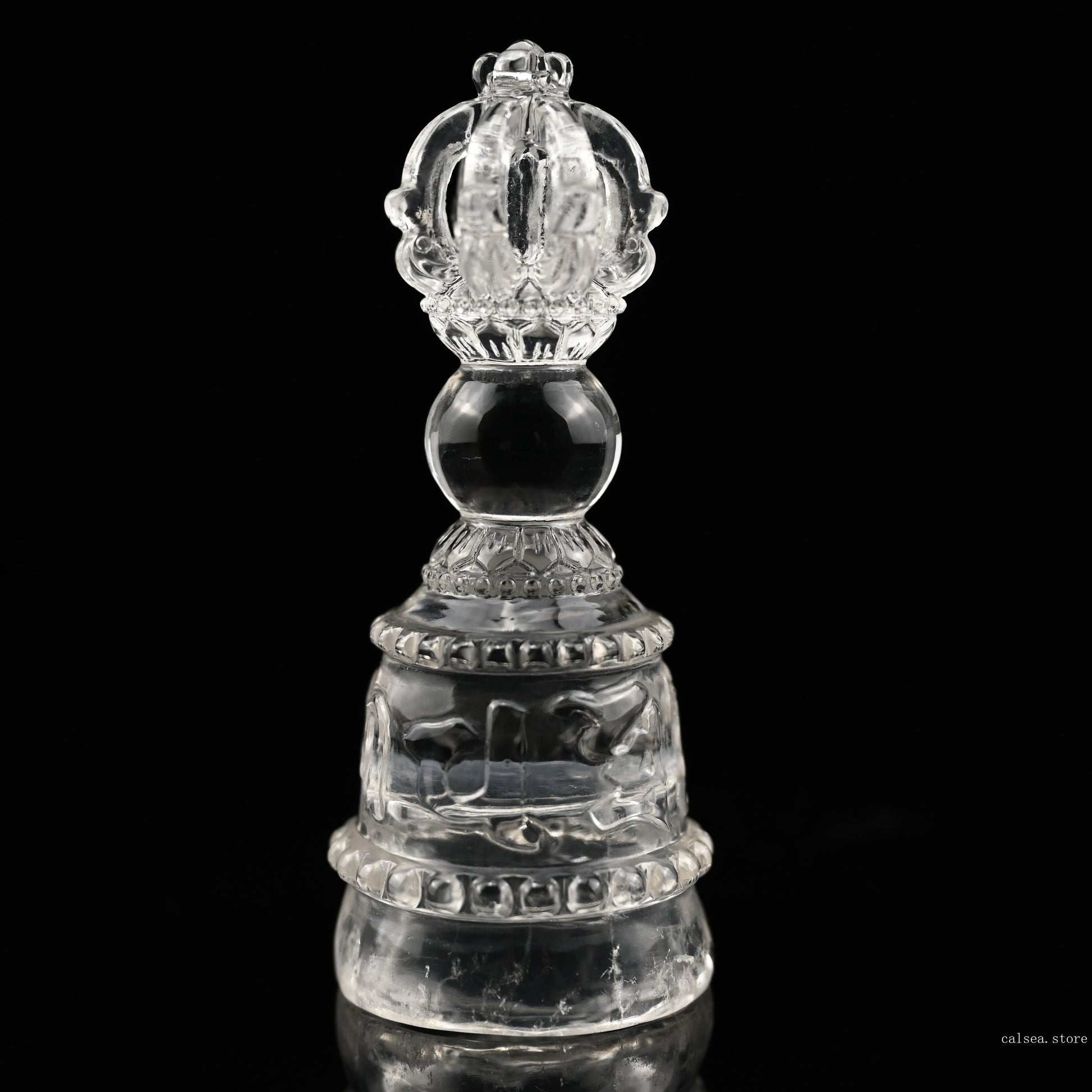 Awesome Clearquartz Vajira Bell Sculpture Artifact Crystal Healing Hand Carved