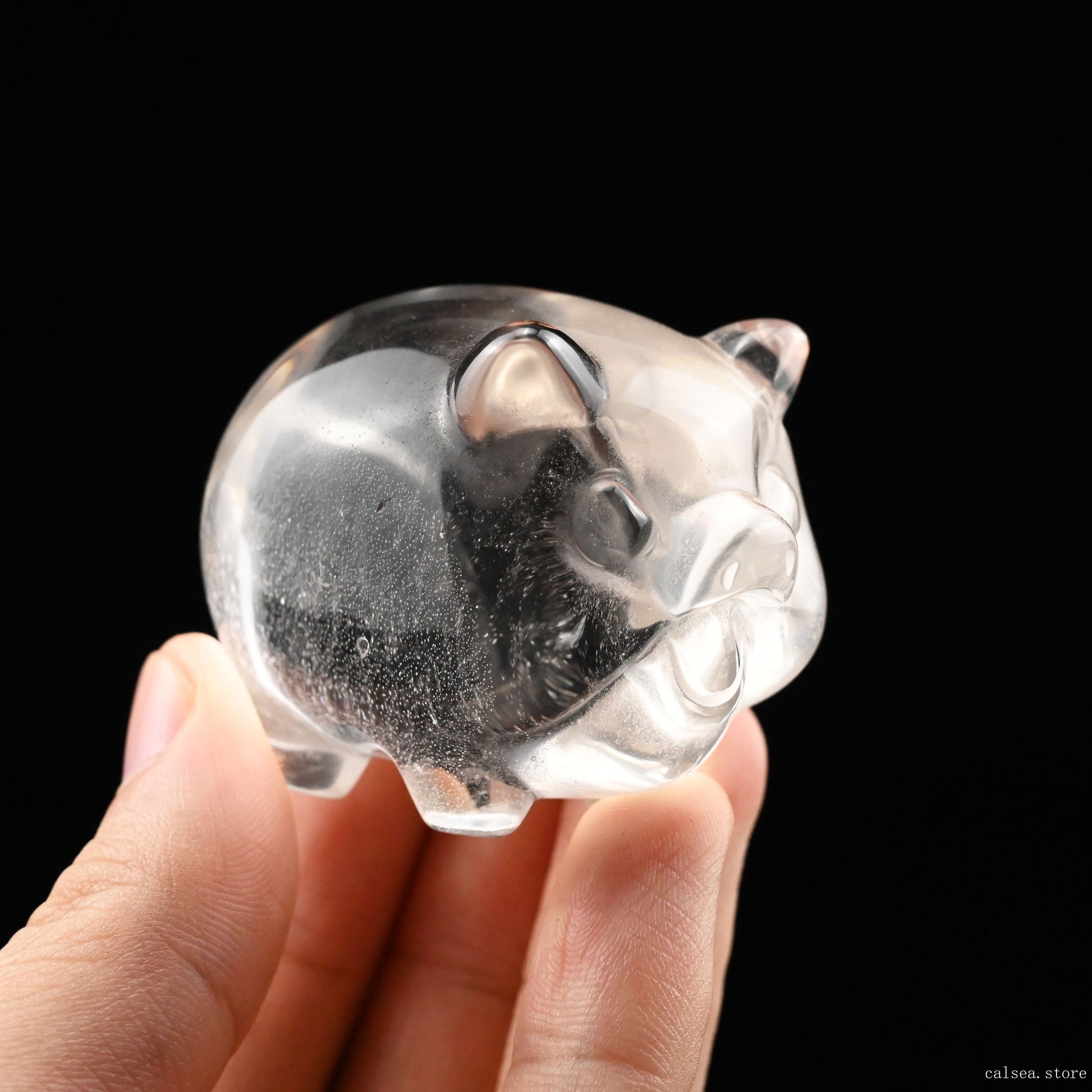 Clearquartz Pig Sculpture Crystal Healing Hand Carved Ornaments