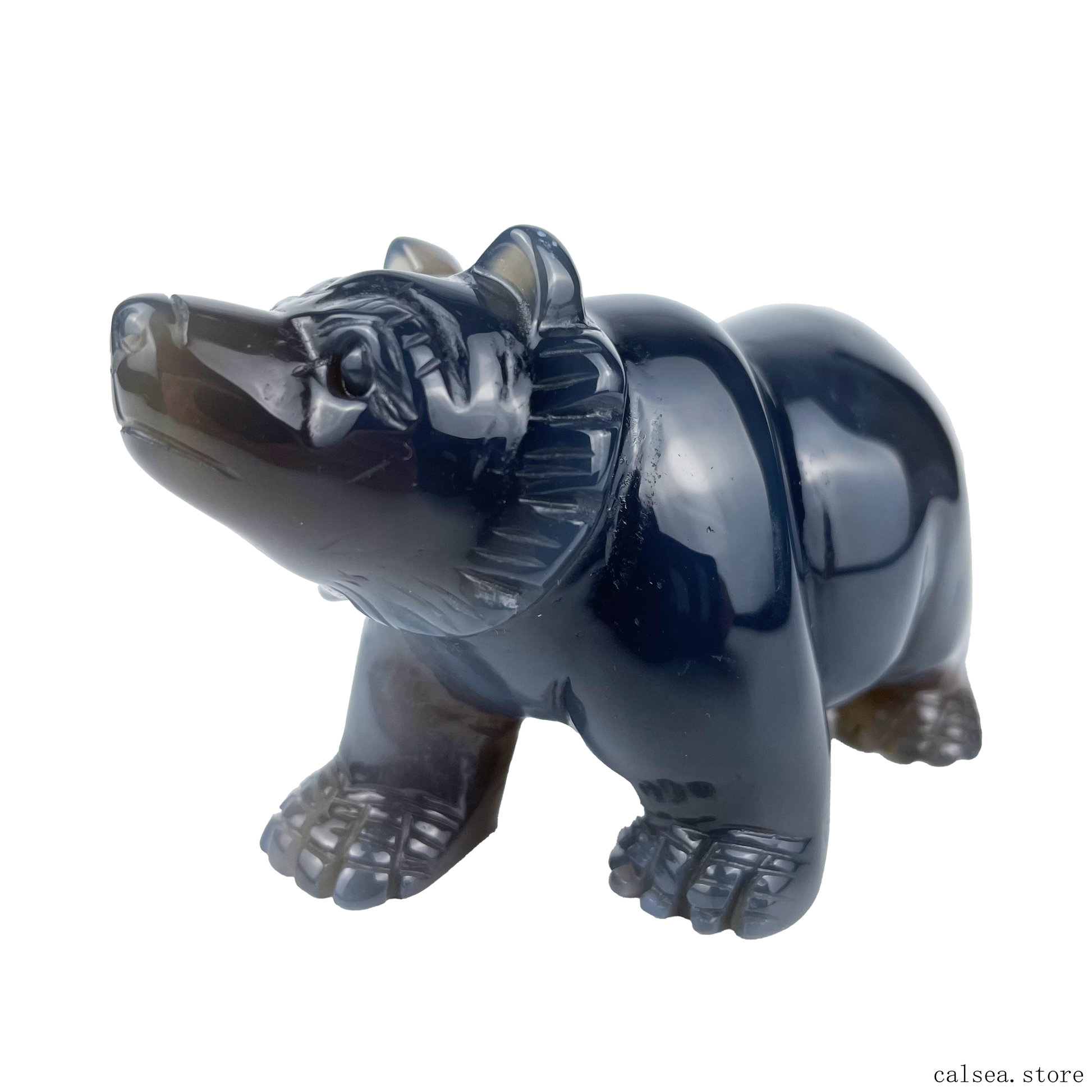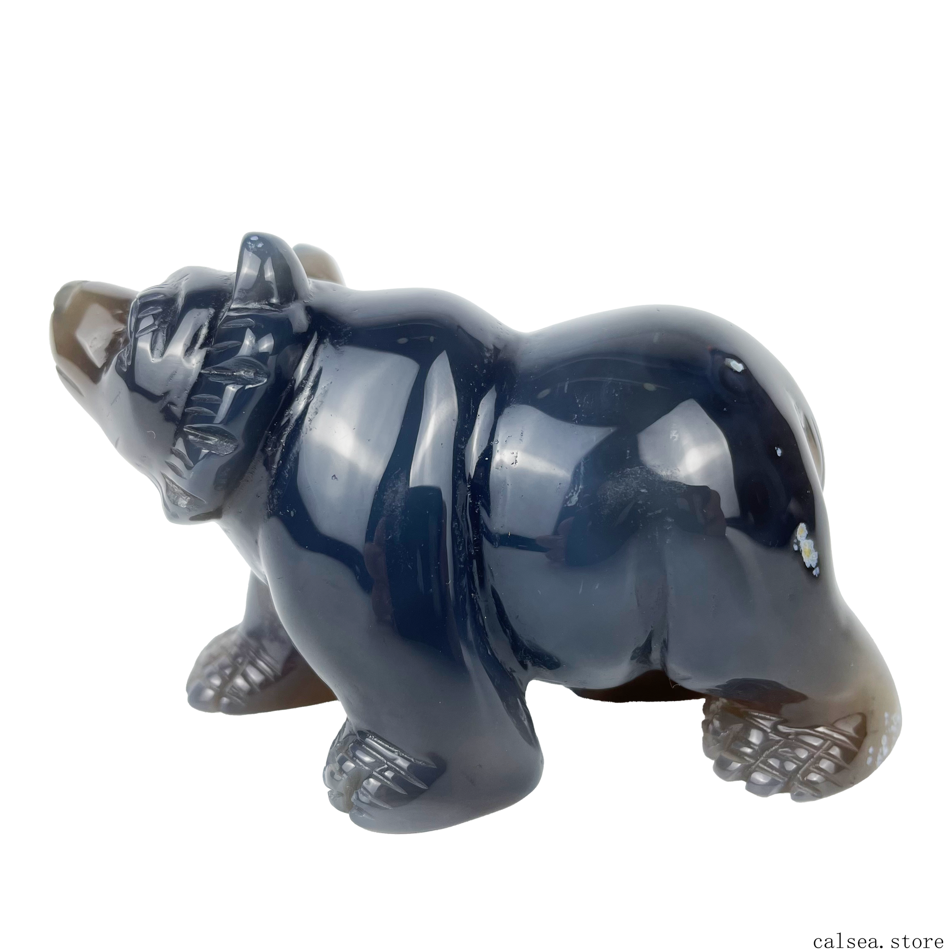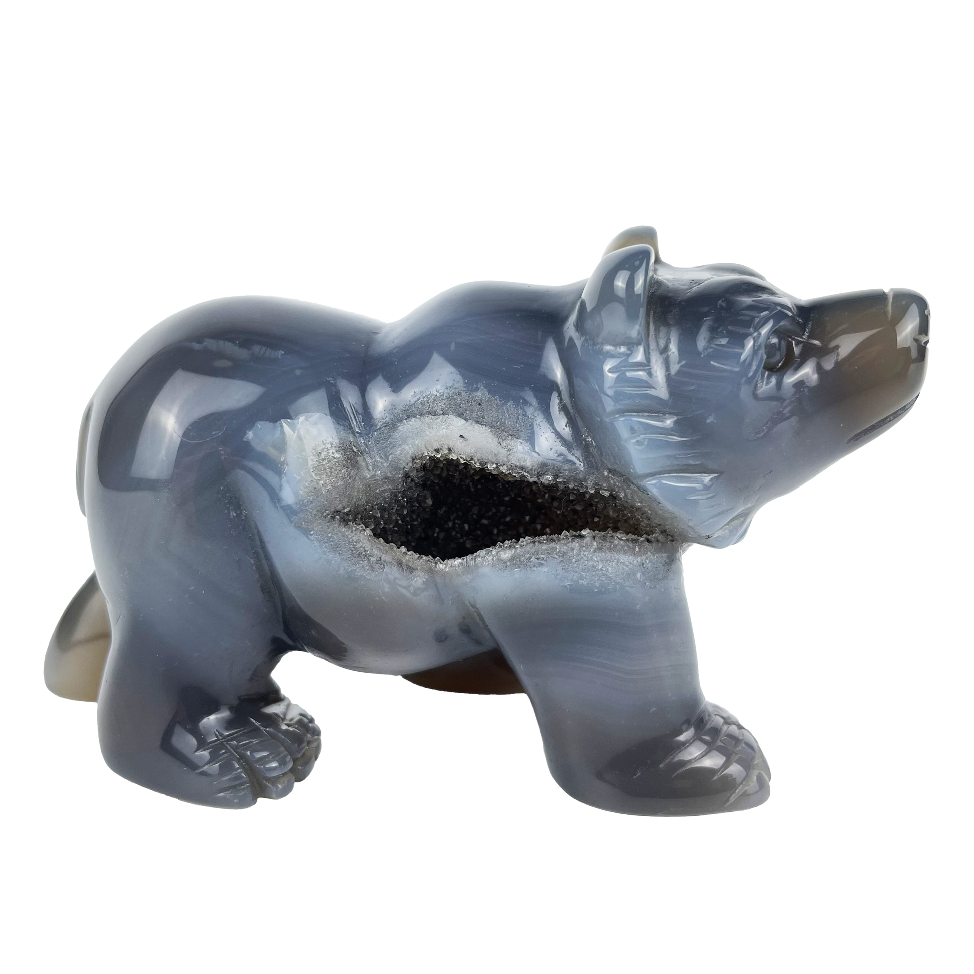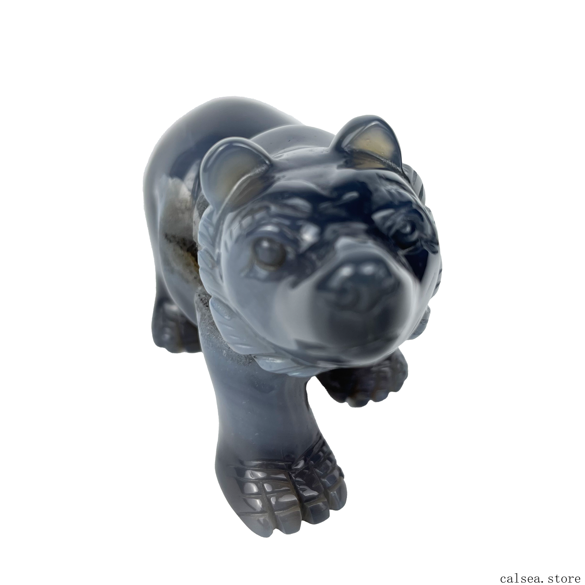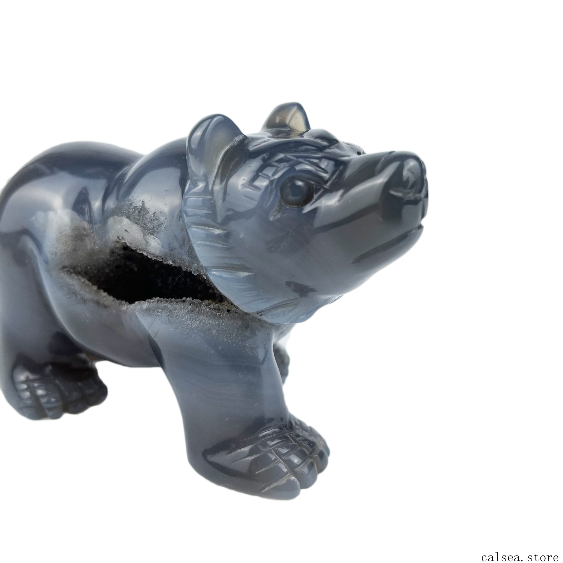 Druse Agate Bear Sculpture Crystal Healing Hand Carved