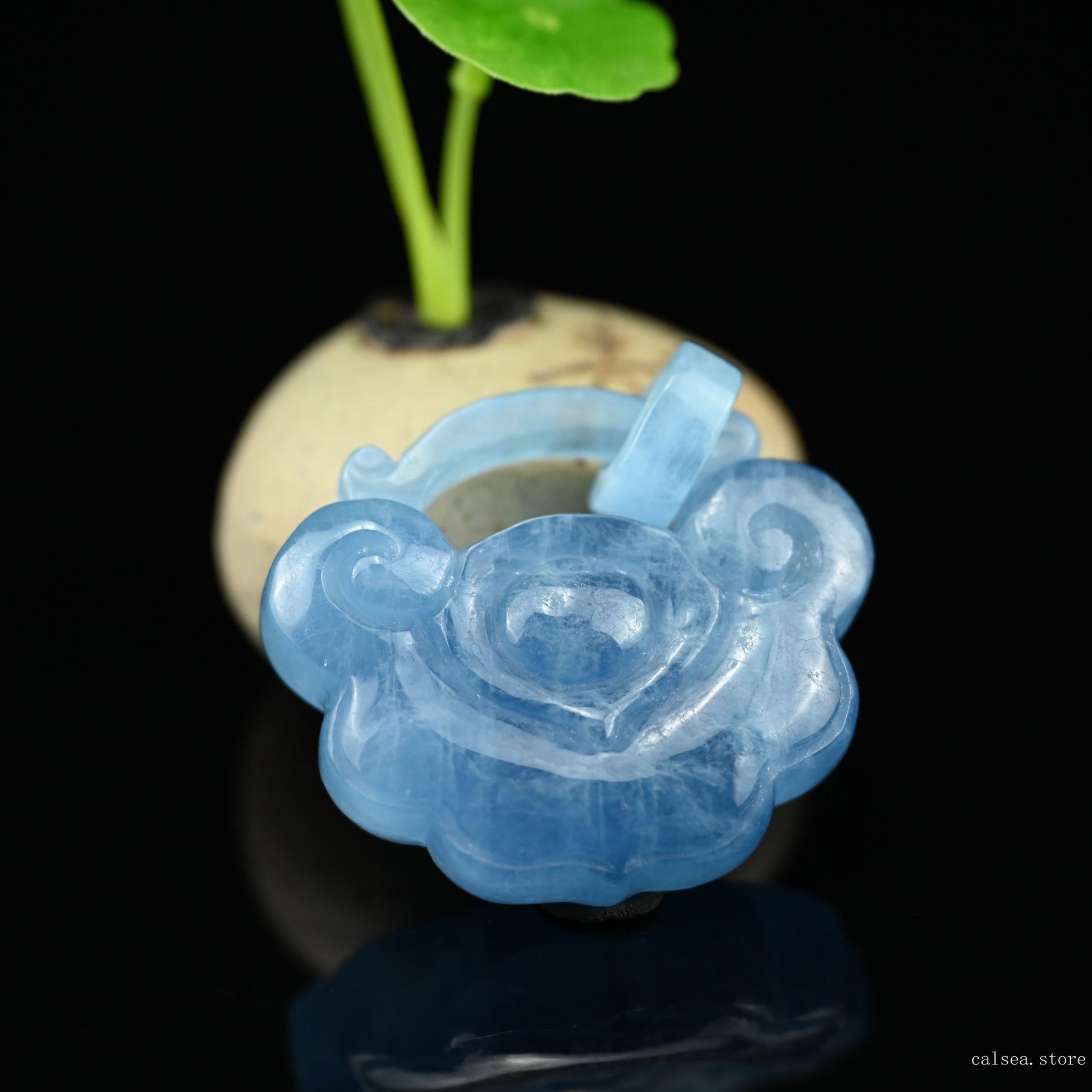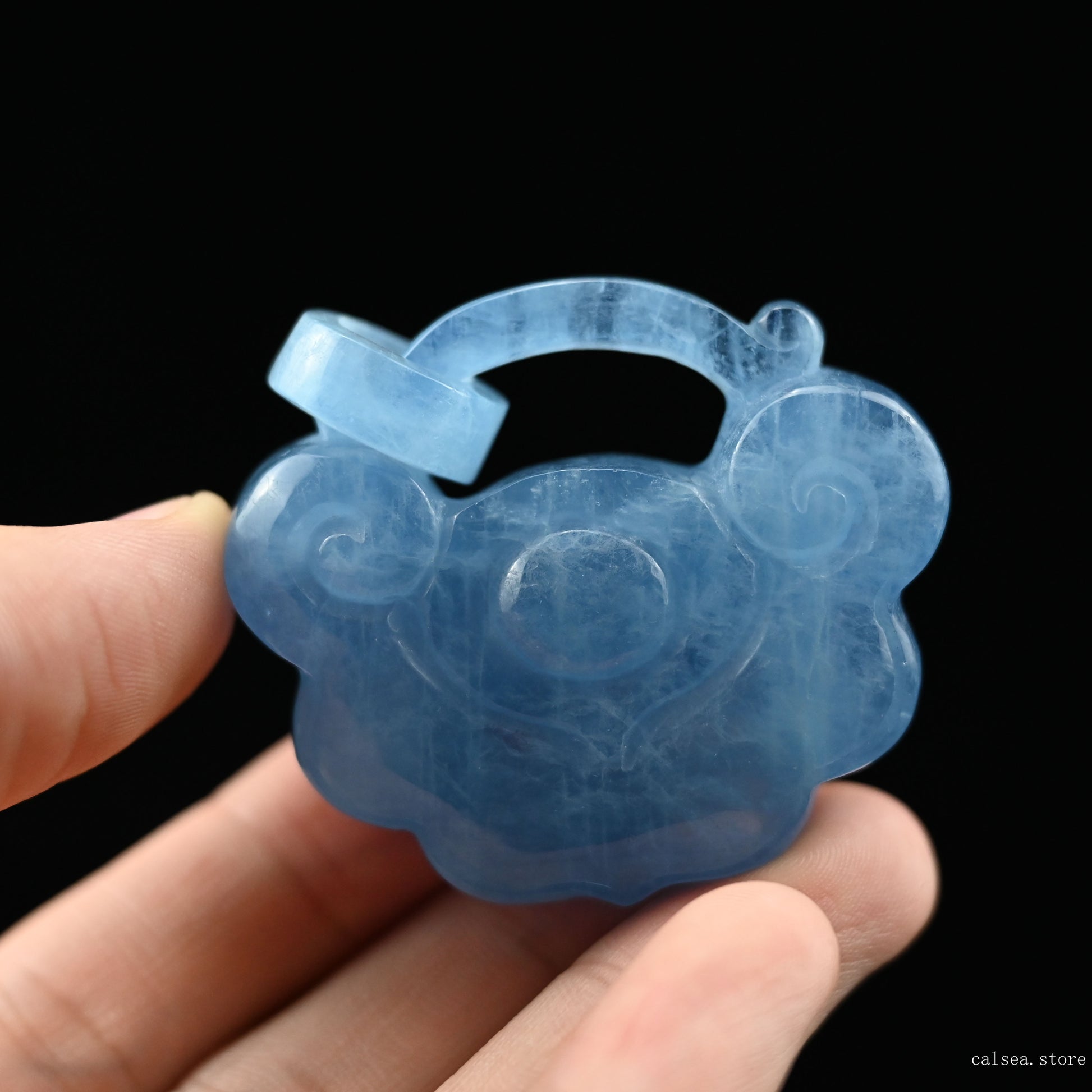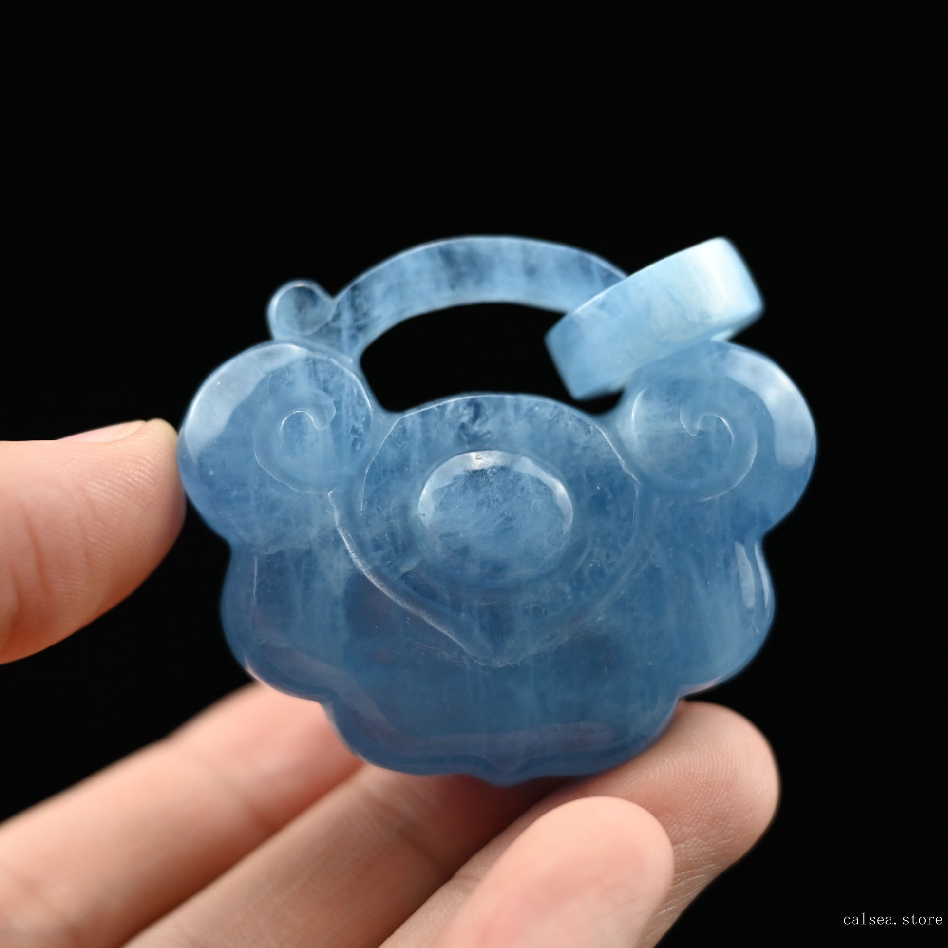 Gemstone Aquamarine Lucky, RuYi Lock Crystal Healing Hand Carved Crystal Ornaments/Sculpture
