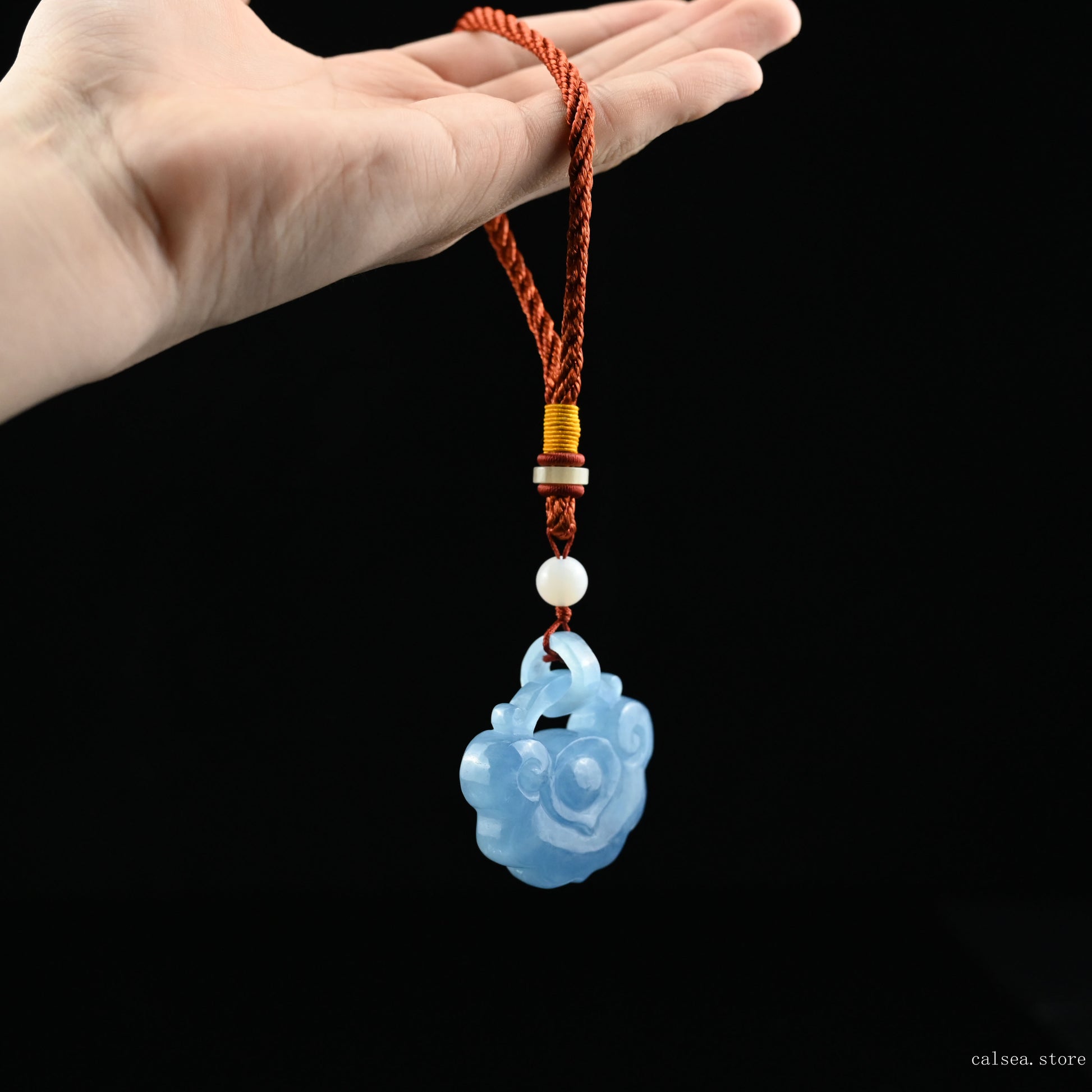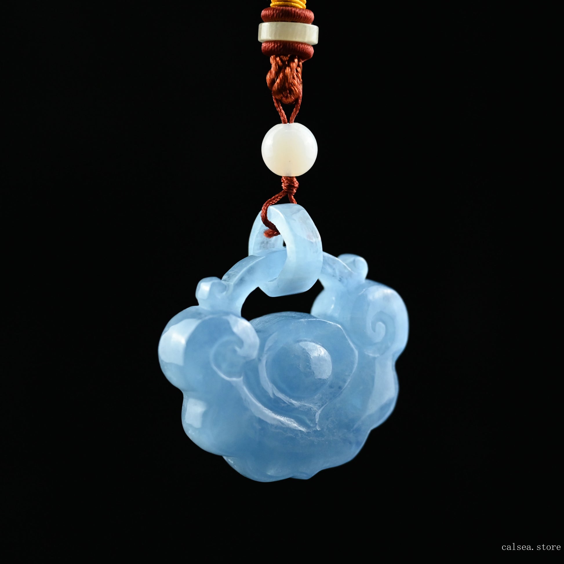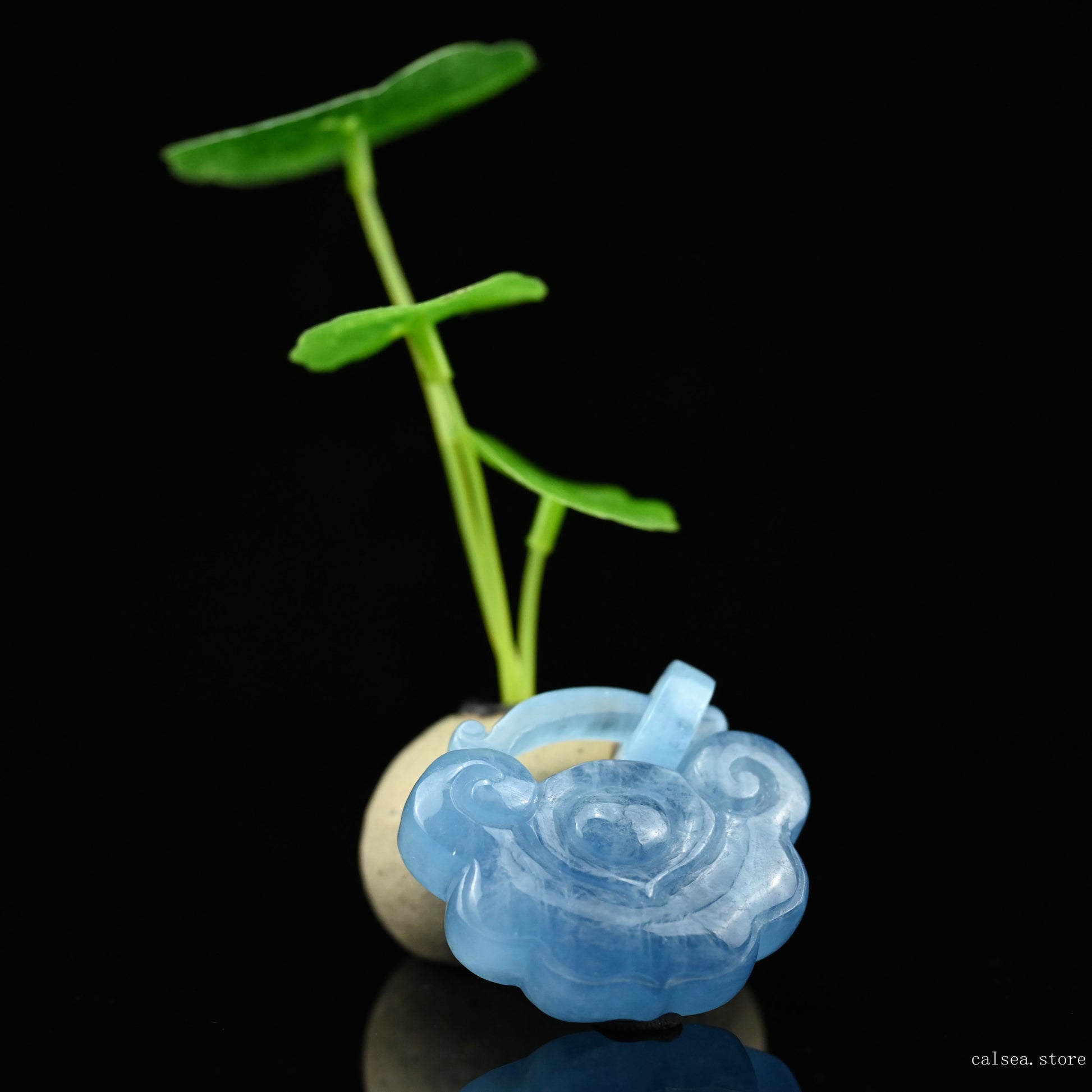 Gemstone Aquamarine Lucky, RuYi Lock Crystal Healing Hand Carved Crystal Ornaments/Sculpture