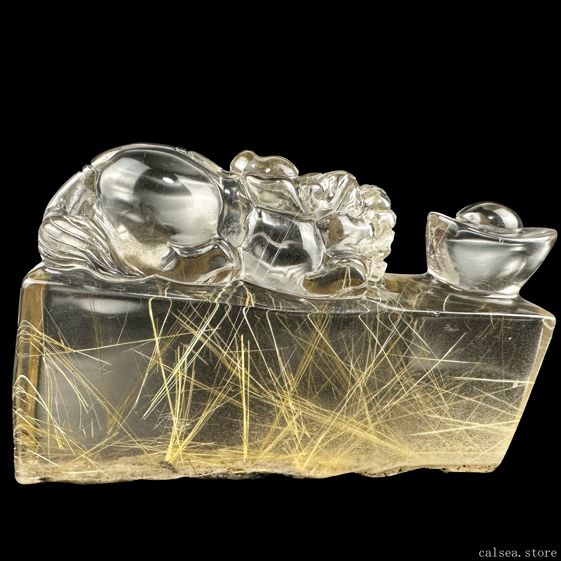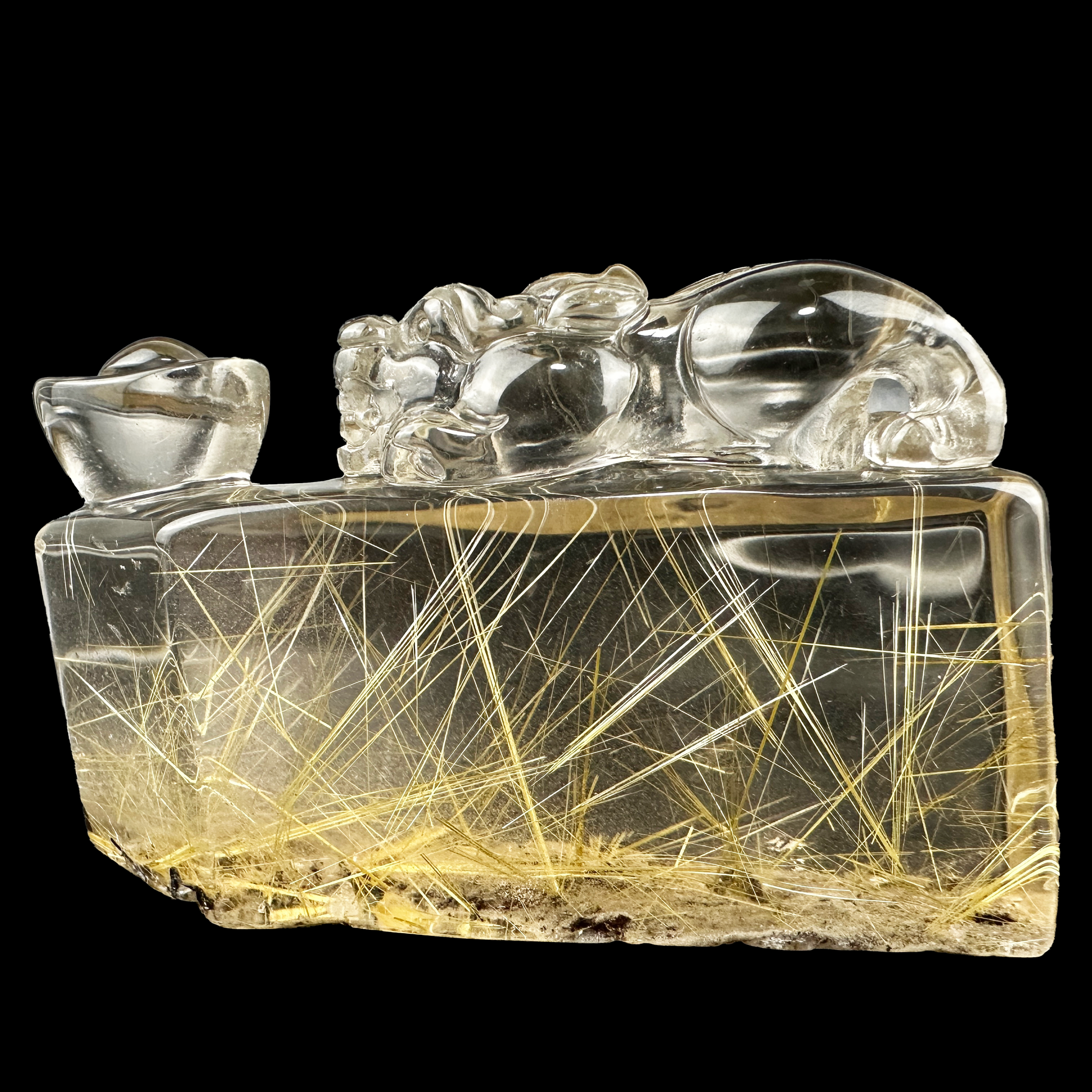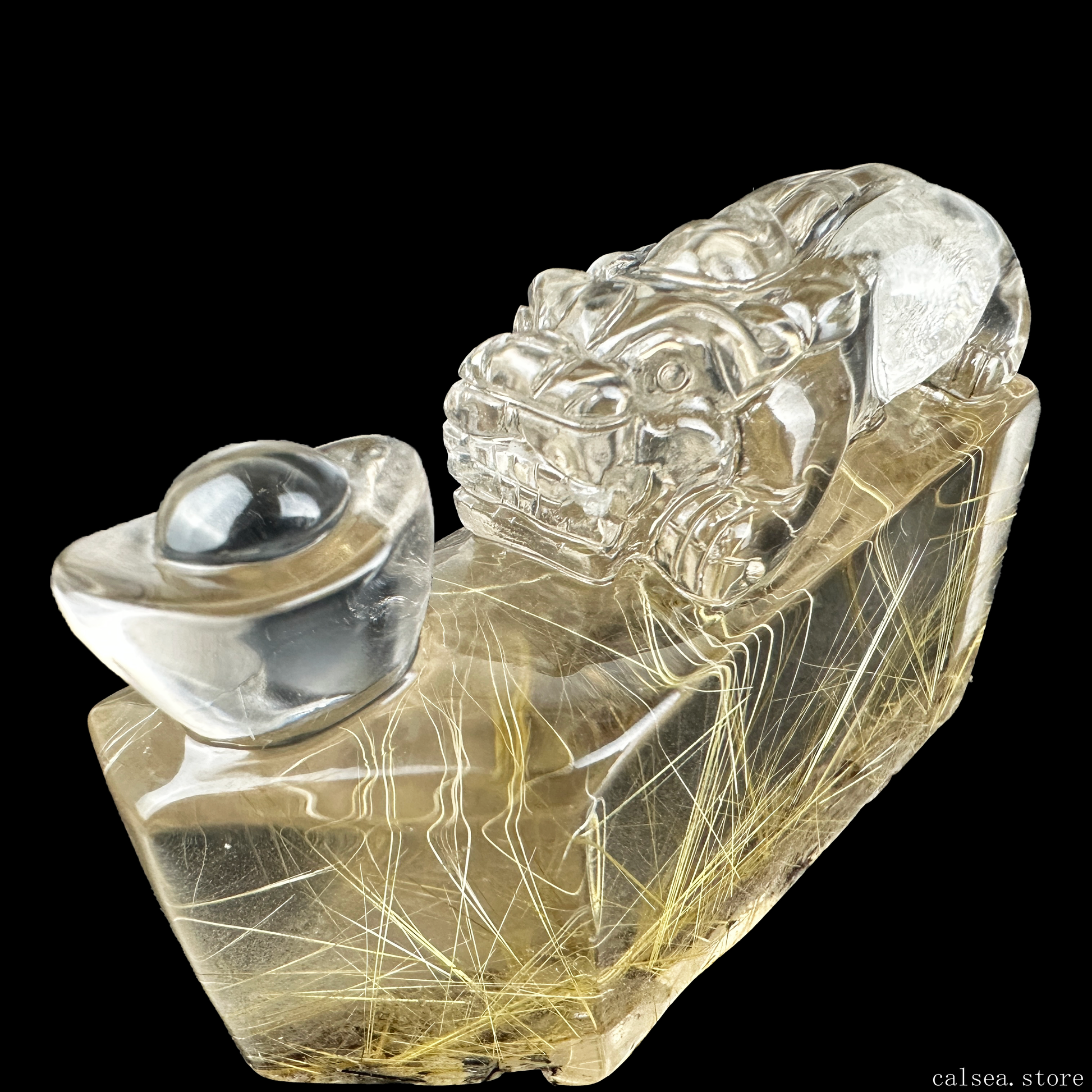Golden Rutile YuanBao PiXiu Sculpture Rutilated Crystal Crystal Healing Hand Carved