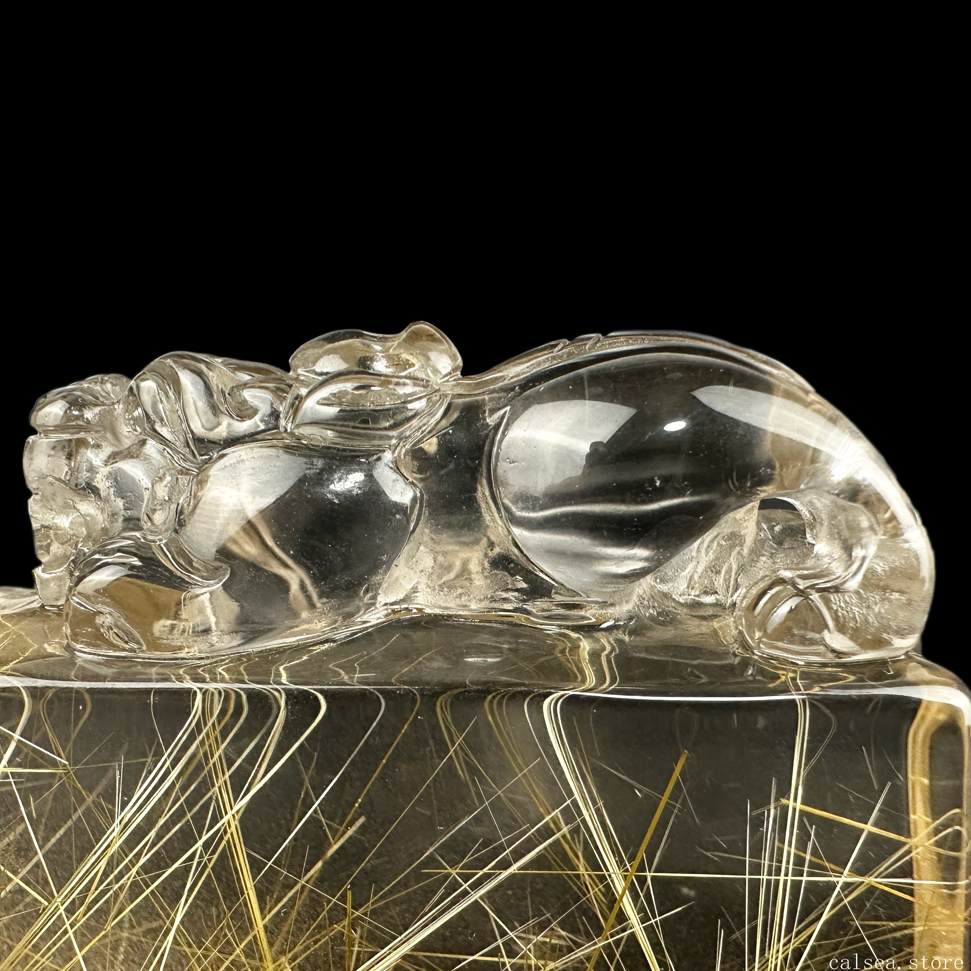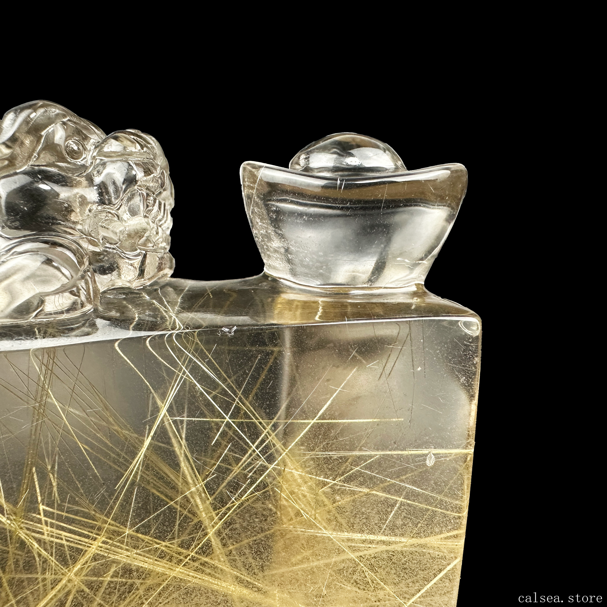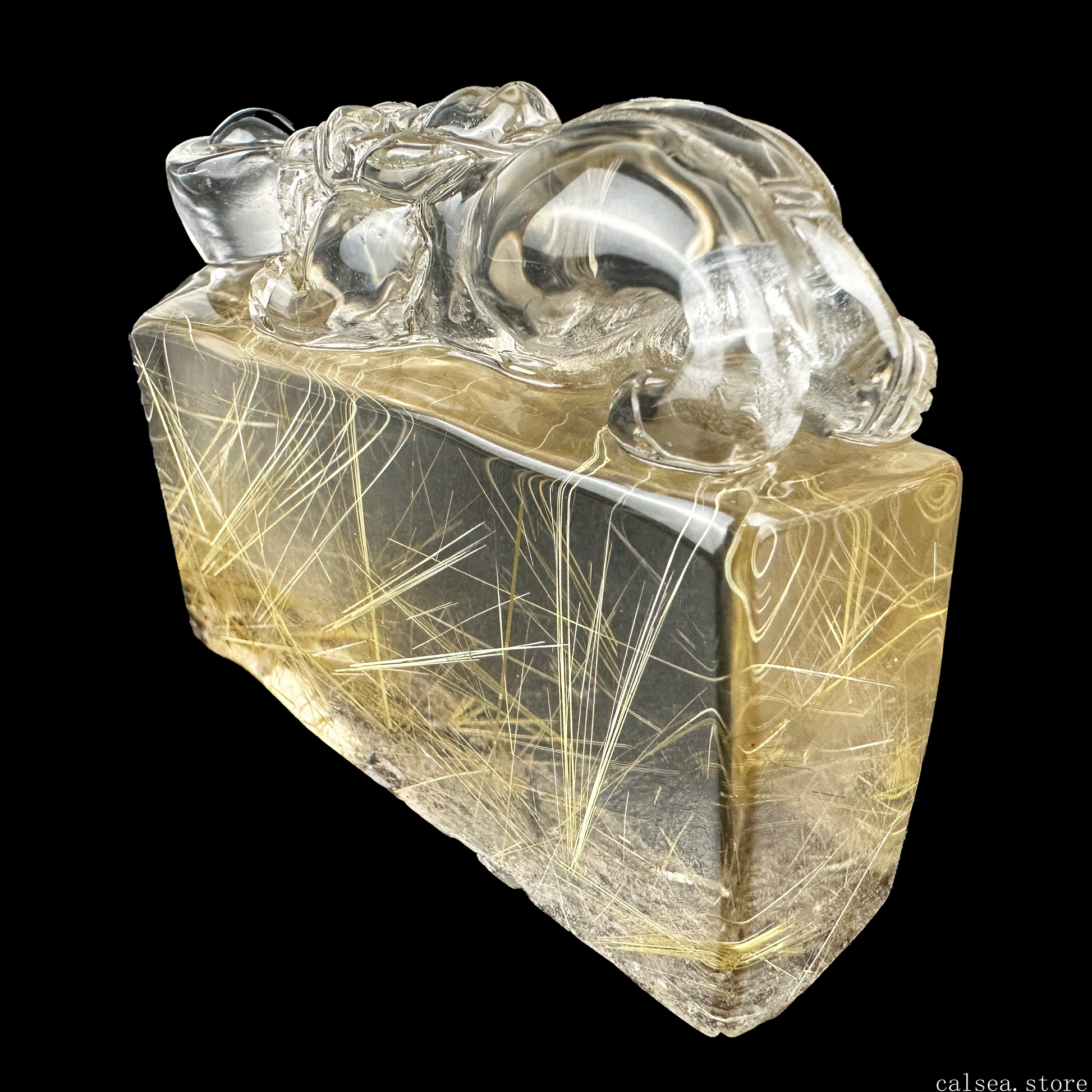 Golden Rutile YuanBao PiXiu Sculpture Rutilated Crystal Crystal Healing Hand Carved