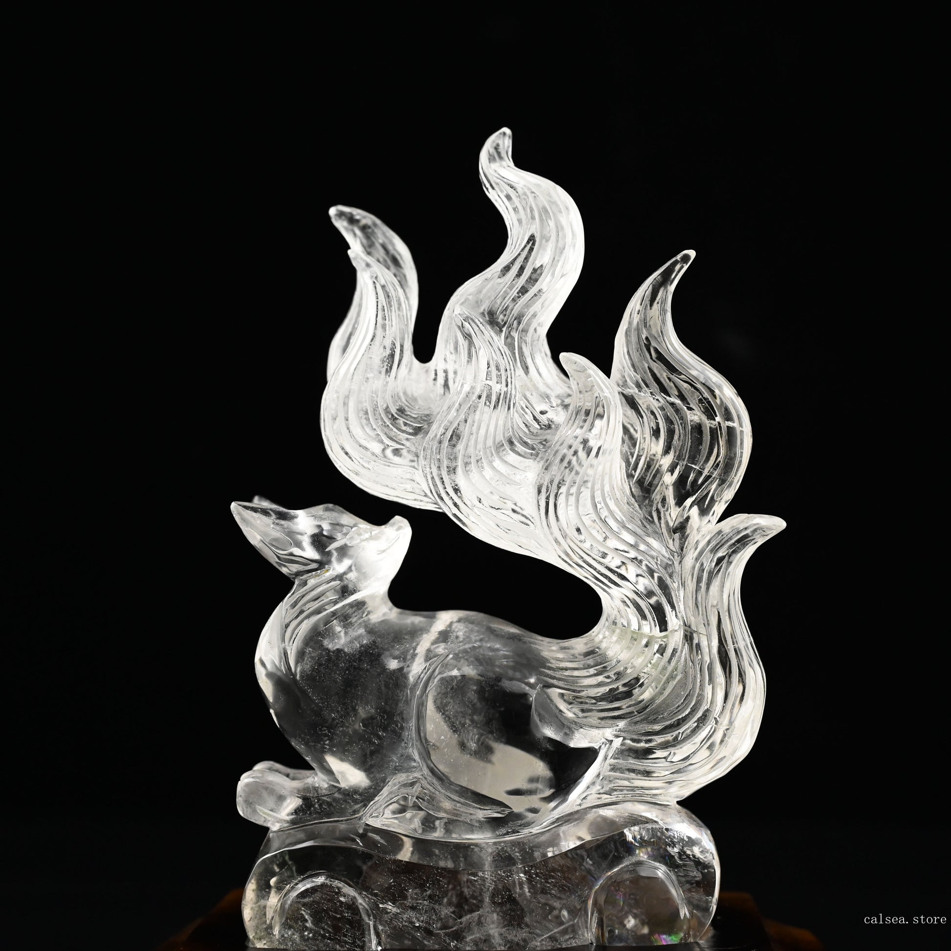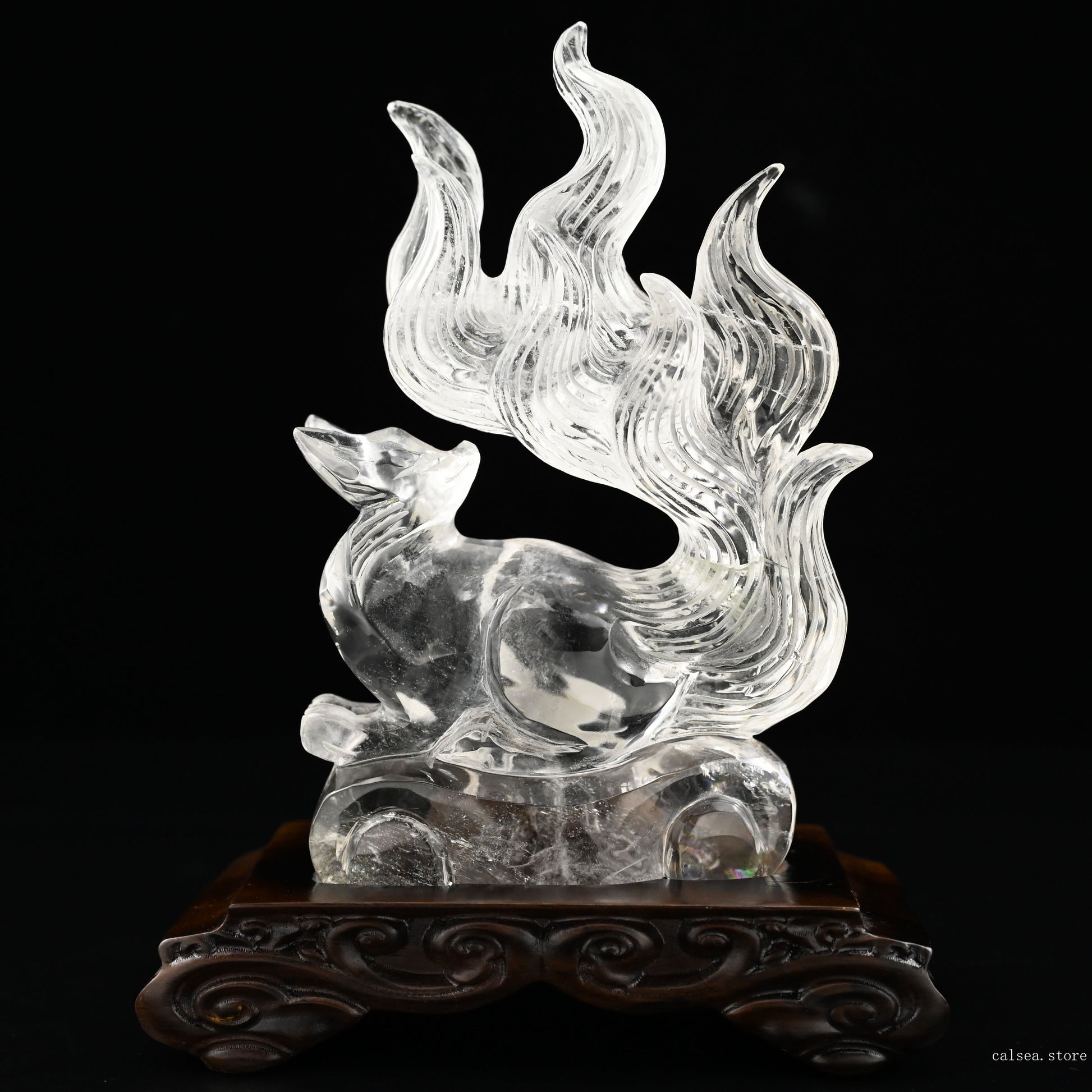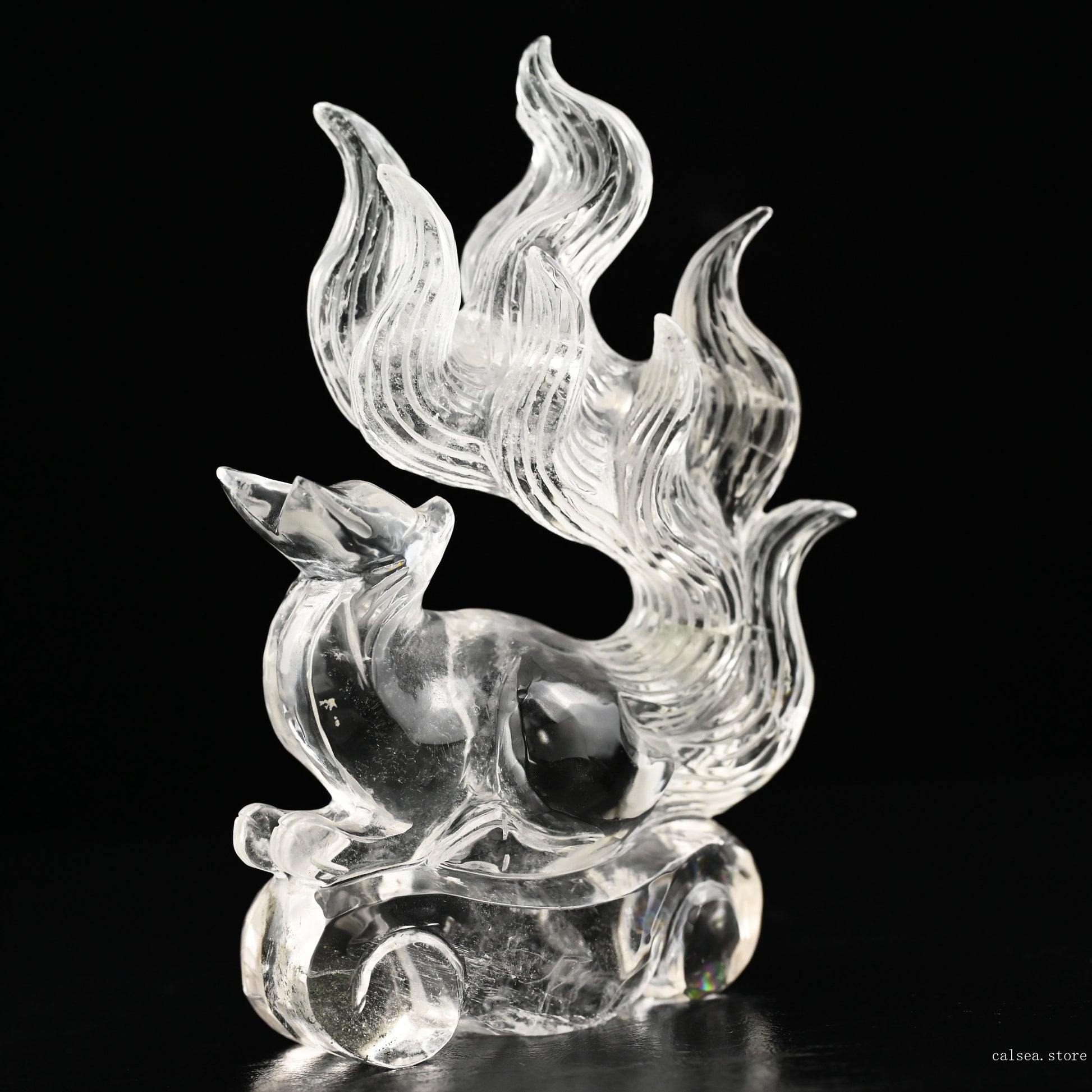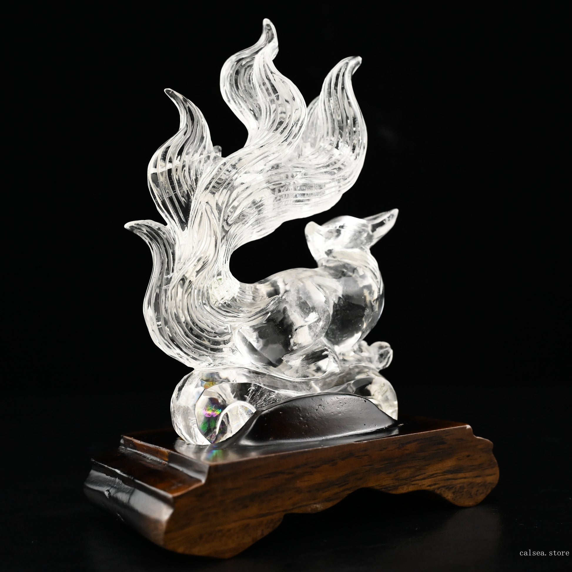 Rainbow Clearquartz Nine-Tailed Fox Sculpture Crystal Healing Hand Carved Crystal Ornaments