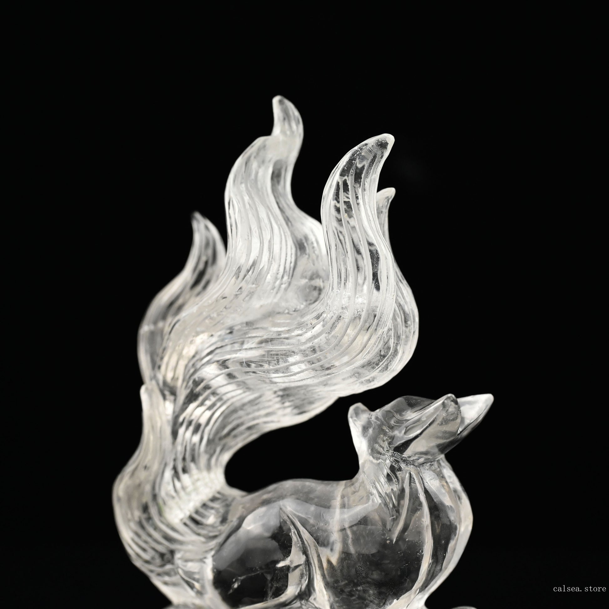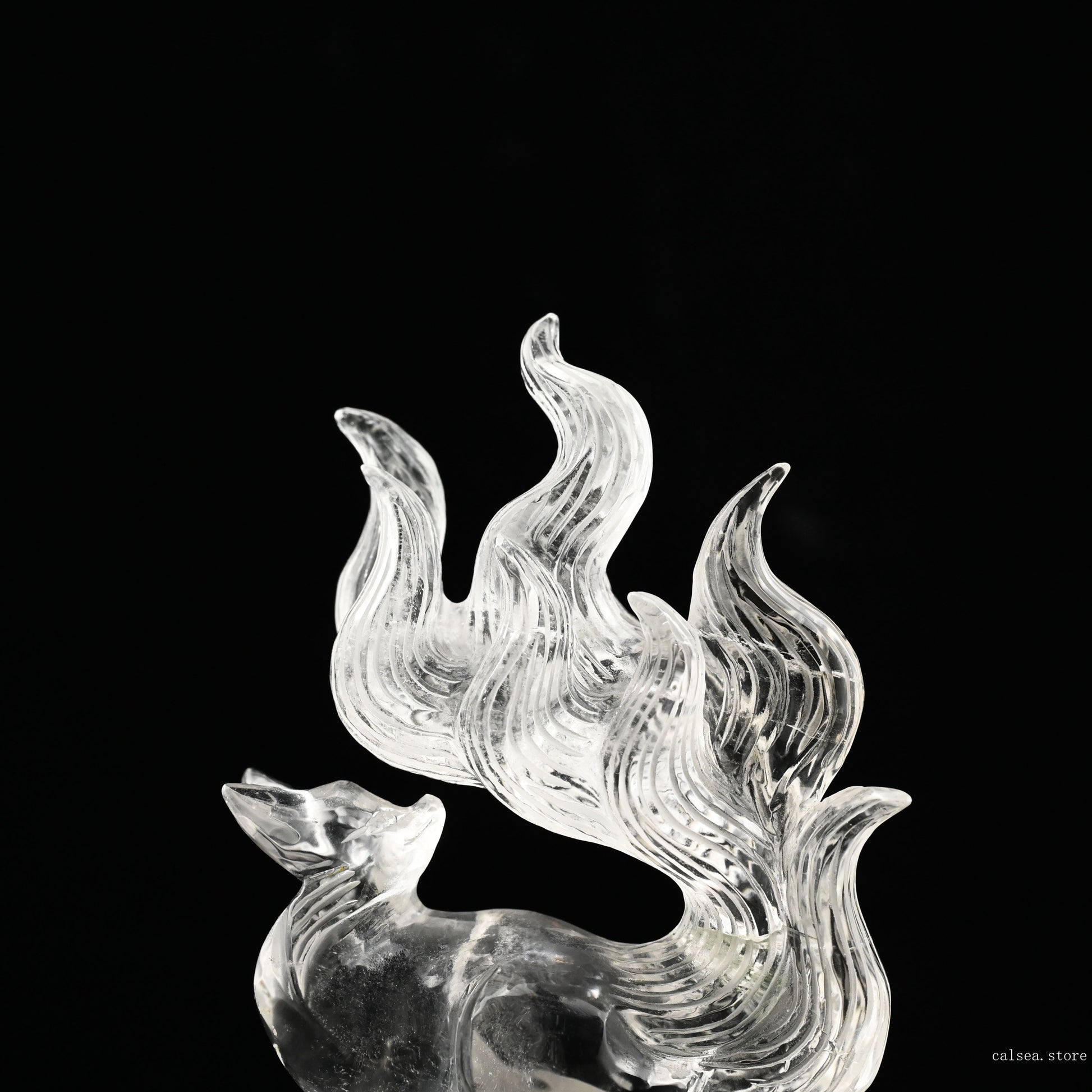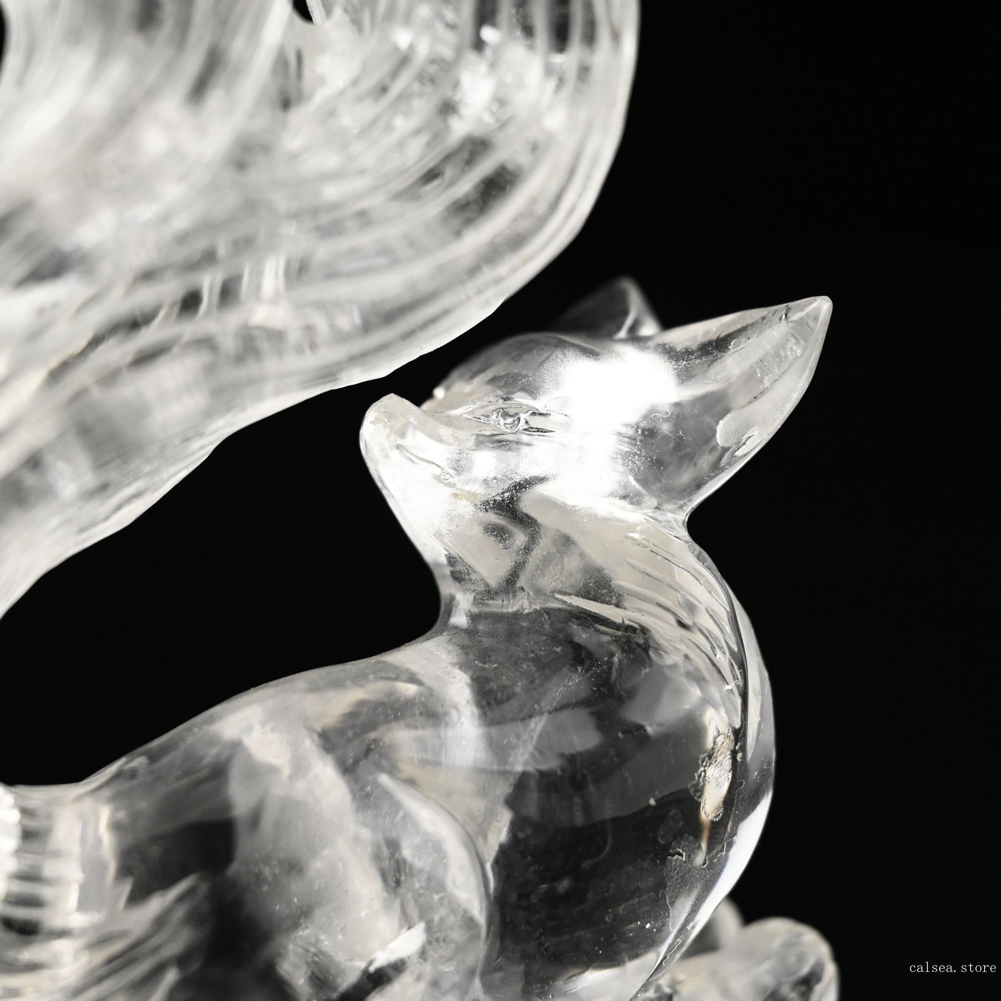 Rainbow Clearquartz Nine-Tailed Fox Sculpture Crystal Healing Hand Carved Crystal Ornaments