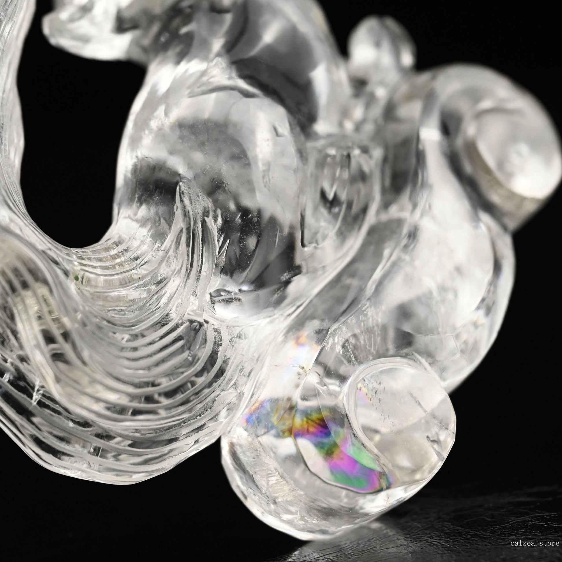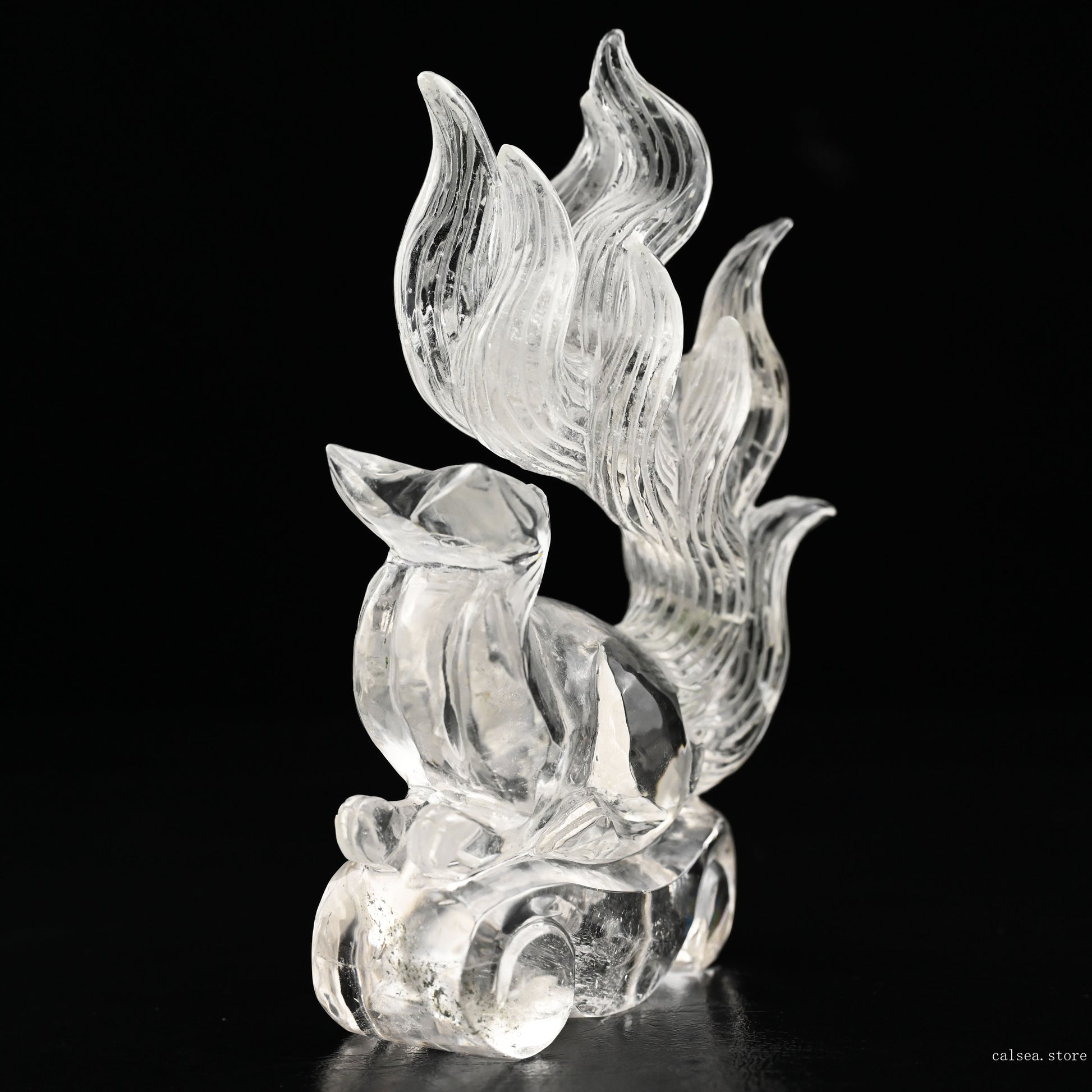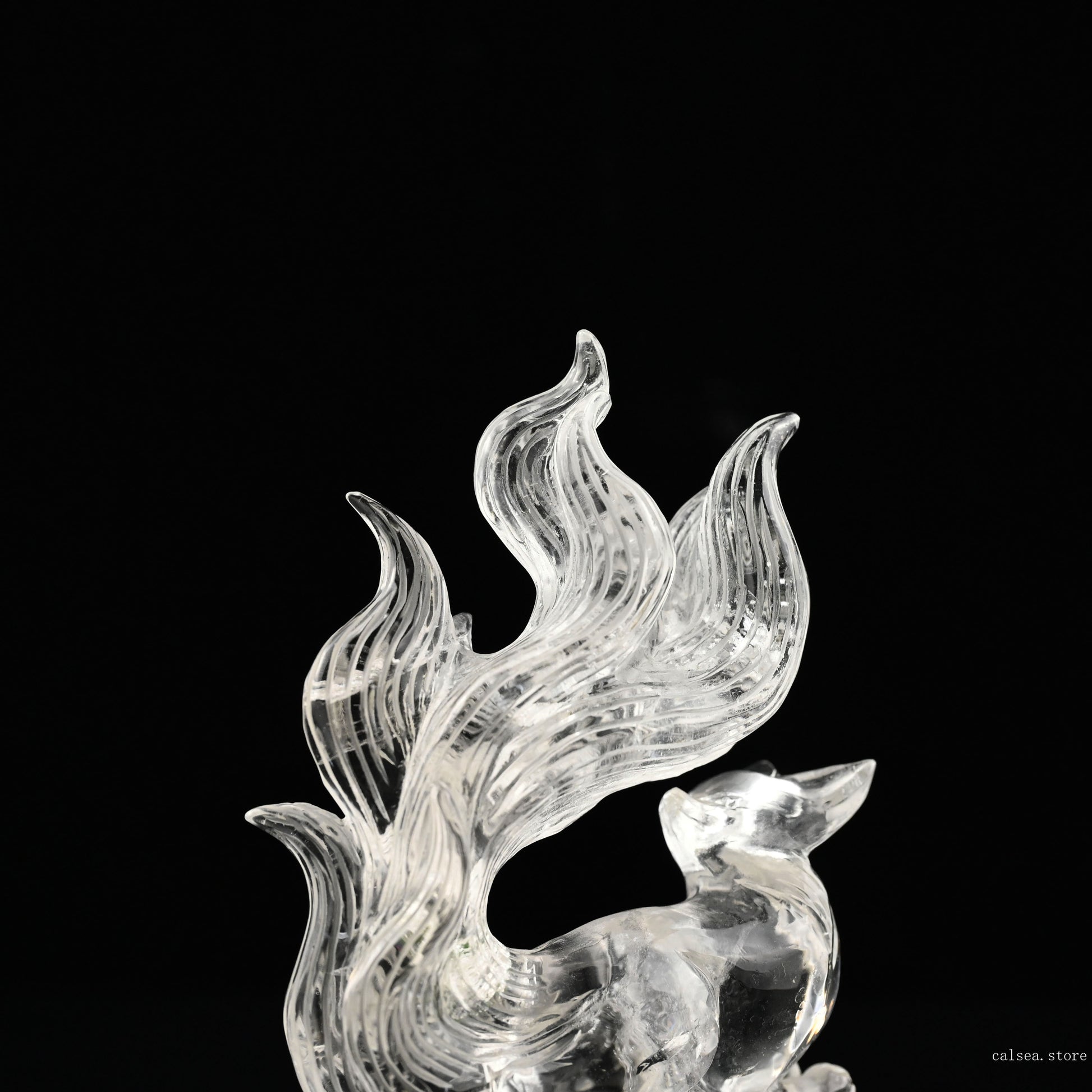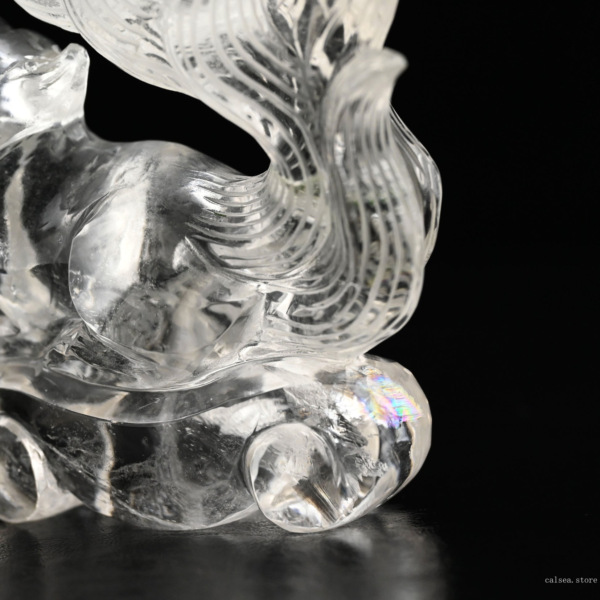 Rainbow Clearquartz Nine-Tailed Fox Sculpture Crystal Healing Hand Carved Crystal Ornaments