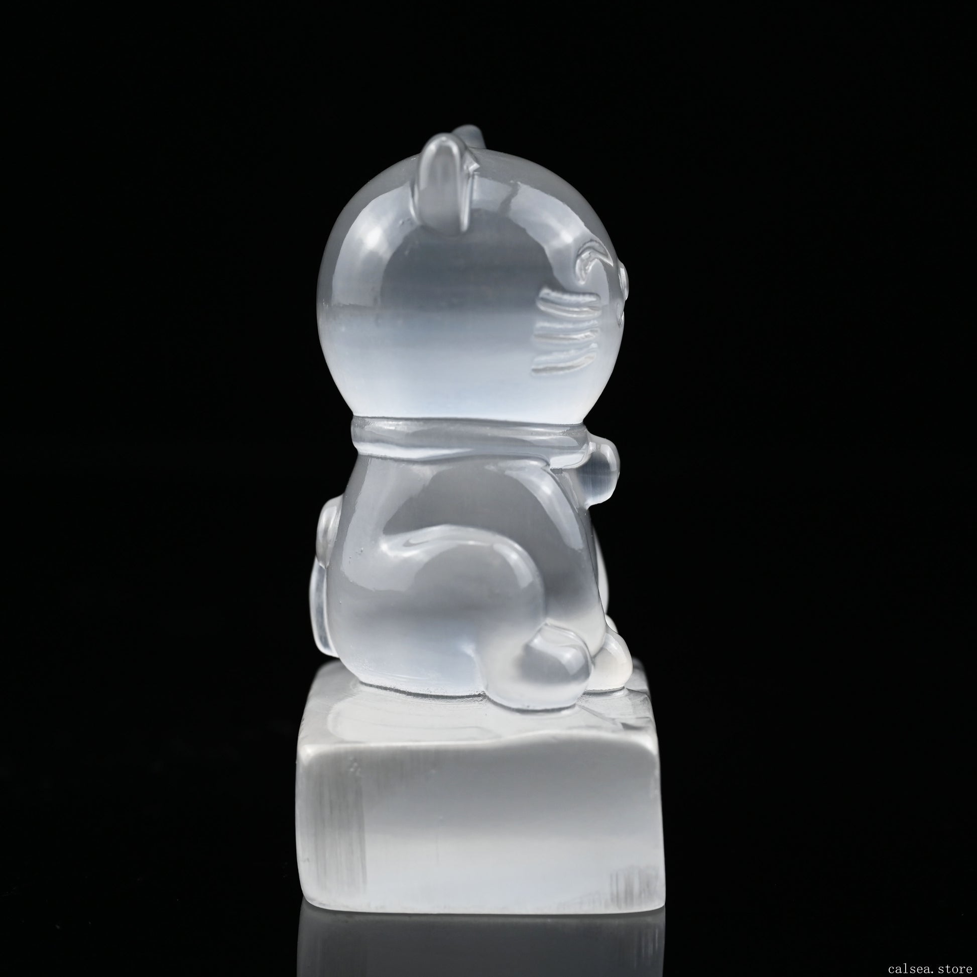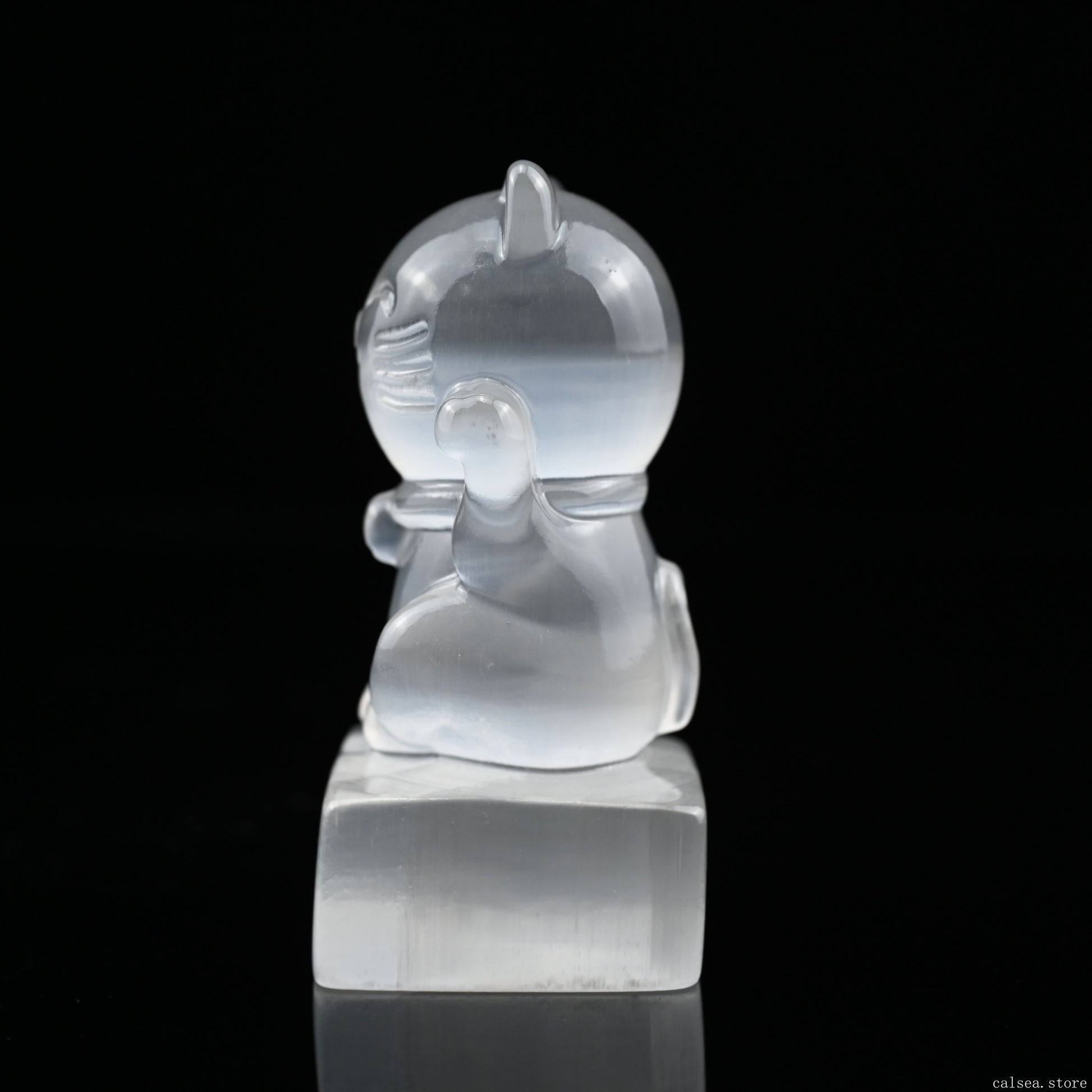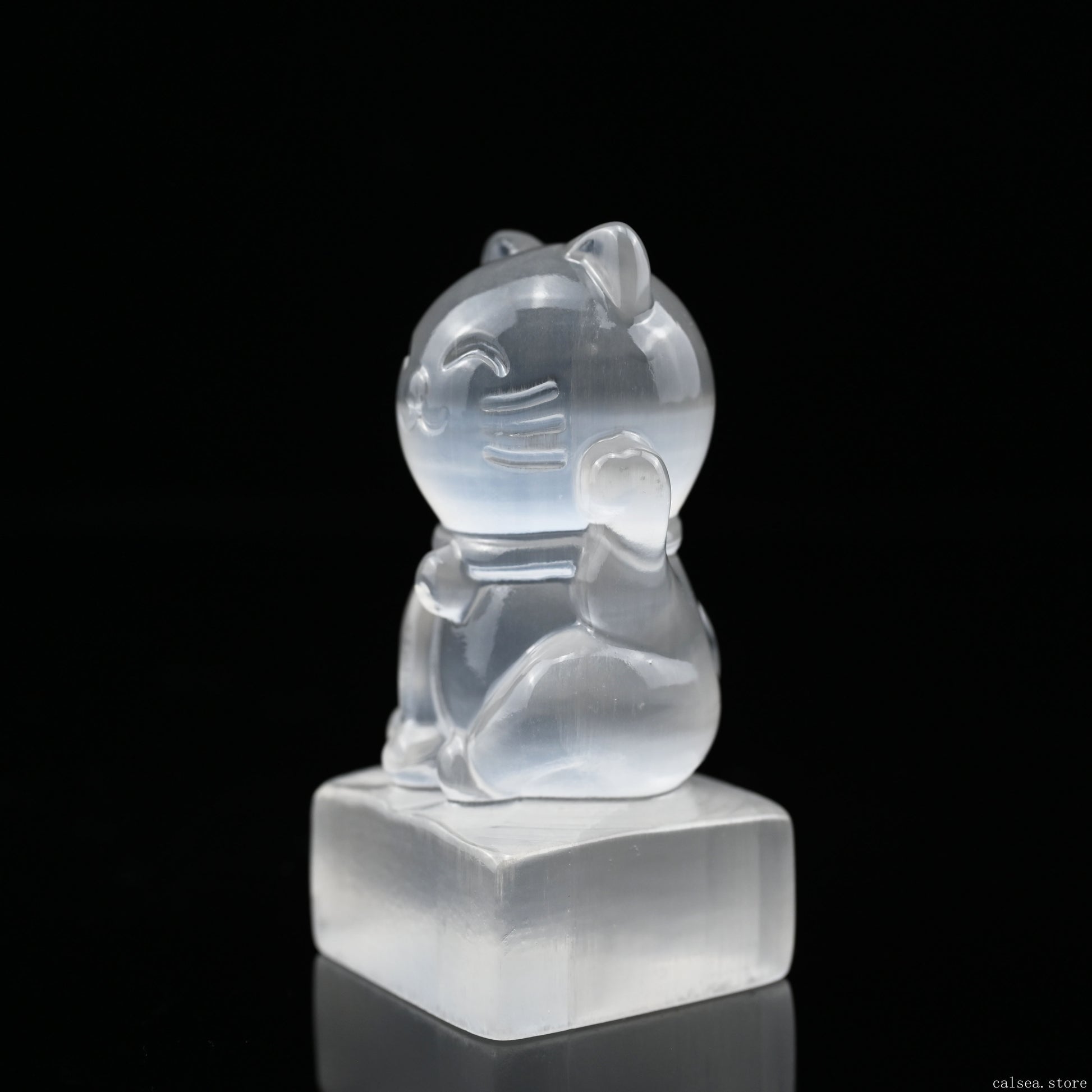Selenite Lucky Cat Sculpture Crystal Healing Hand Carved