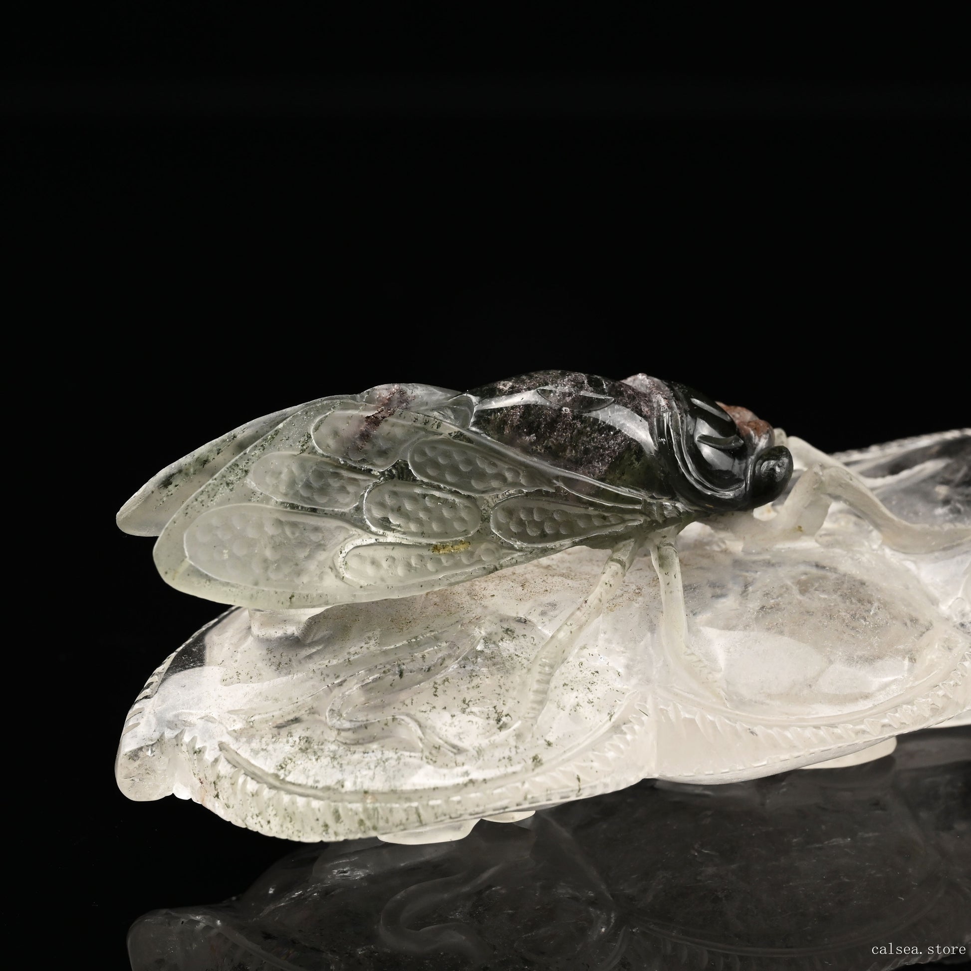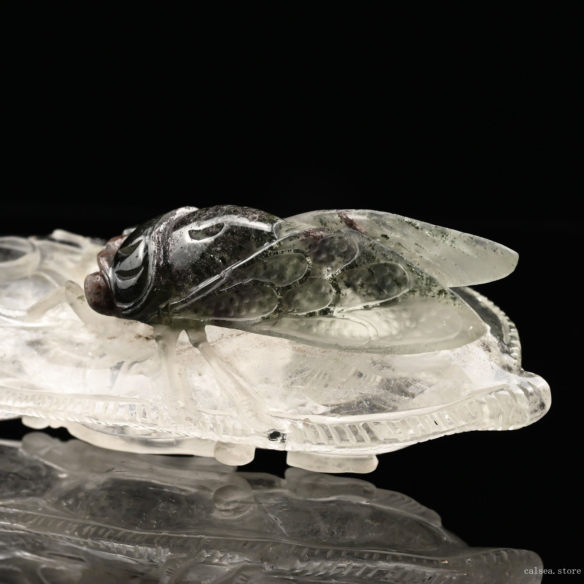 Vivid Gardenquartz Pod Cicada Sculpture Crystal Ornaments Hand Carved