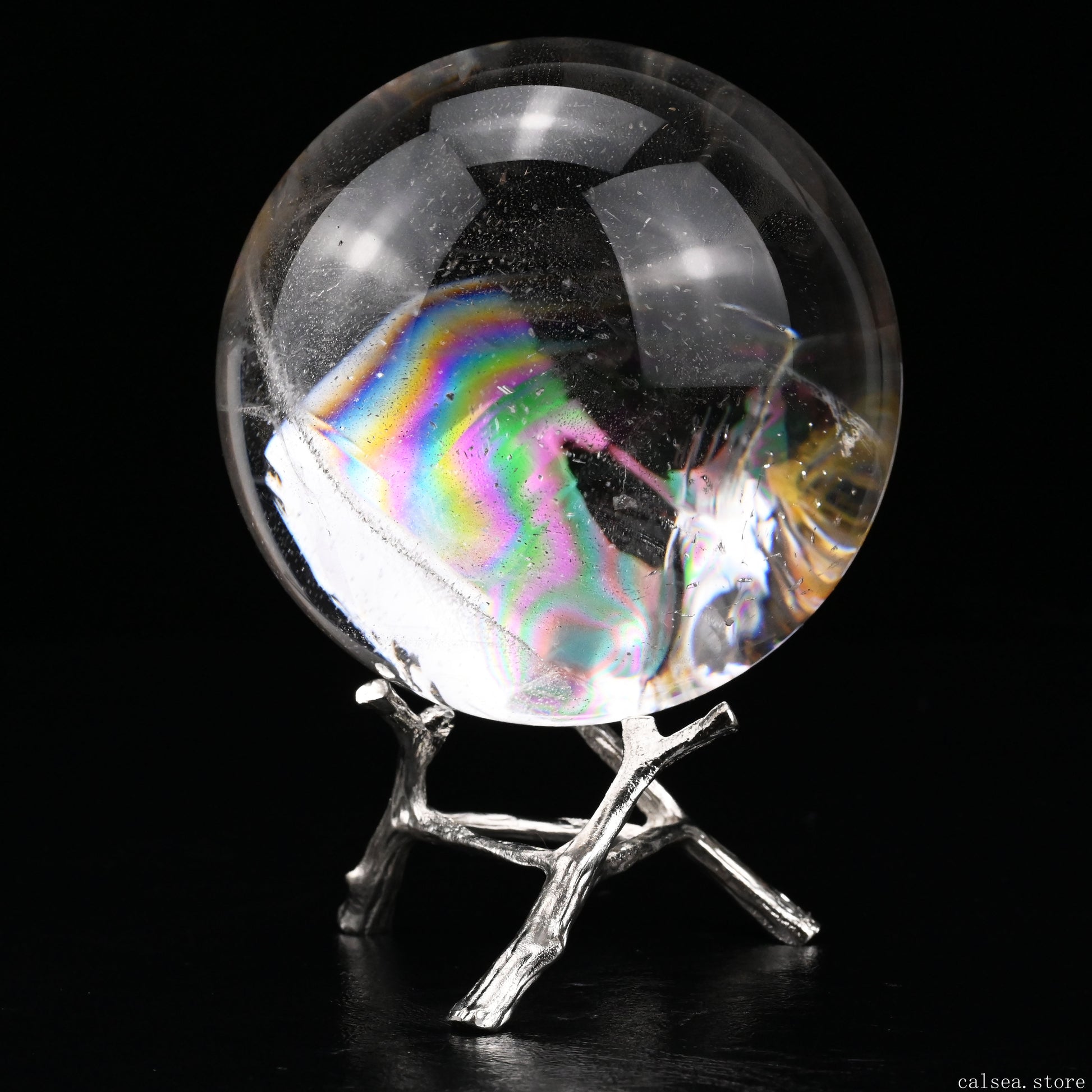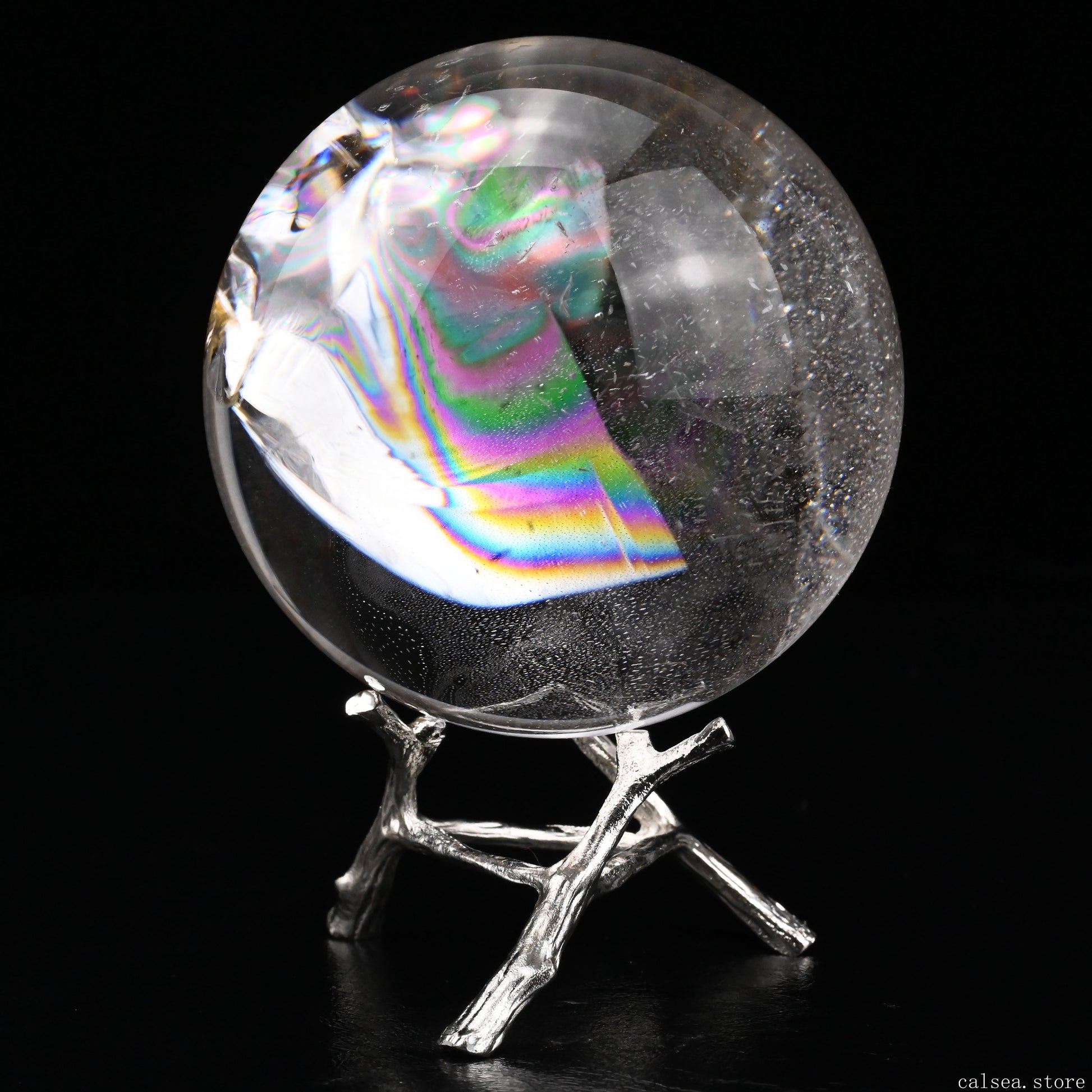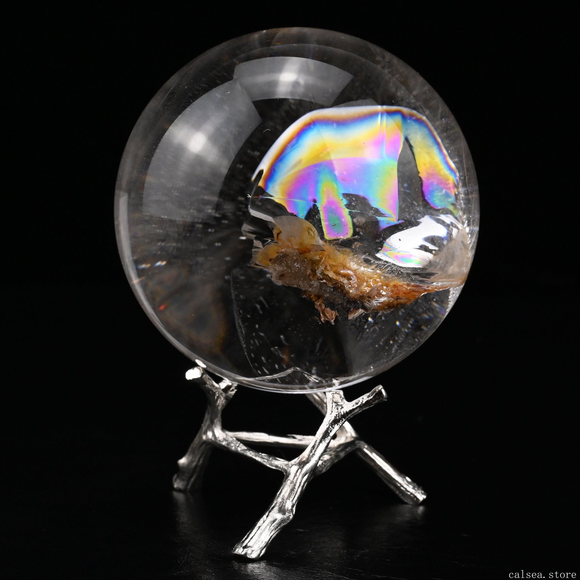 3.05'' Rainbow Clearquartz Sphere Crystal Healing Hand Carved Sphere/Ball