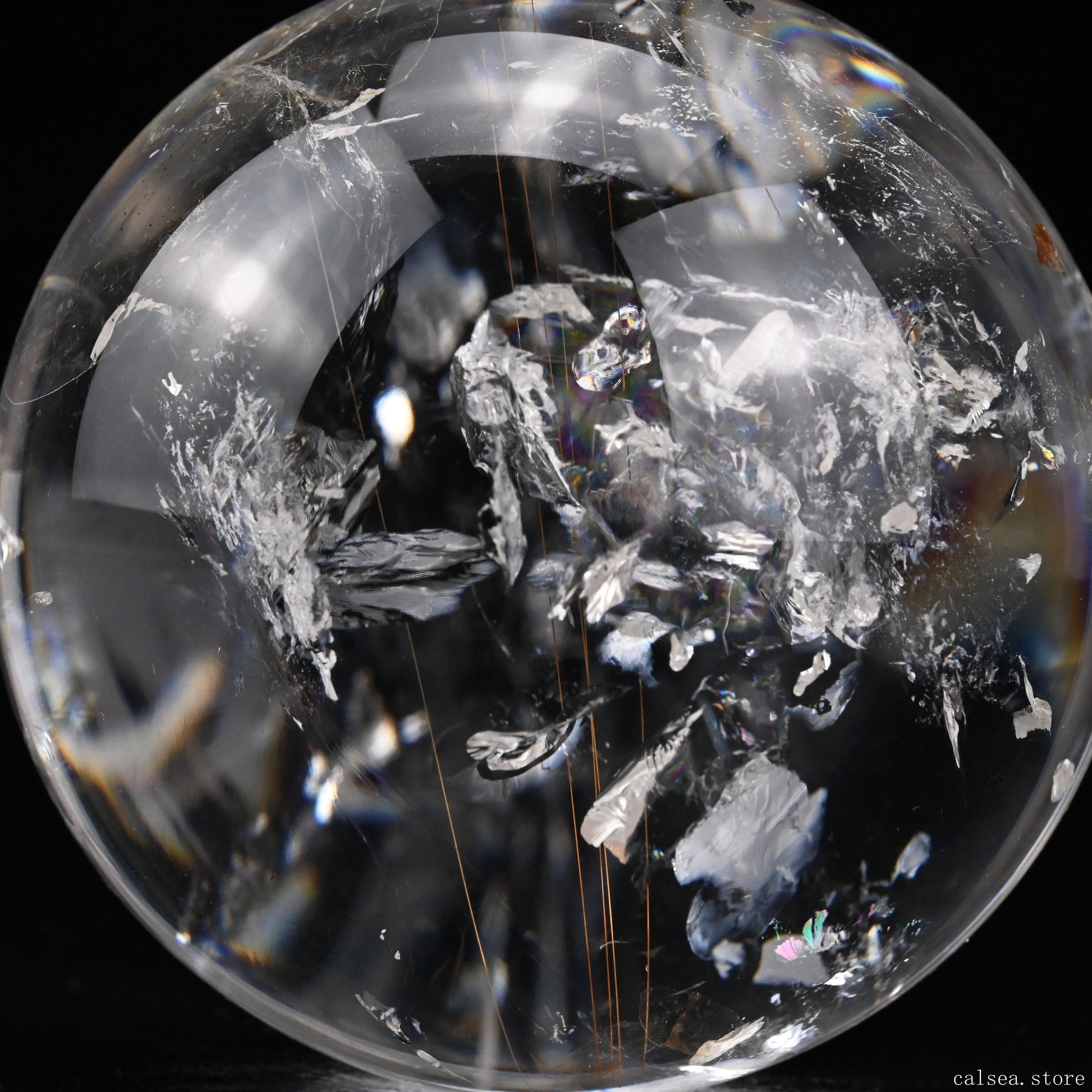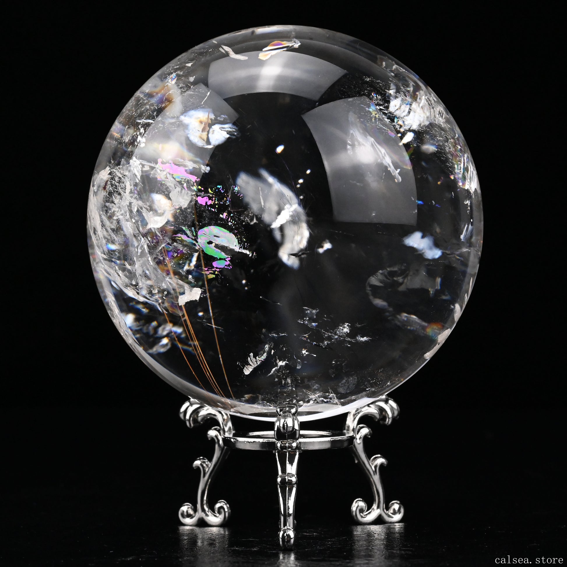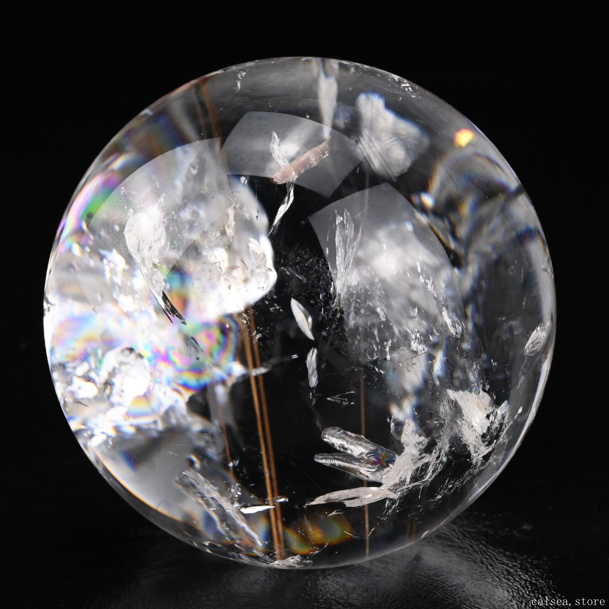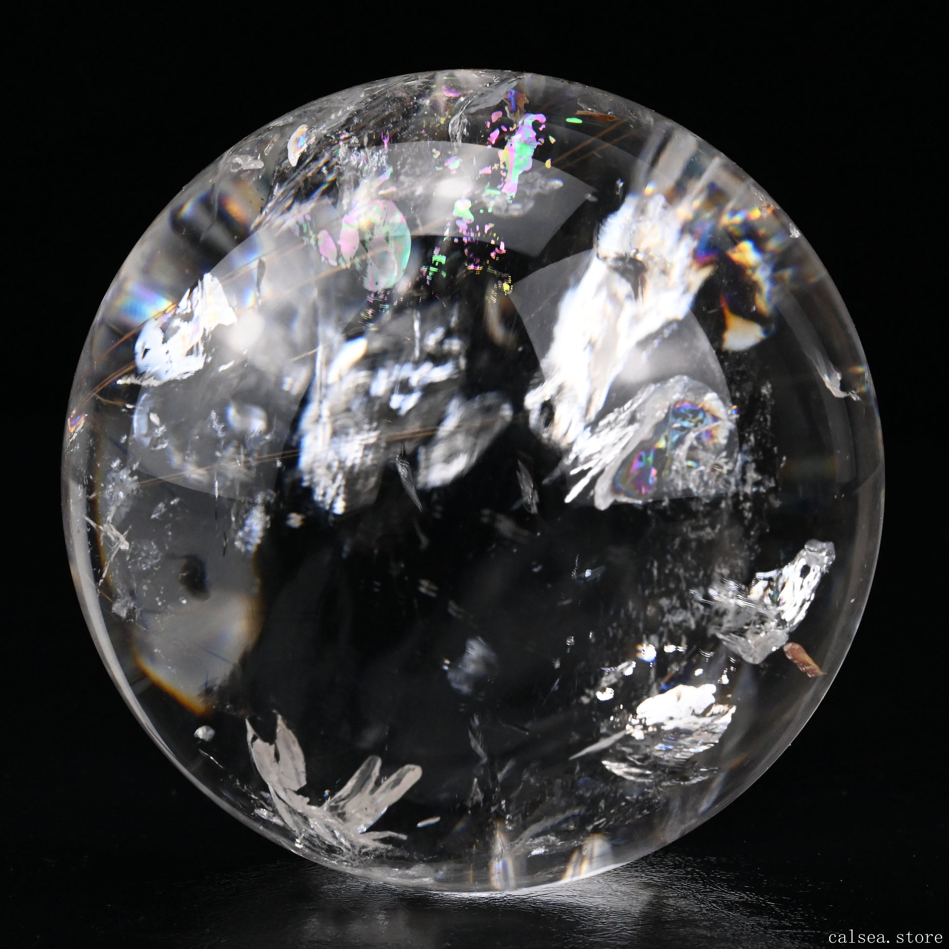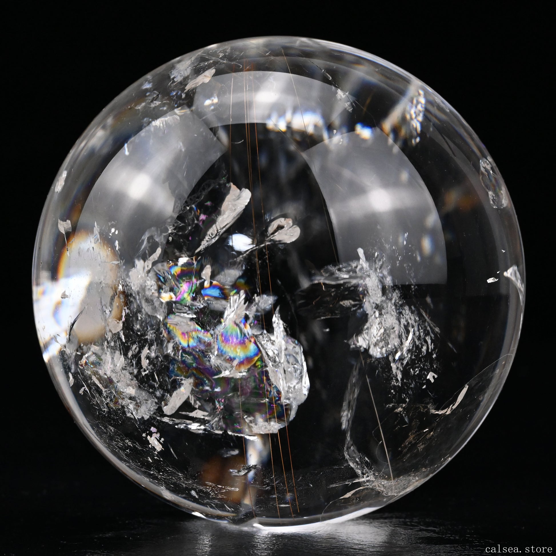 3.46'' Rainbow Rutilated Clearquartz Sphere Crystal Healing Hand Carved Sphere/Ball