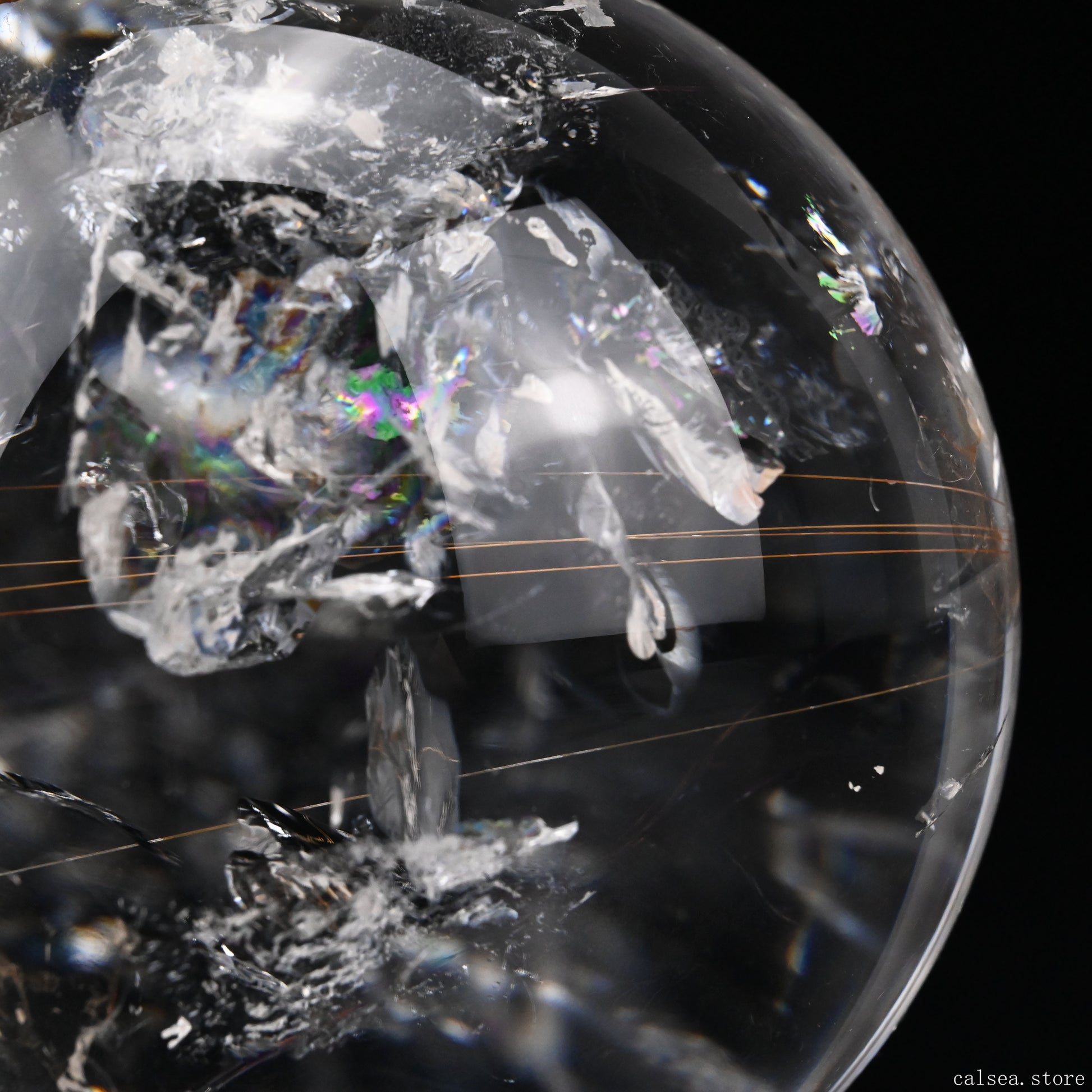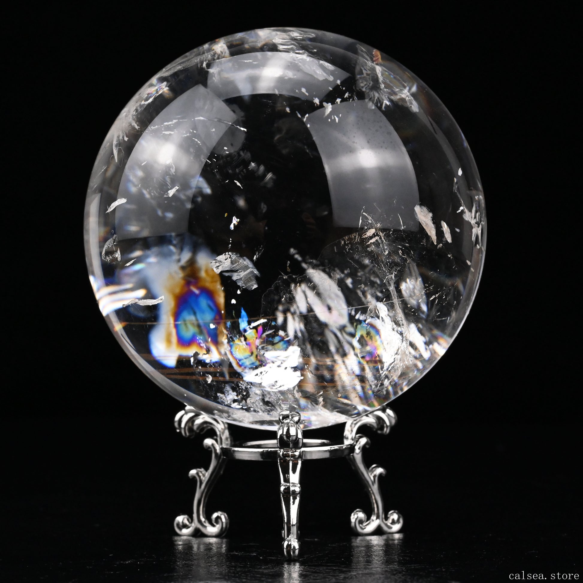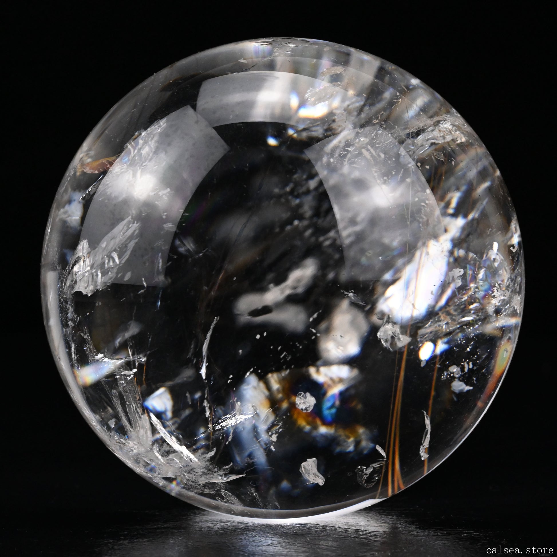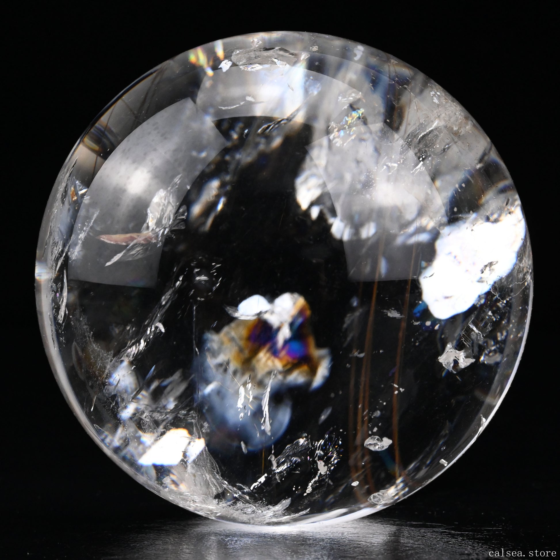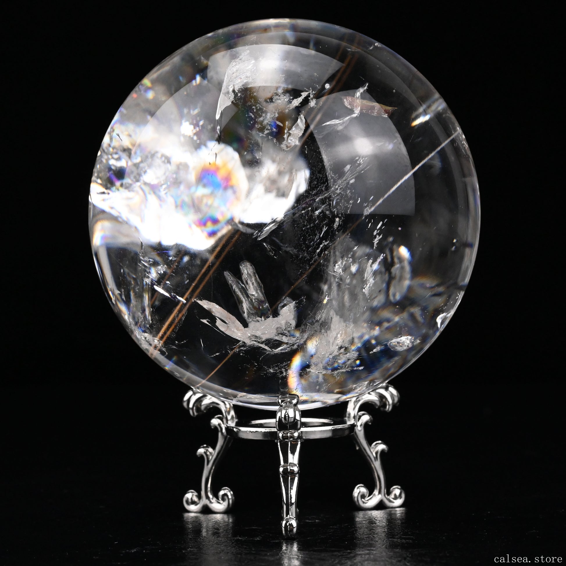 3.46'' Rainbow Rutilated Clearquartz Sphere Crystal Healing Hand Carved Sphere/Ball