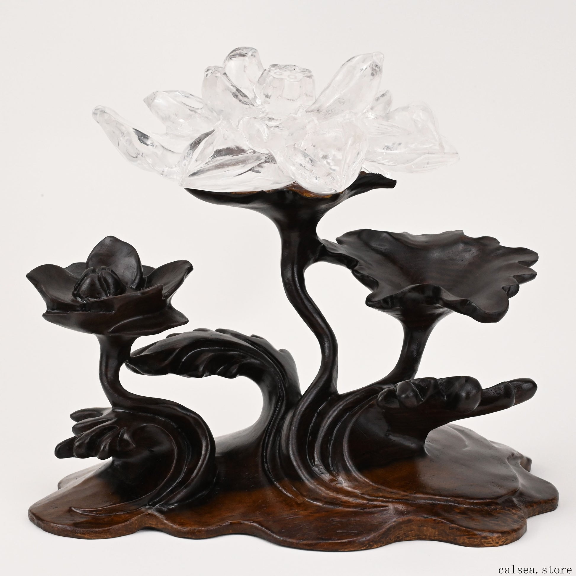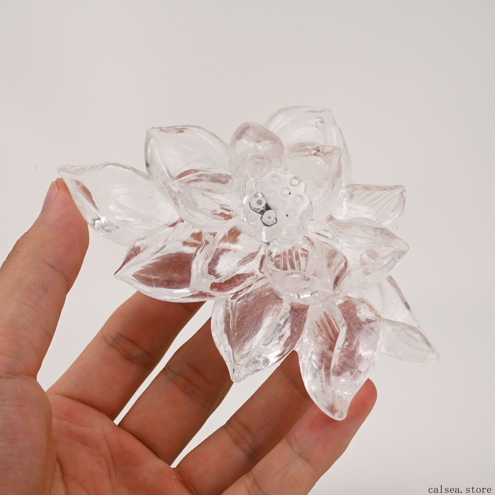 Clearquartz Lotus Flower Sculpture Crystal Healing Hand Carved